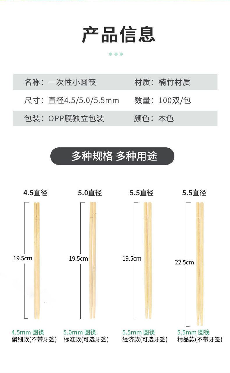 일회용 젓가락 독립적 인 포장 호텔 패스트 푸드 테이크 아웃 특수 위생 젓가락 작은 둥근 젓가락 대나무 젓가락 상업 도매