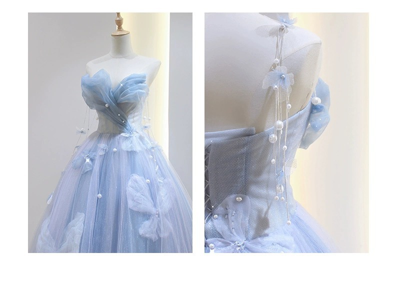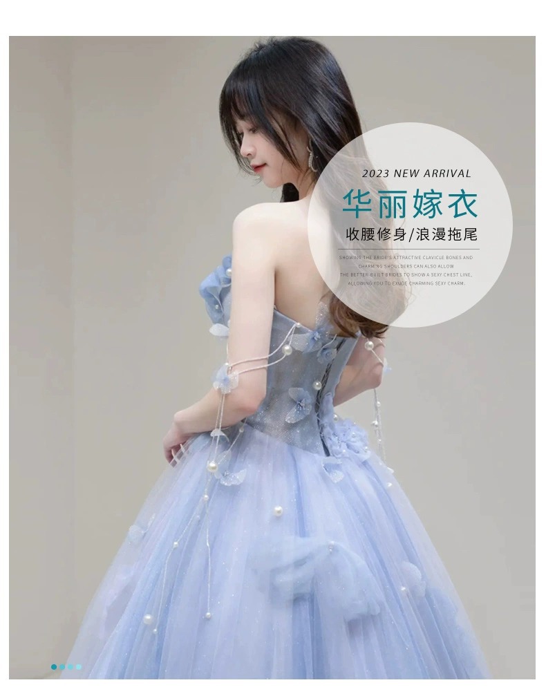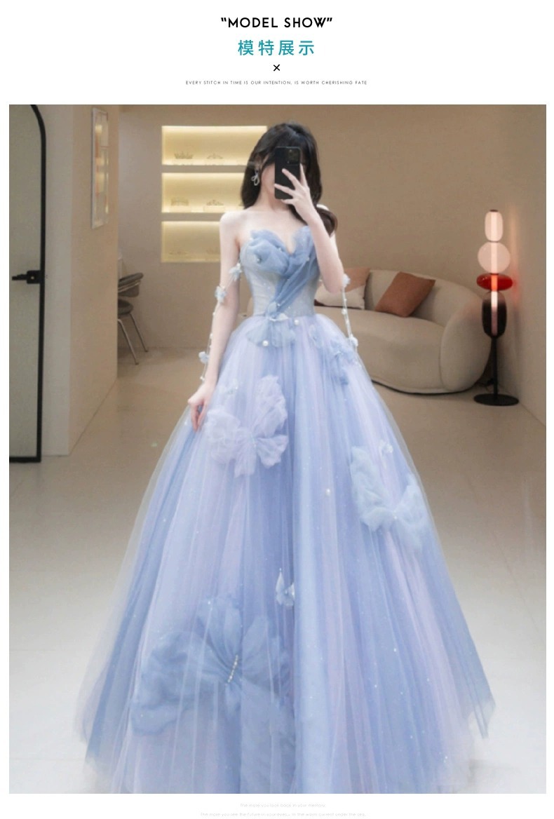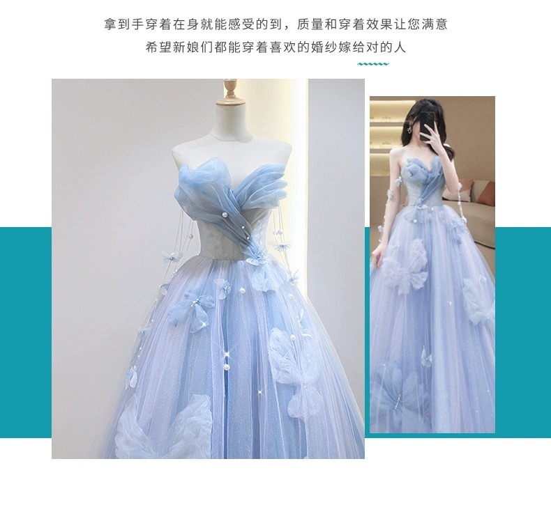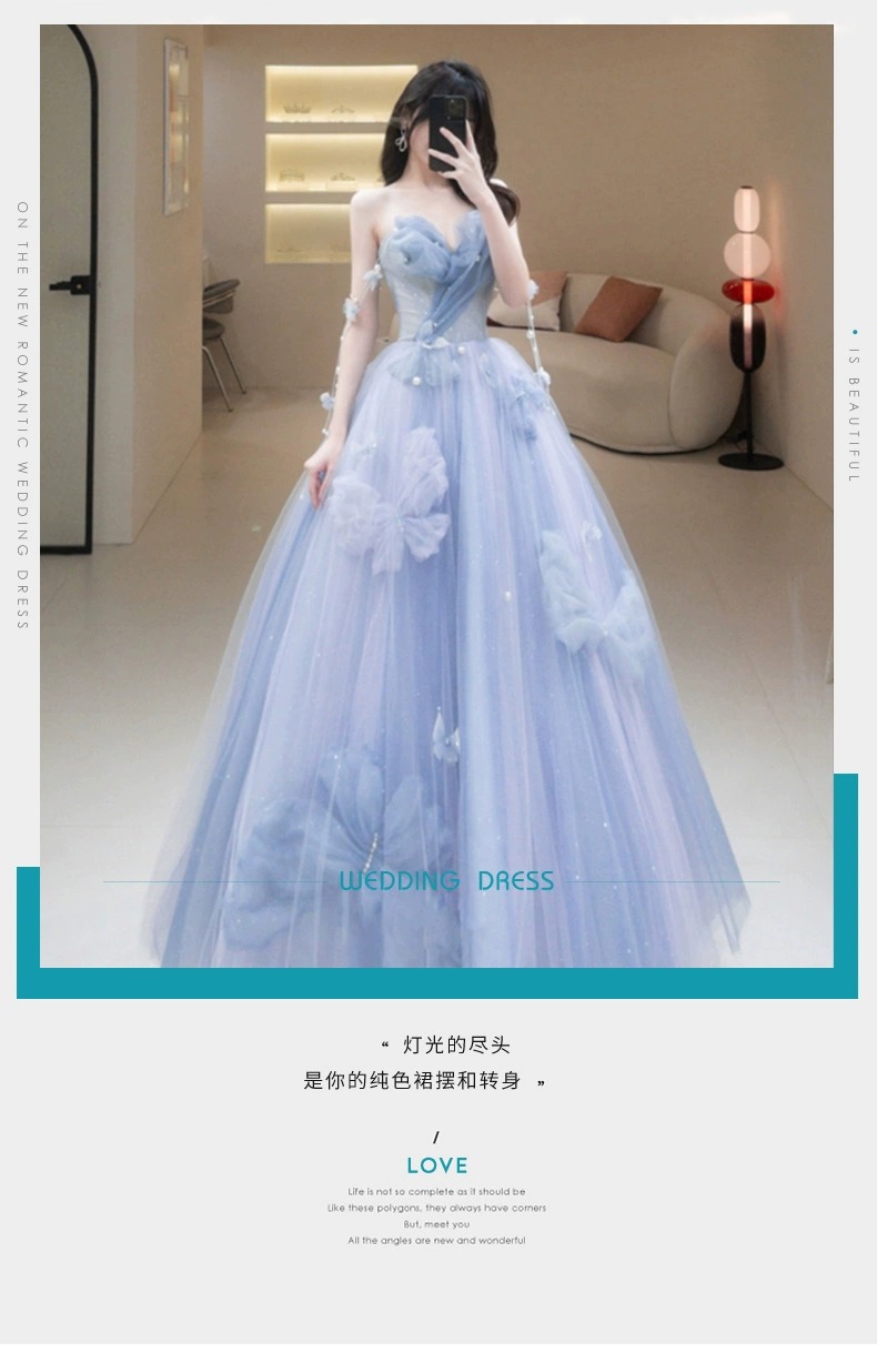 여성용 블루 이브닝 드레스 2026 신상 도망공주 스타일 약혼 연회 우아하고 고급스러운 신부 튜브탑 성인식 드레스스토어 가기