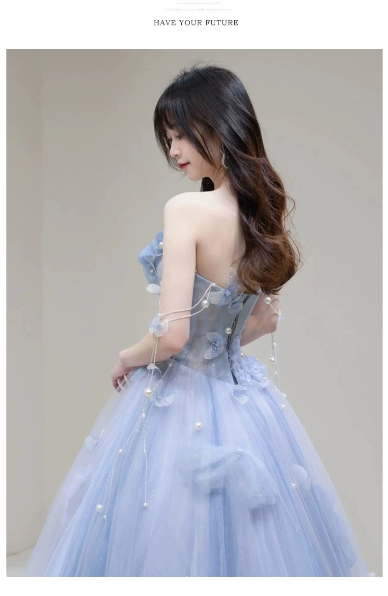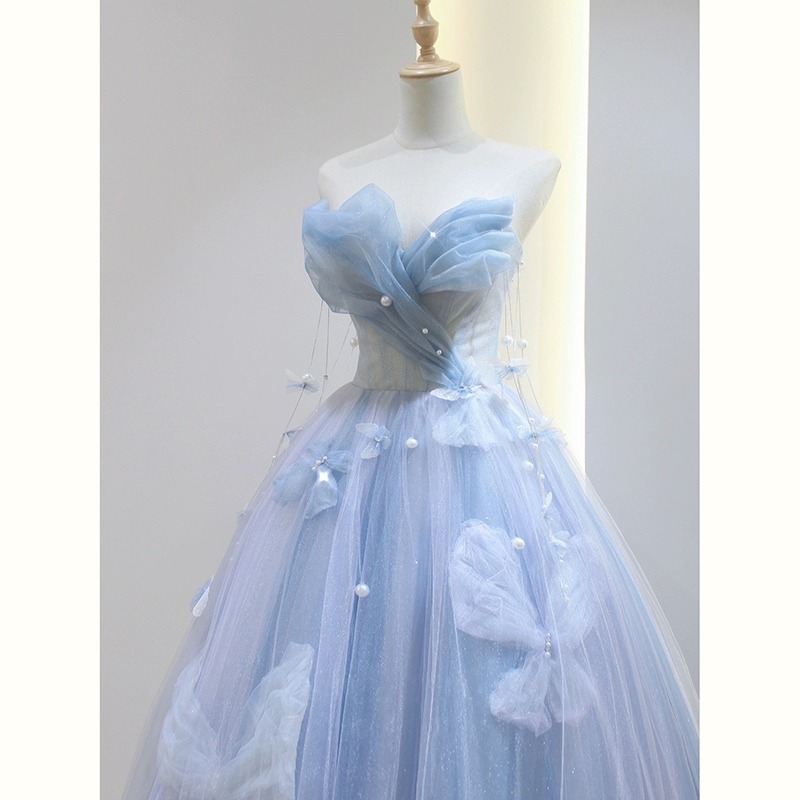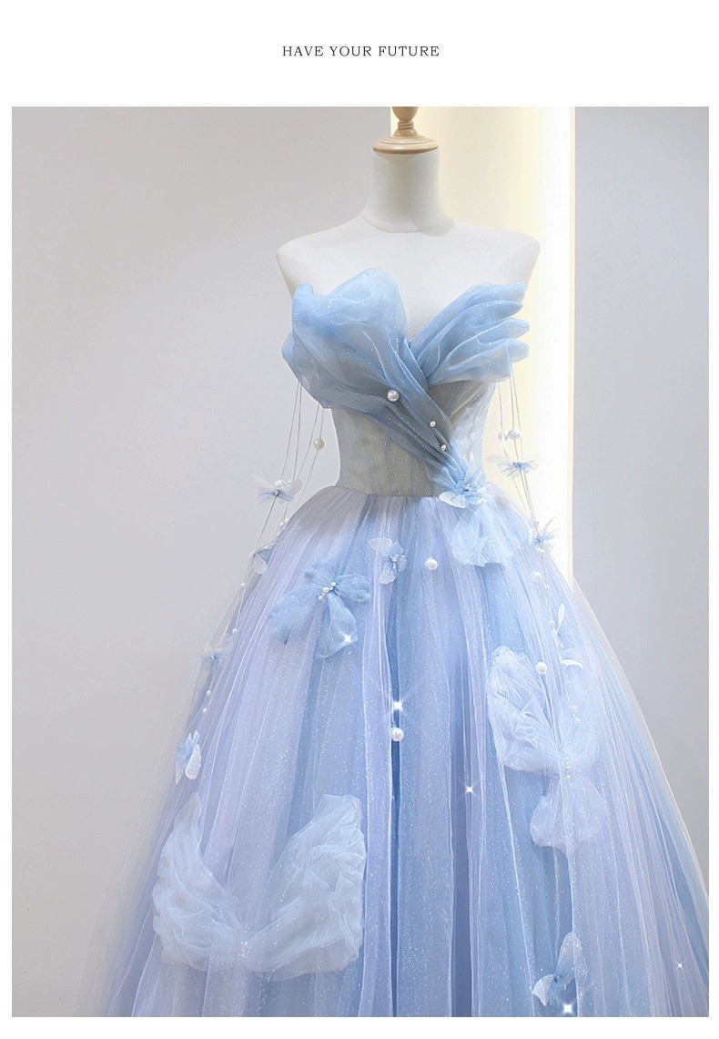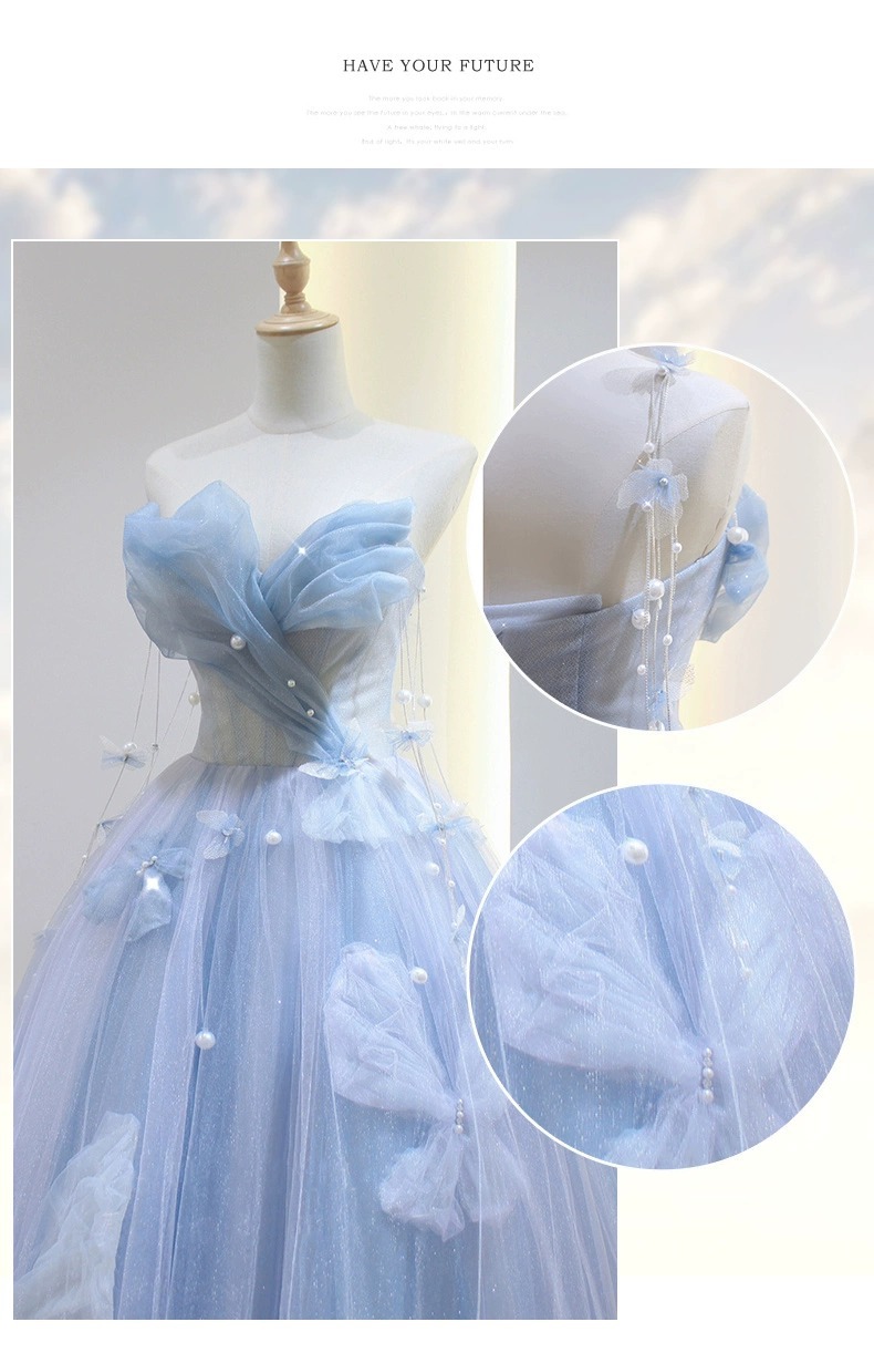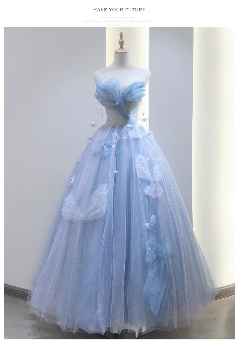 여성용 블루 이브닝 드레스 2026 신상 도망공주 스타일 약혼 연회 우아하고 고급스러운 신부 튜브탑 성인식 드레스스토어 가기