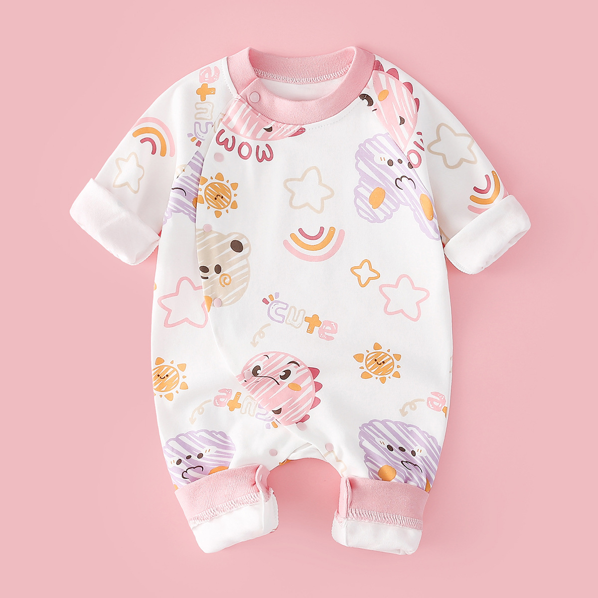 신생아 아기 옷 봄과 가을 아기 점프 수트 소년과 소녀 순수 면 모자 옷 어린이 캐주얼 모자 옷 만화스토어 가기