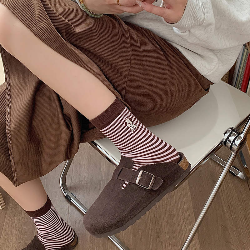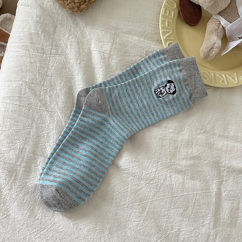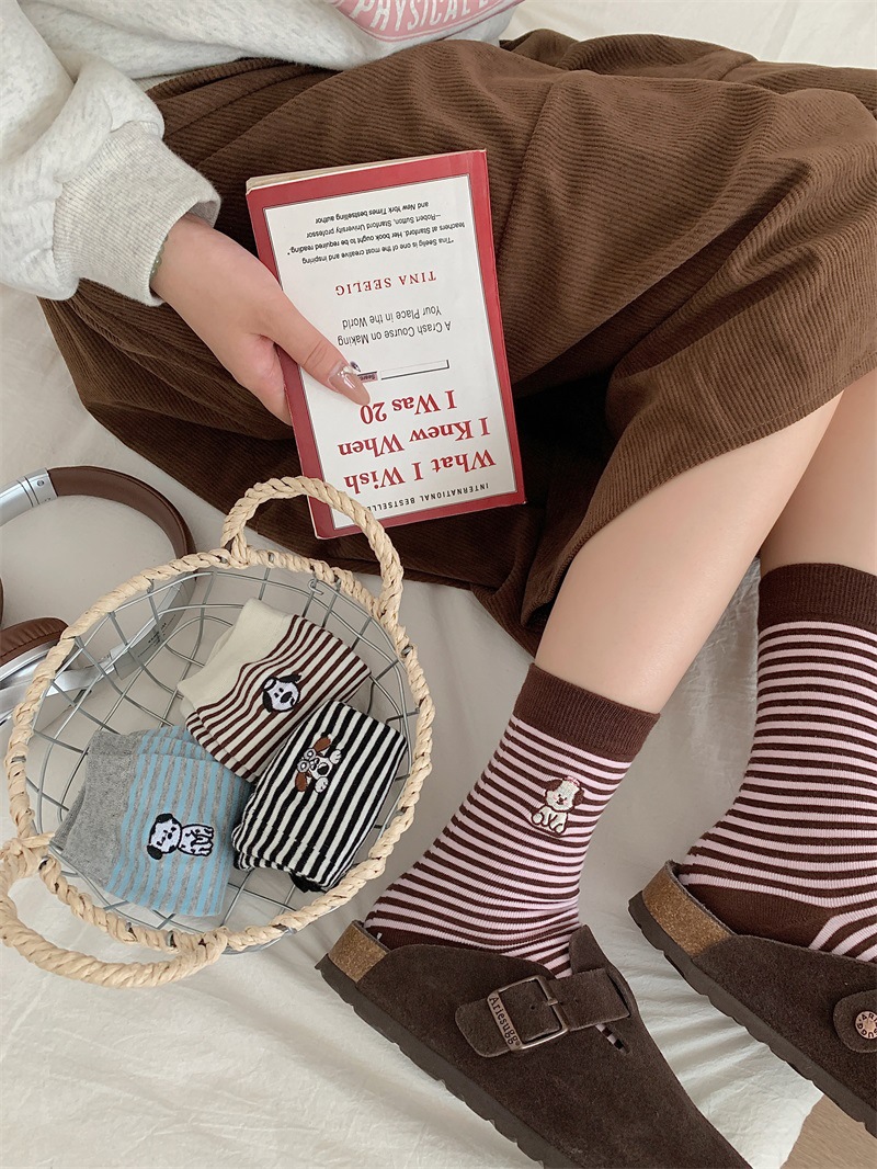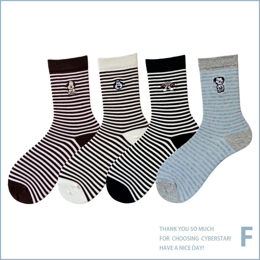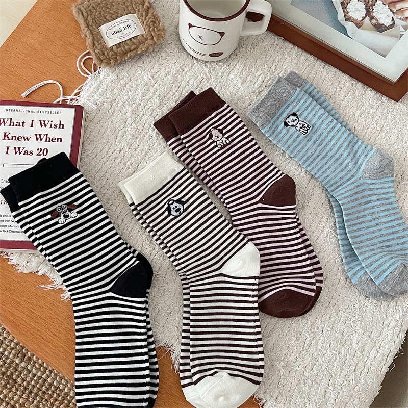 가을 겨울 여성 양말 귀여운 줄무늬 자수 강아지 만화 중목 양말 컬리지 스타일 다용도 인스 트렌드 양말스토어 가기