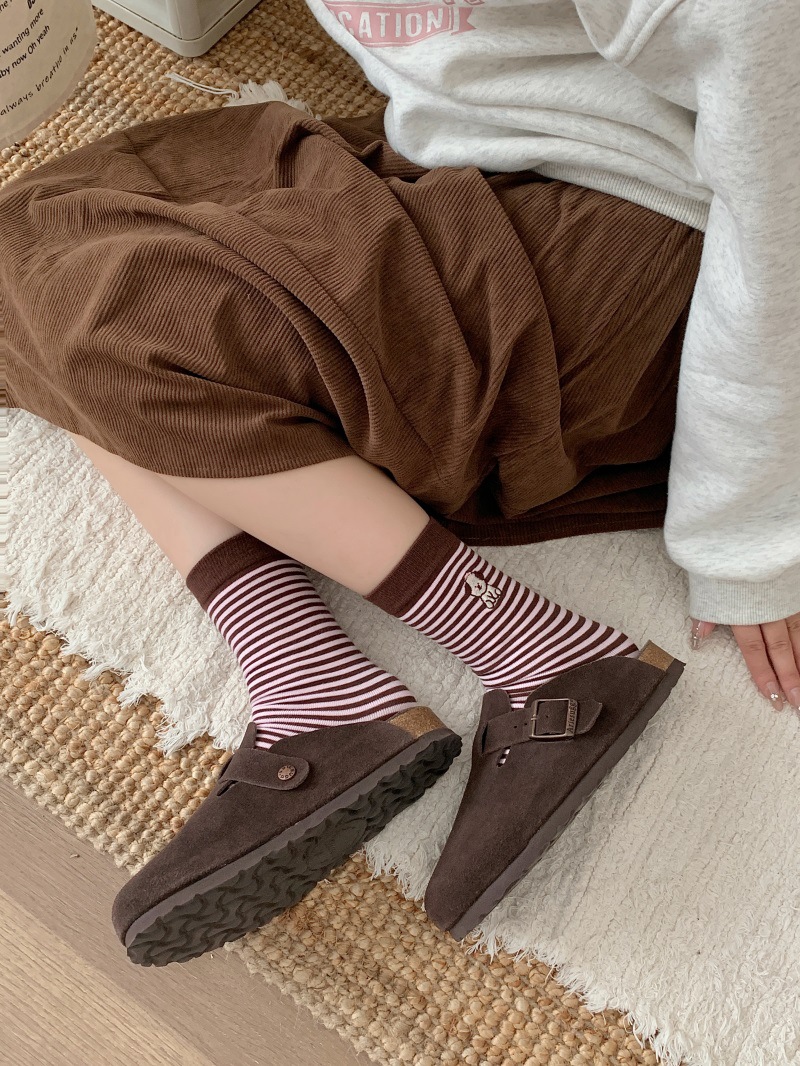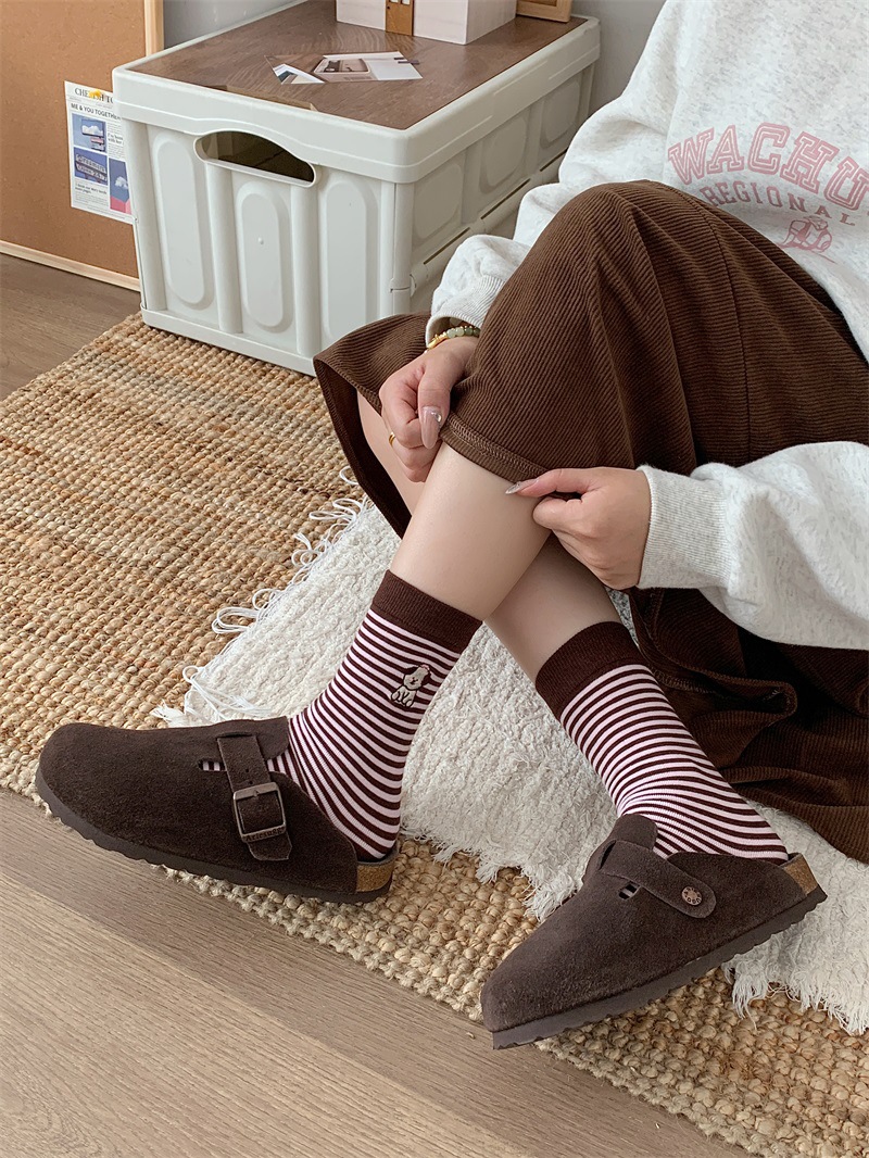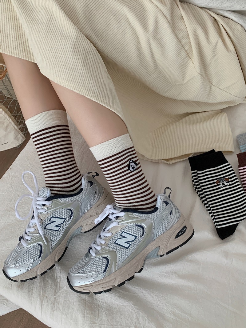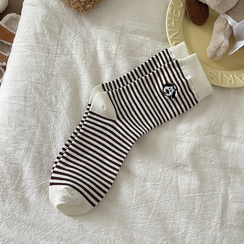 가을 겨울 여성 양말 귀여운 줄무늬 자수 강아지 만화 중목 양말 컬리지 스타일 다용도 인스 트렌드 양말스토어 가기