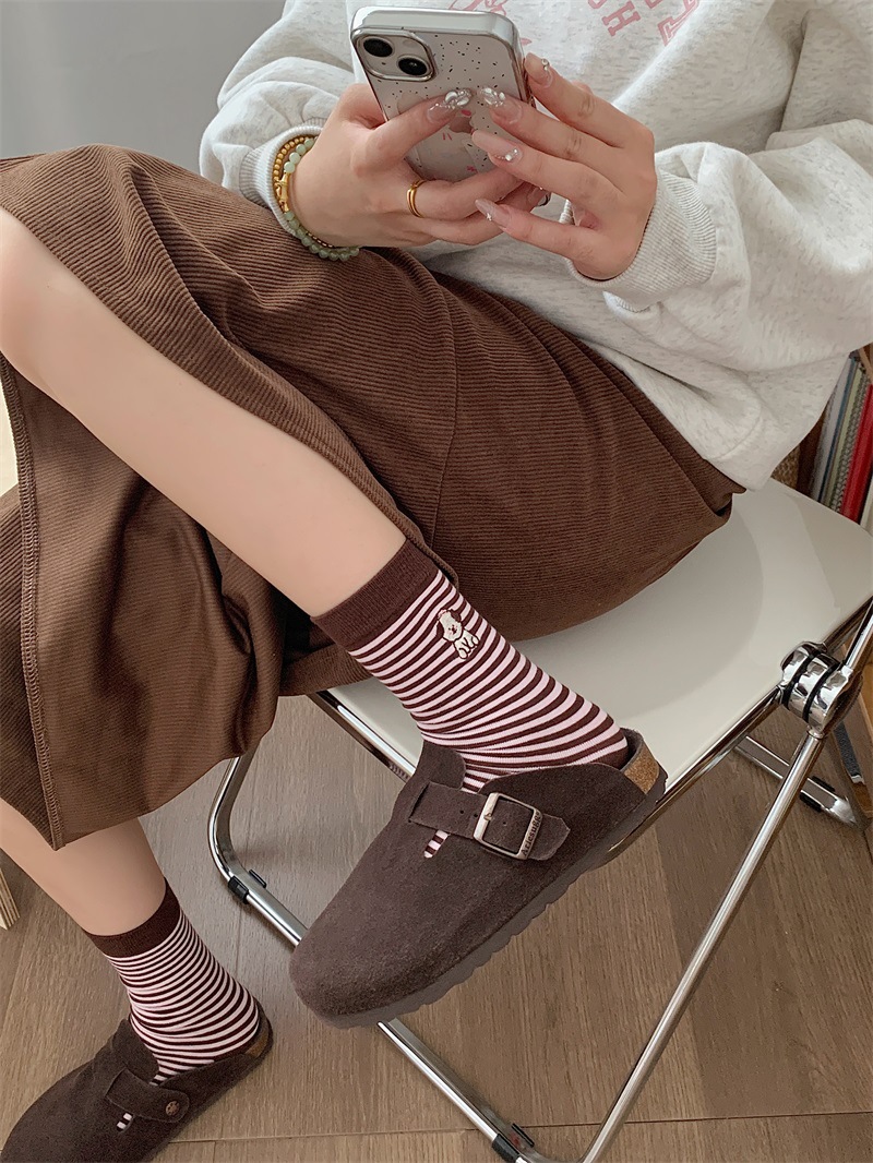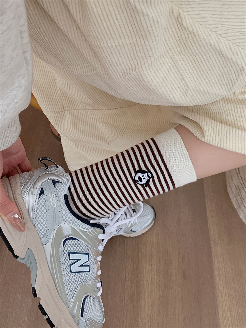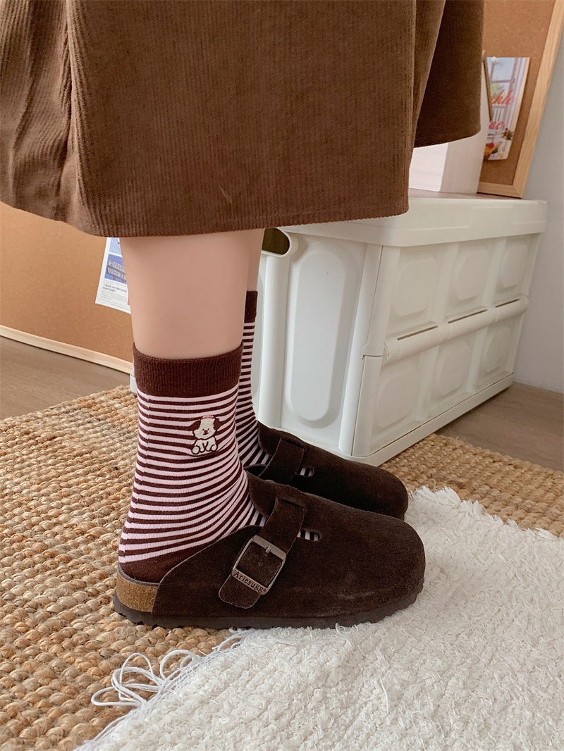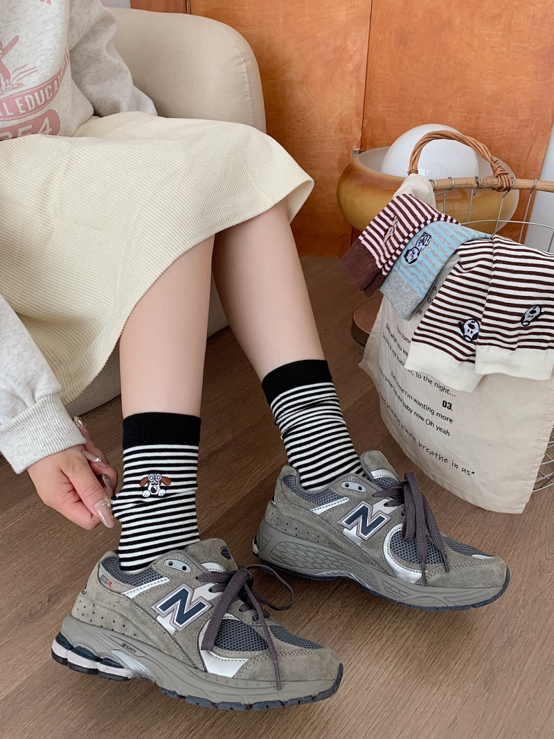 가을 겨울 여성 양말 귀여운 줄무늬 자수 강아지 만화 중목 양말 컬리지 스타일 다용도 인스 트렌드 양말