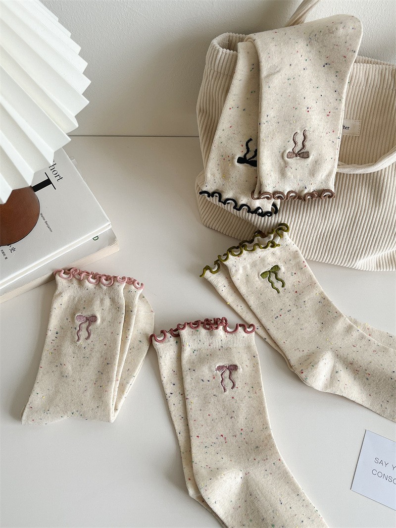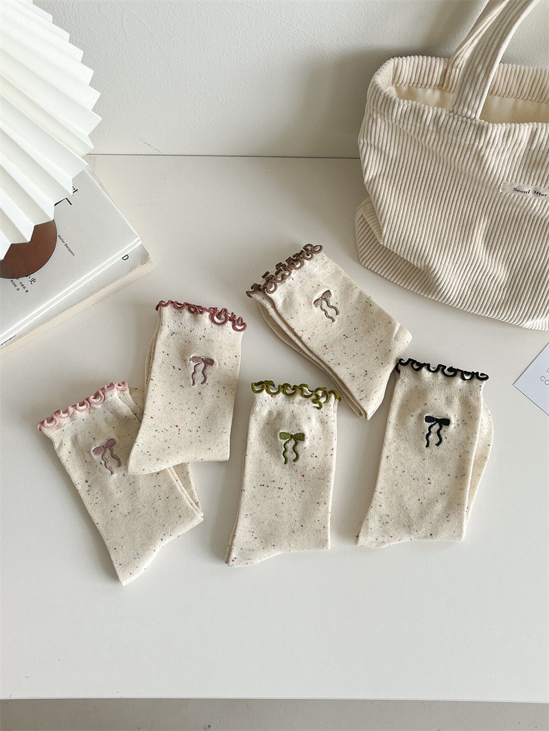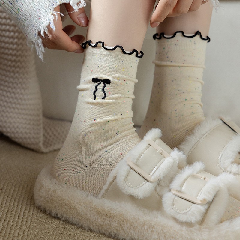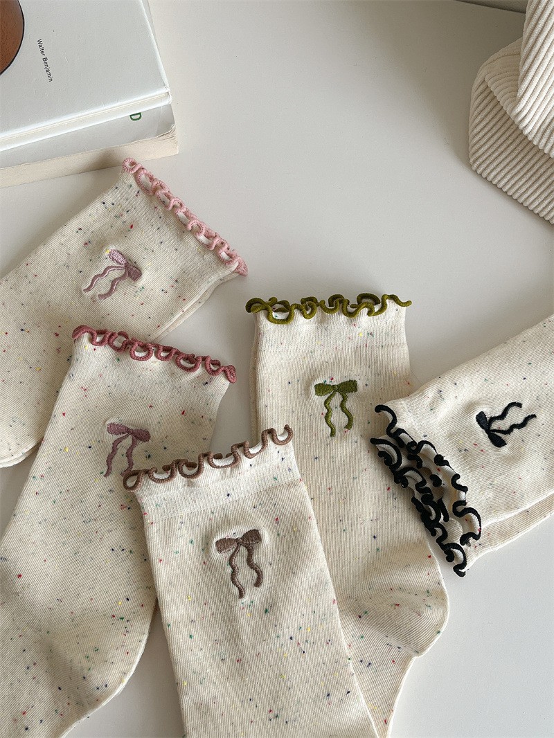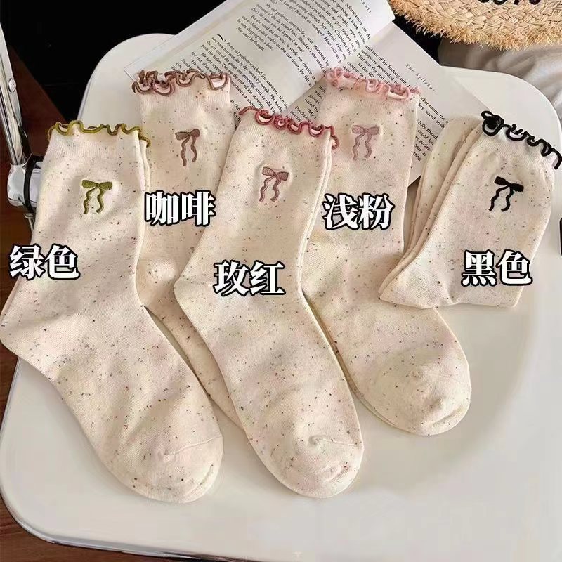 여성용 리본 양말, 봄 여름 신상, 리본 장식과 러플 가장자리가 있는 일본풍 ins 트렌디 패션 양말스토어 가기