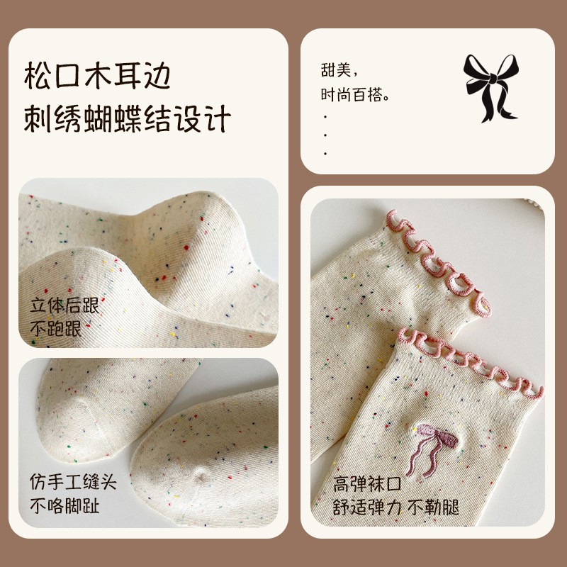 여성용 리본 양말, 봄 여름 신상, 리본 장식과 러플 가장자리가 있는 일본풍 ins 트렌디 패션 양말