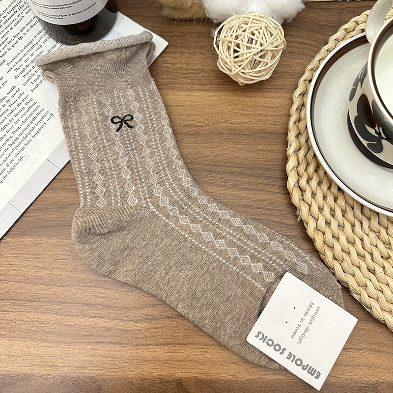 한국 양말 수입 도매 여성 양말 구매 EMPOLE 가을과 겨울 새로운 중간 튜브 컬링 활 달콤한 바람