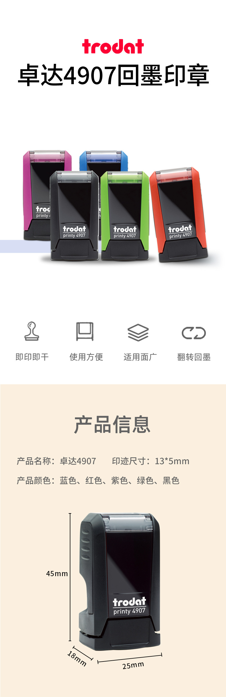 Trodat Zhuoda 4907 잉크 백 씰 1306 미니 잉크 백 이름 씰 개인 씰 Duplo 인쇄 재료 도매스토어 가기