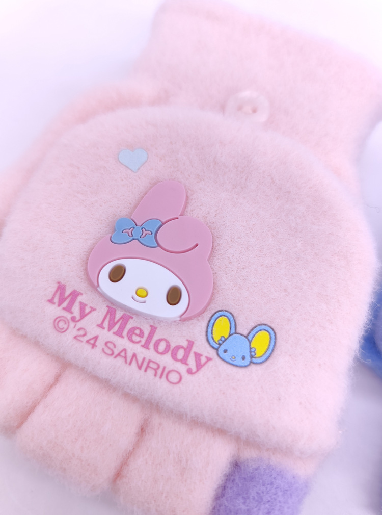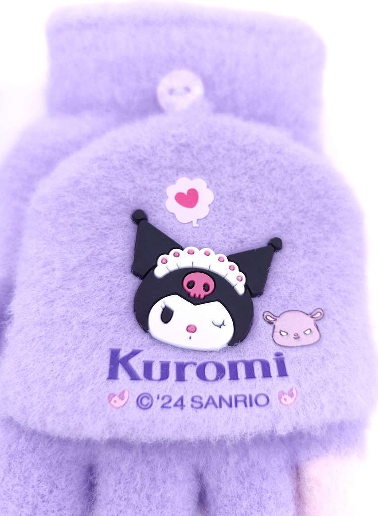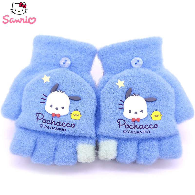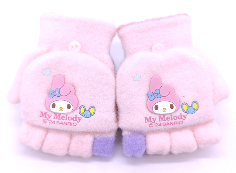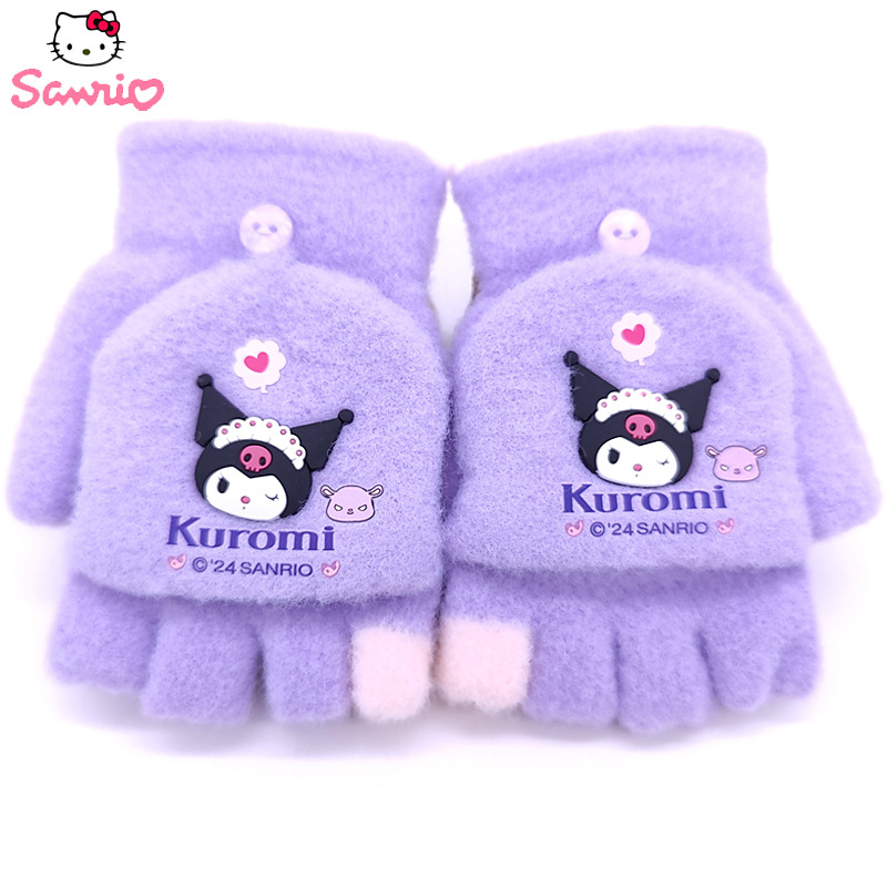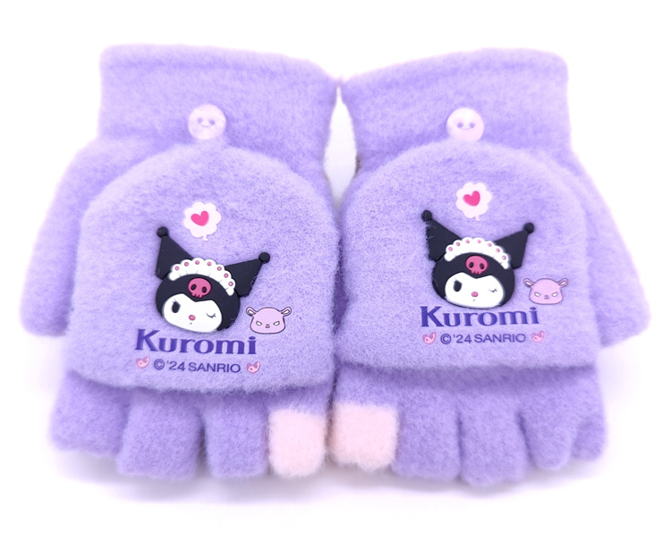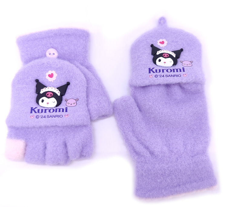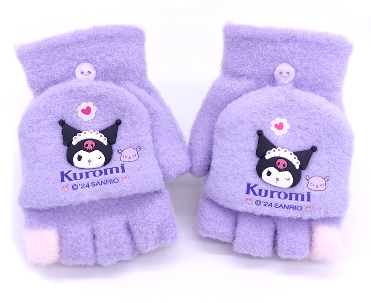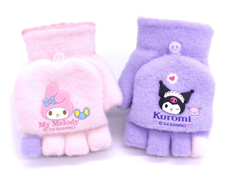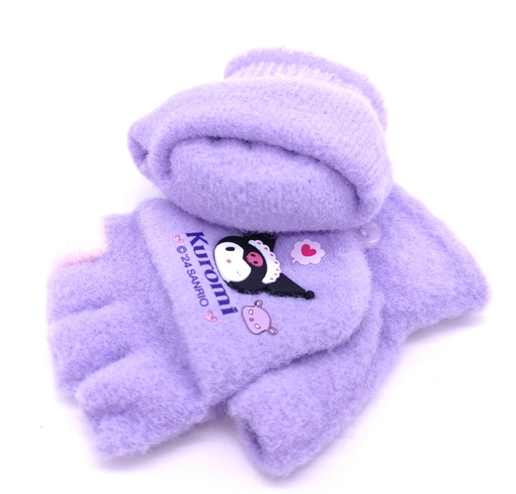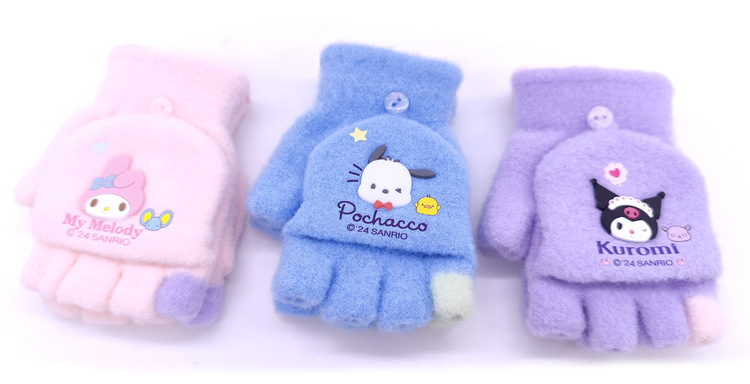 Kulomi 어린이 장갑 겨울 따뜻한 니트 양모 반 손가락 만화 귀여운 아기 소녀의 메를로 플립 핑거 커버