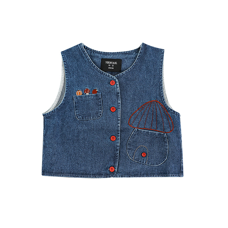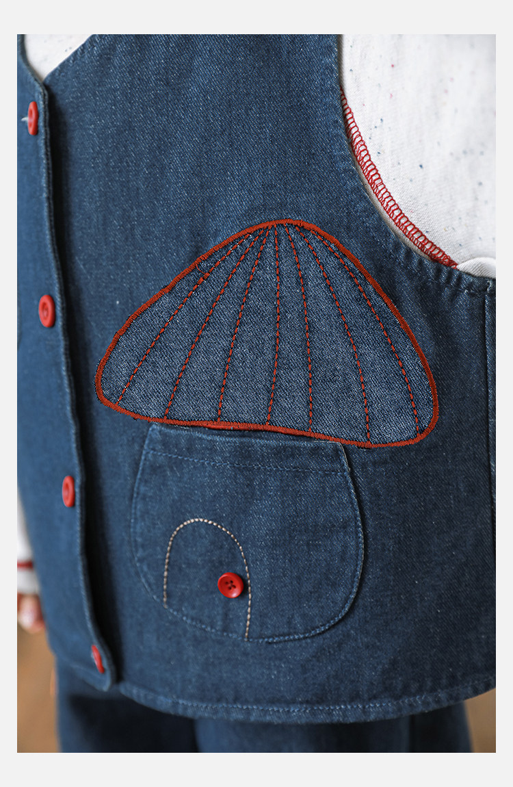 Wurib 소년 스웨터 2025 년 봄과 가을 새로운 어린이 민소매 데님 조끼 청바지 곰 세트