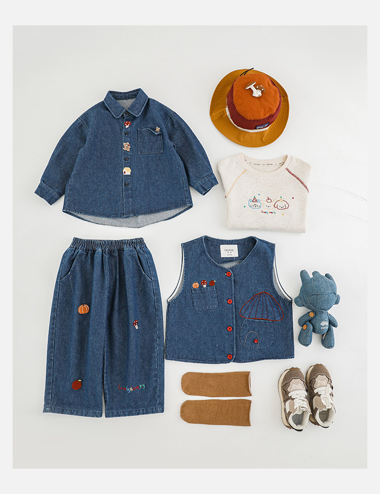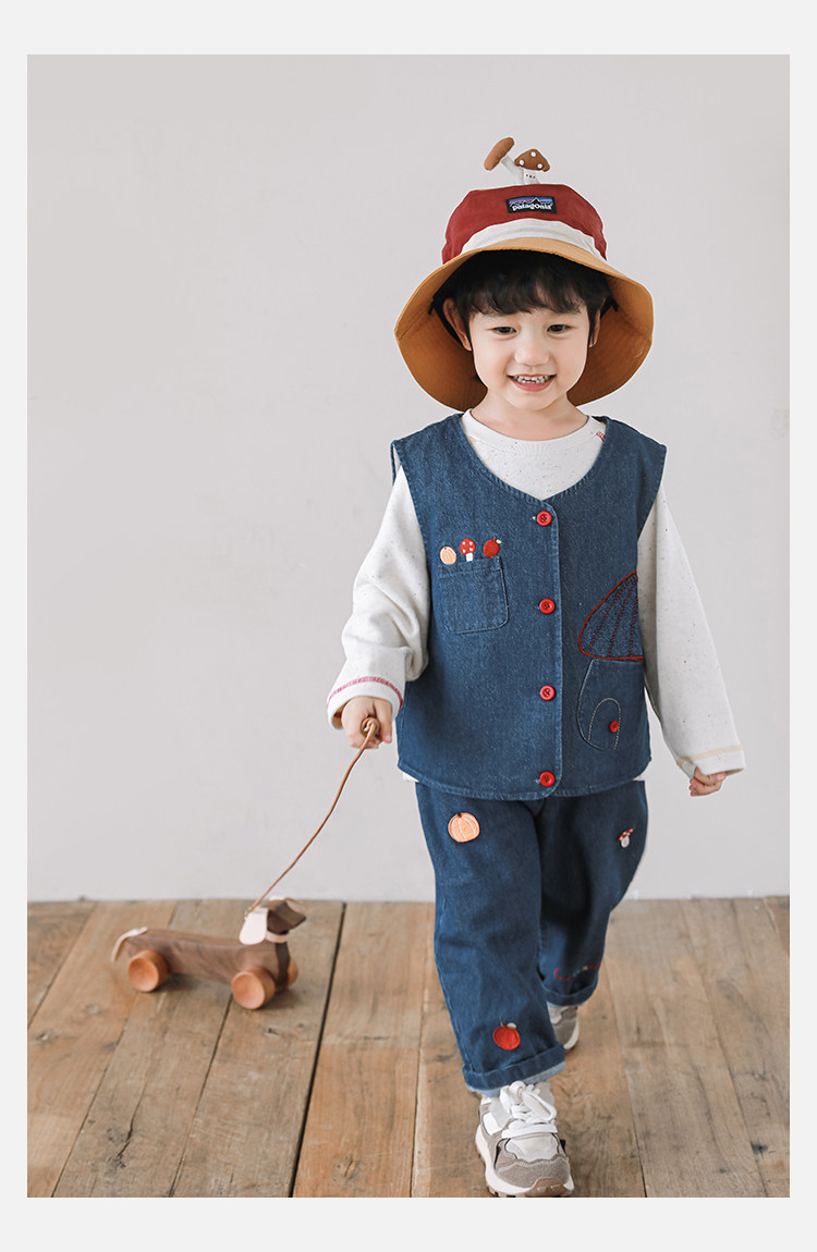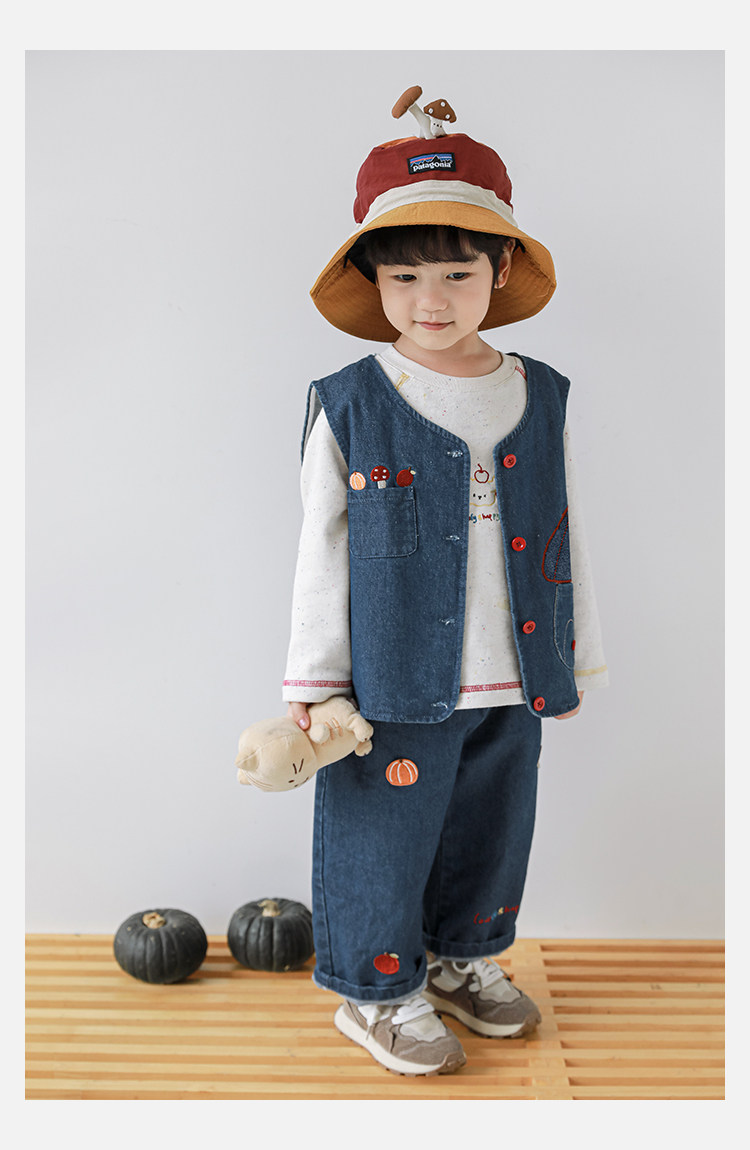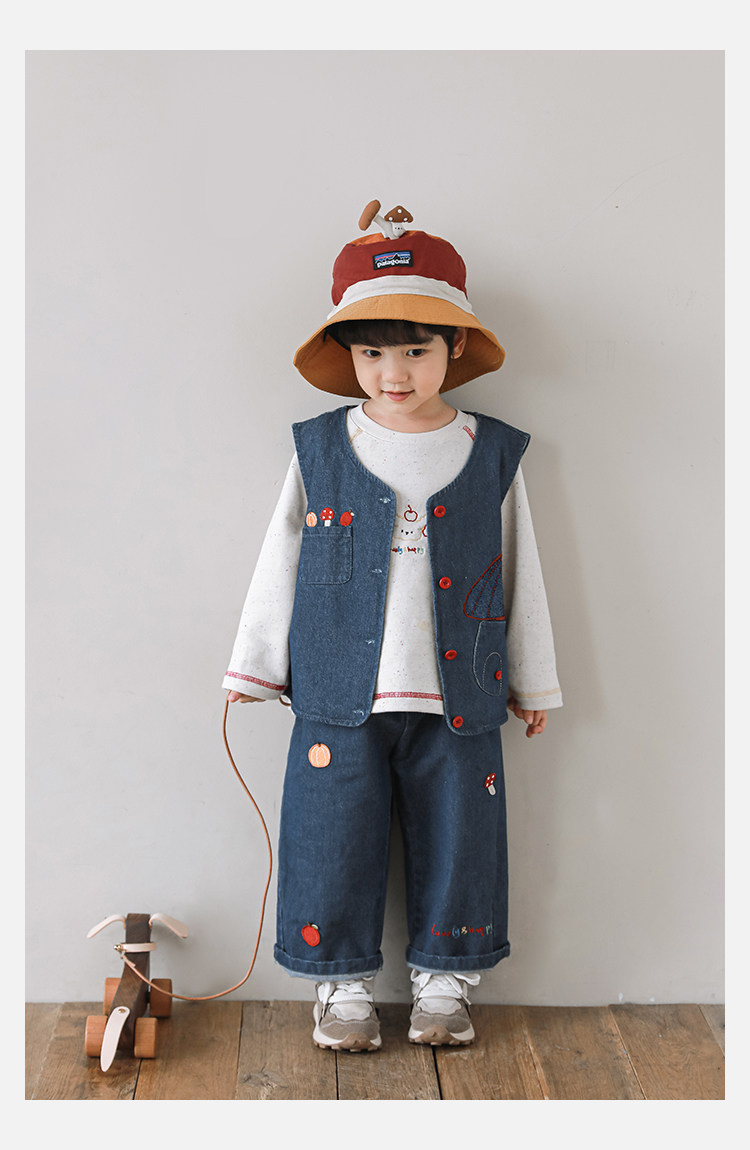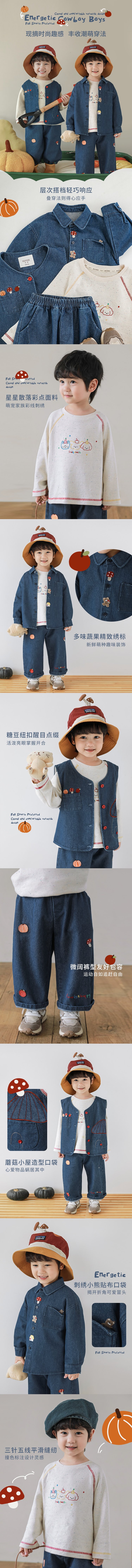 Wurib 소년 스웨터 2025 년 봄과 가을 새로운 어린이 민소매 데님 조끼 청바지 곰 세트스토어 가기