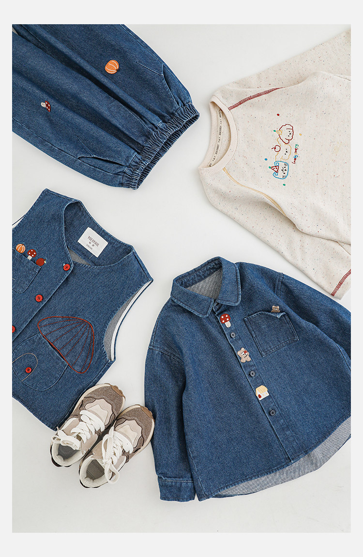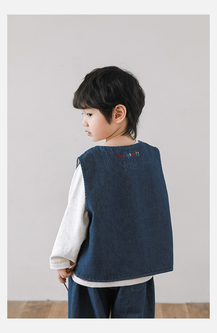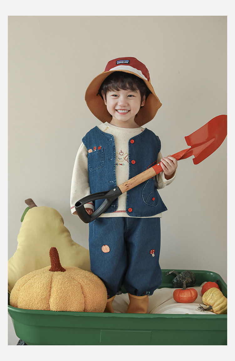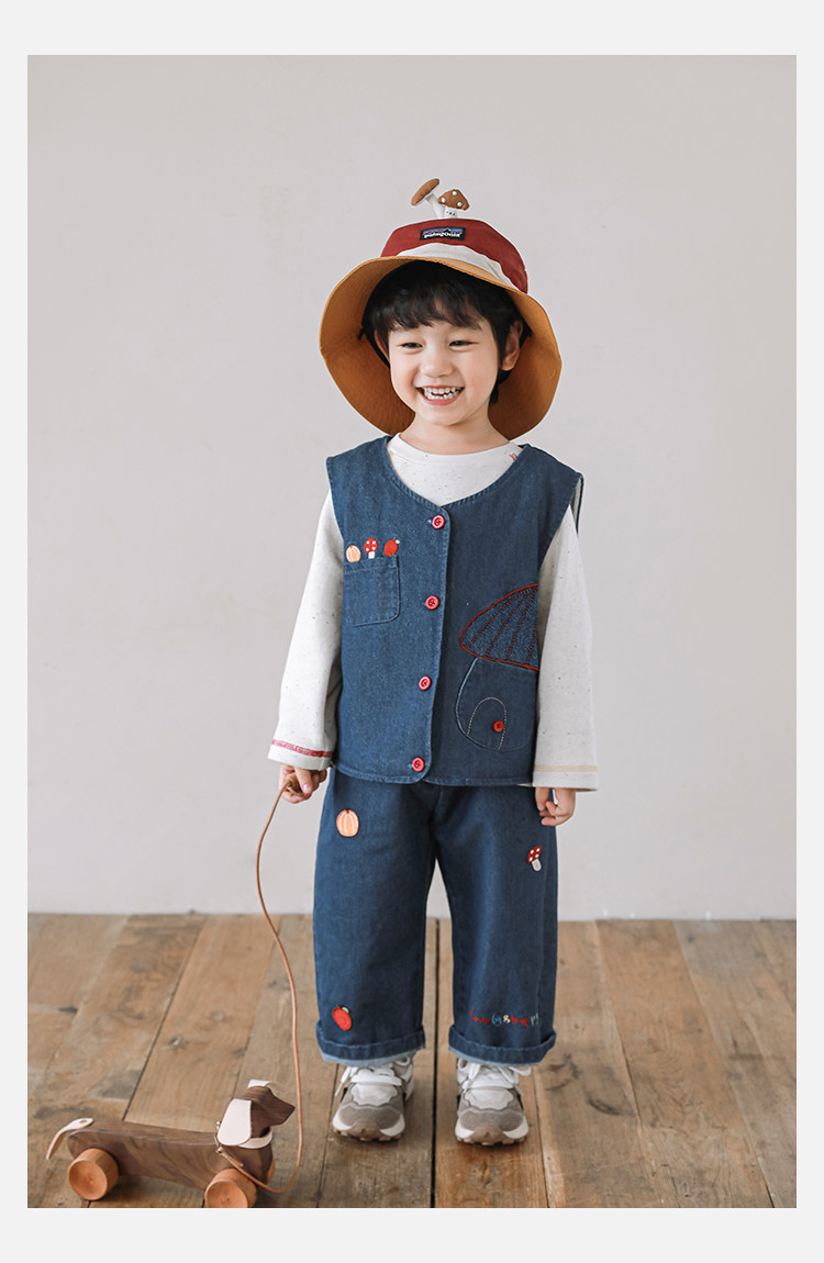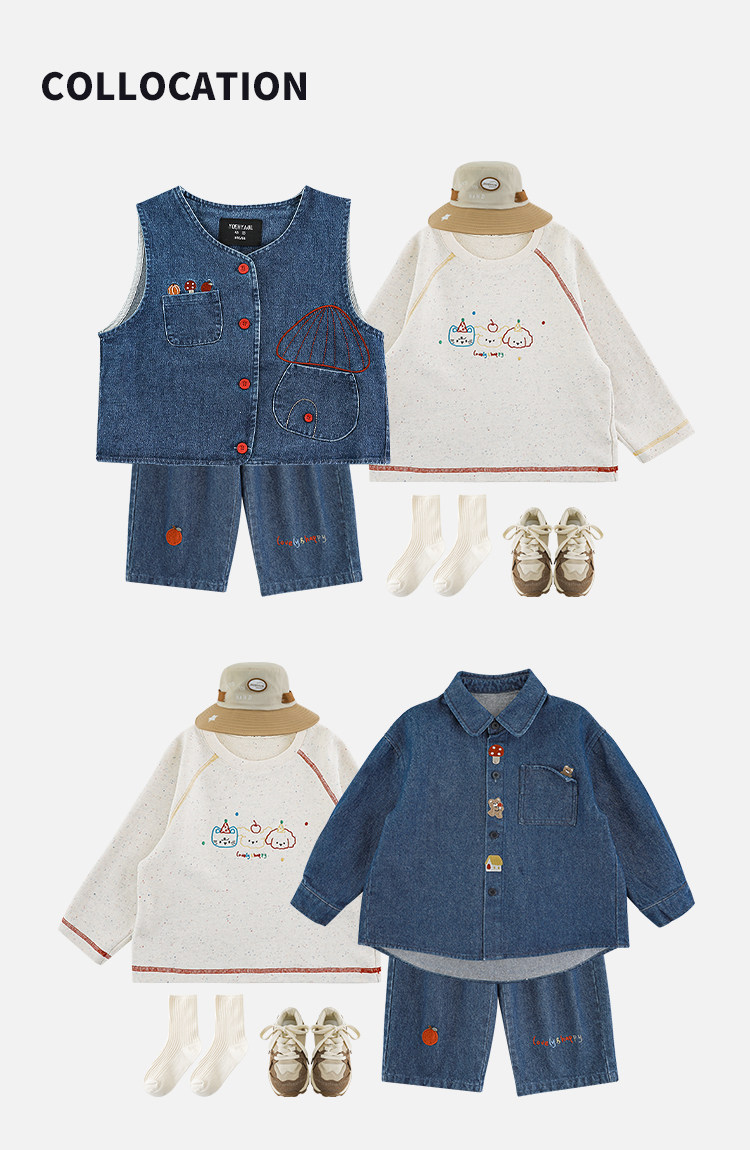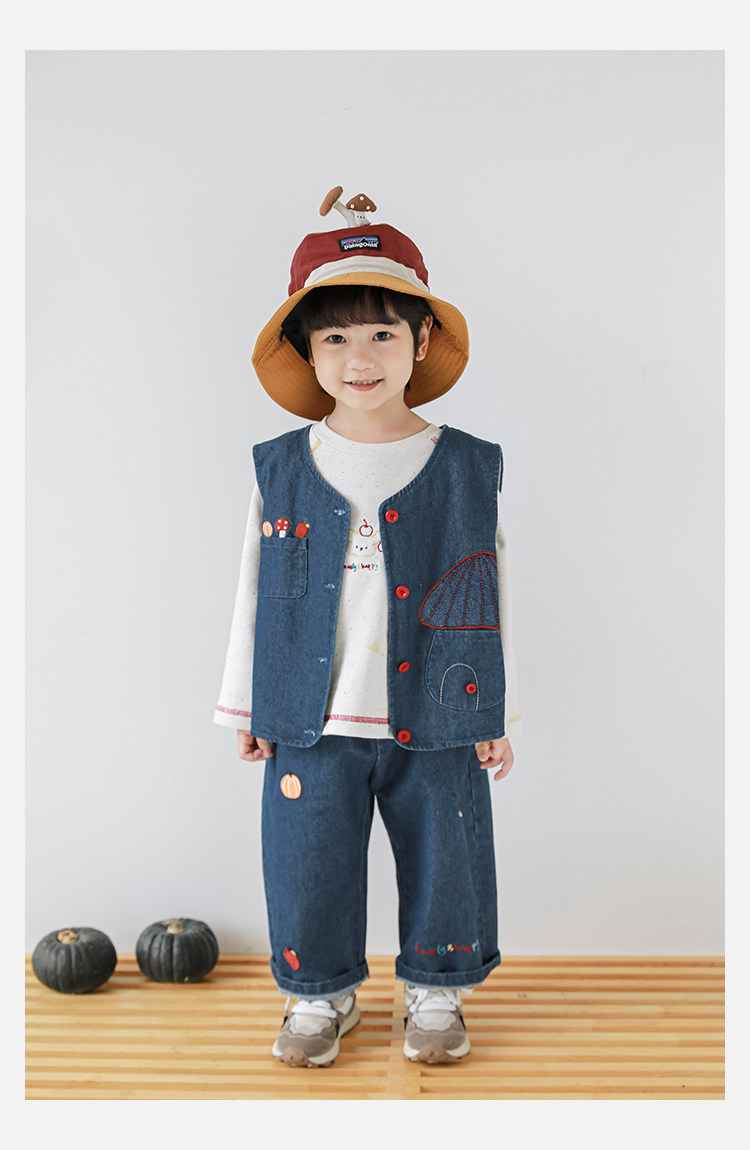 Wurib 소년 스웨터 2025 년 봄과 가을 새로운 어린이 민소매 데님 조끼 청바지 곰 세트스토어 가기