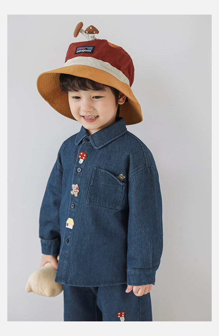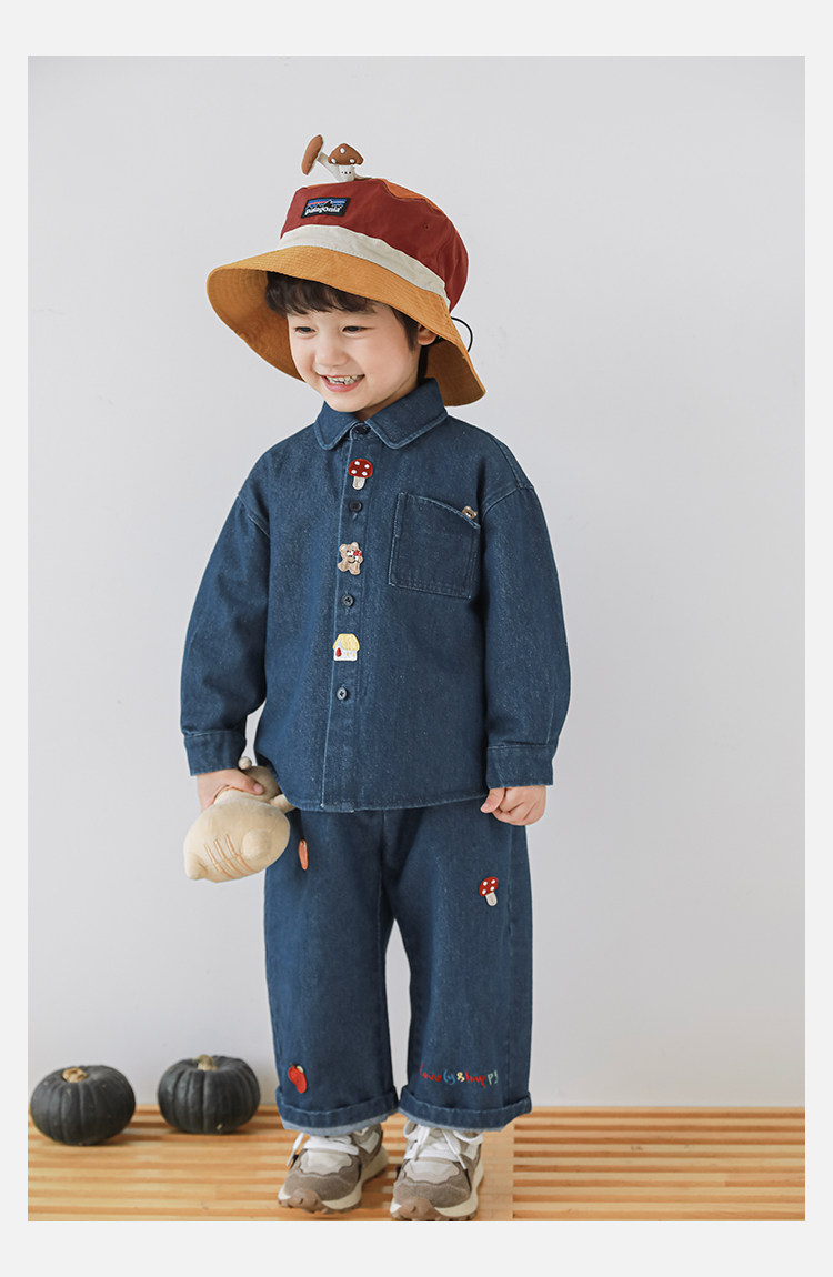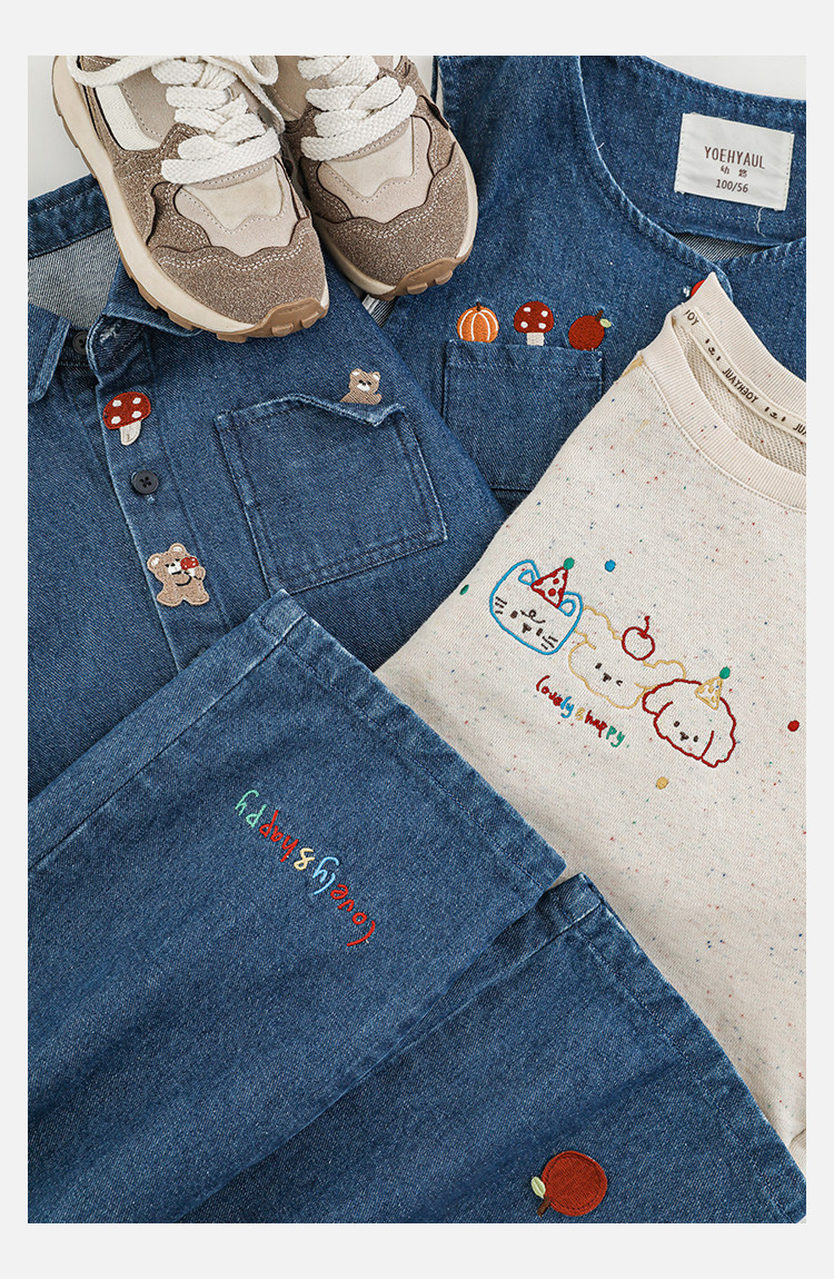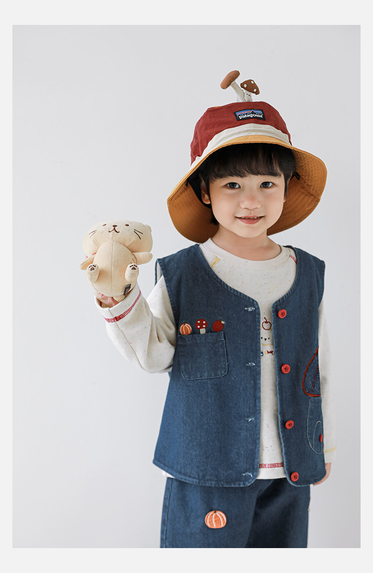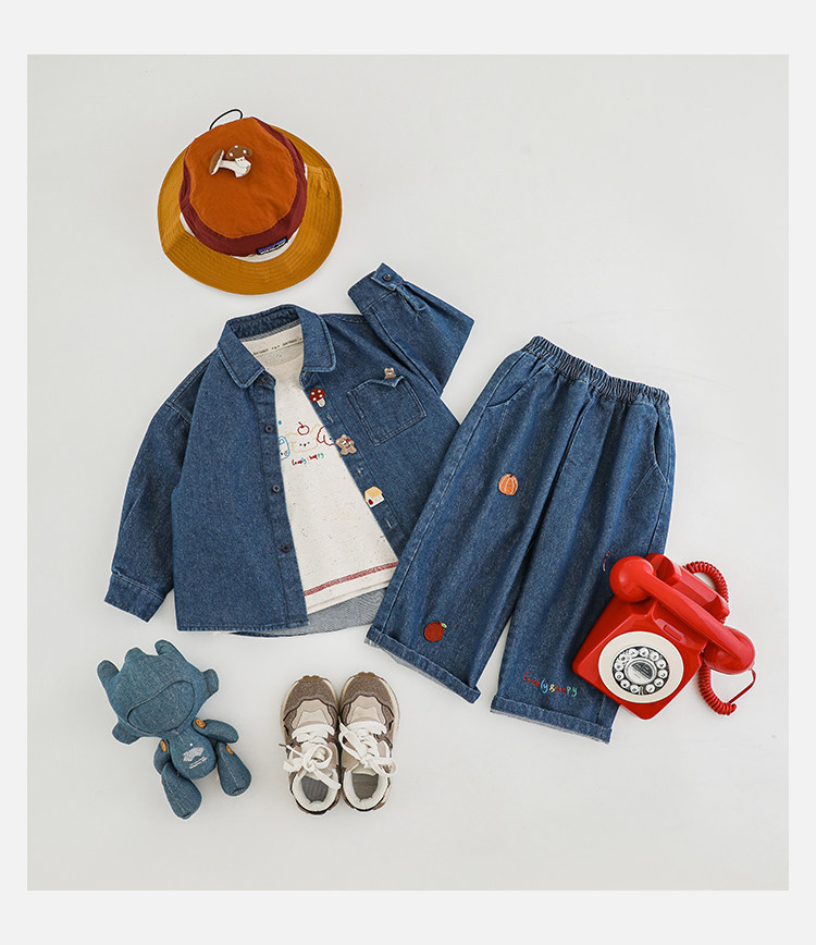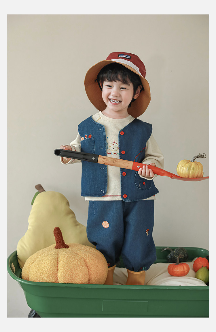Wurib 소년 스웨터 2025 년 봄과 가을 새로운 어린이 민소매 데님 조끼 청바지 곰 세트스토어 가기
