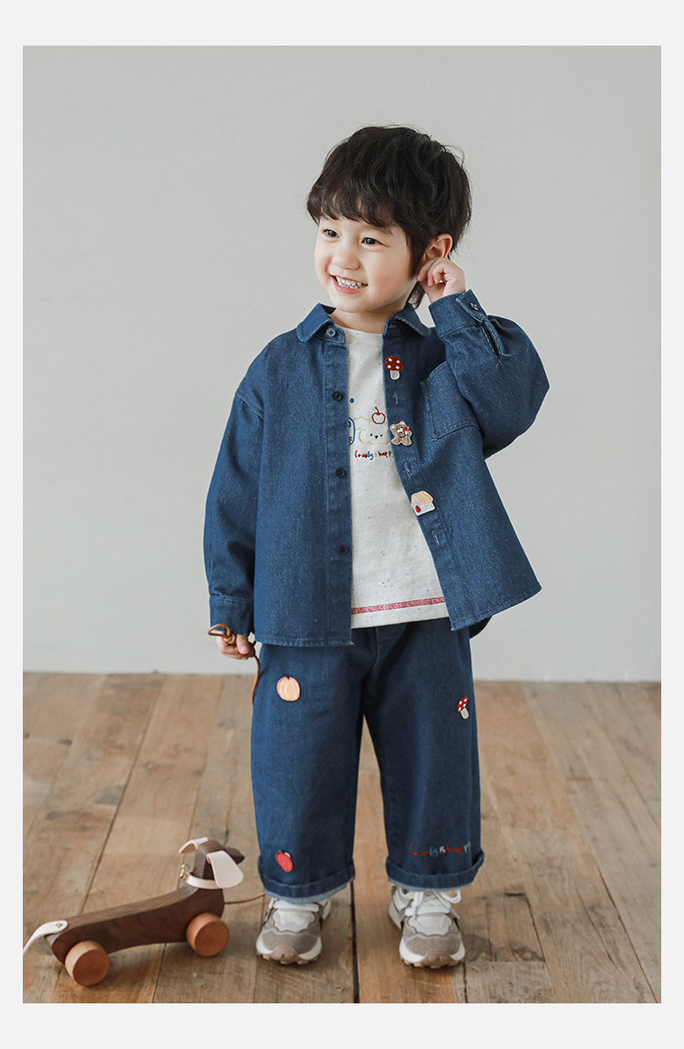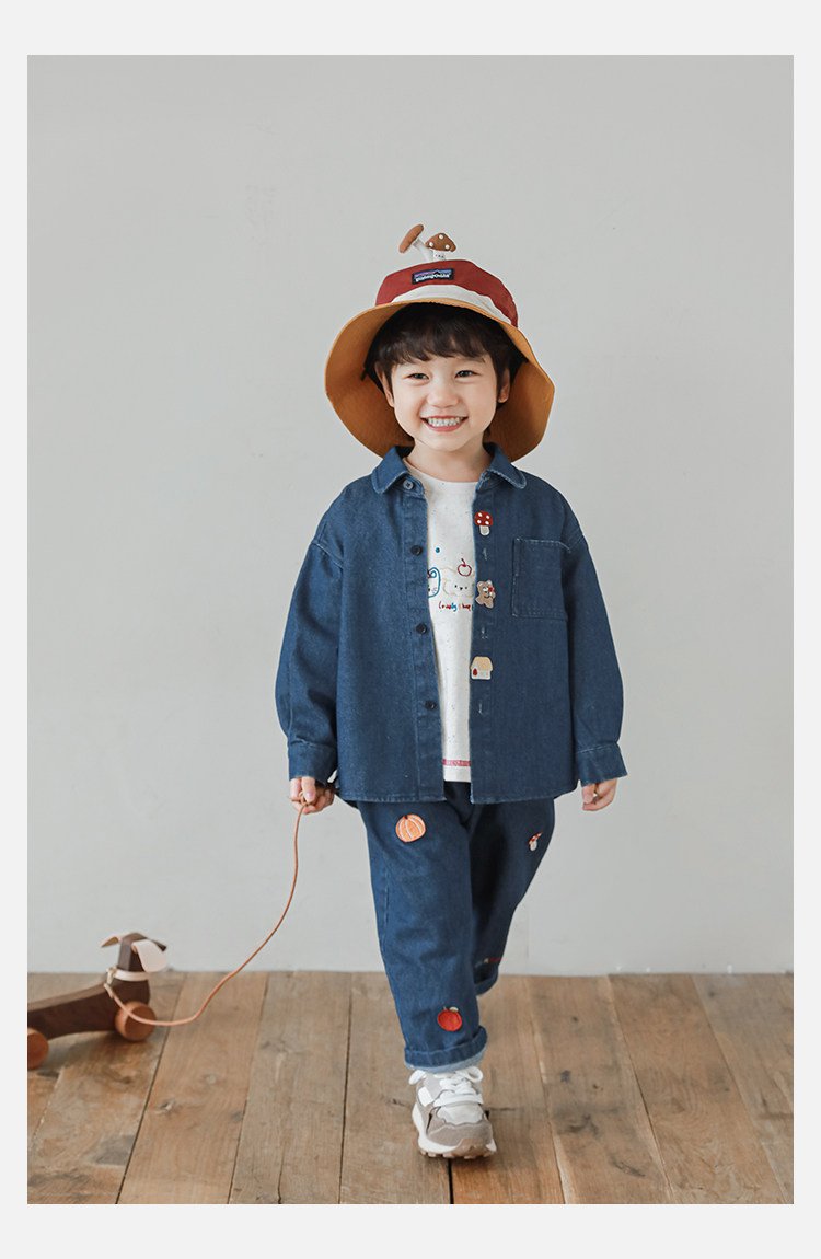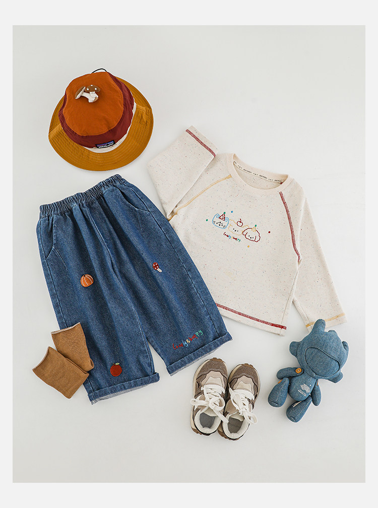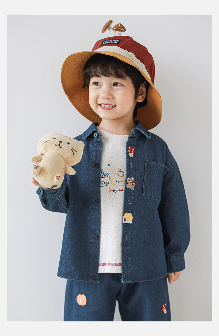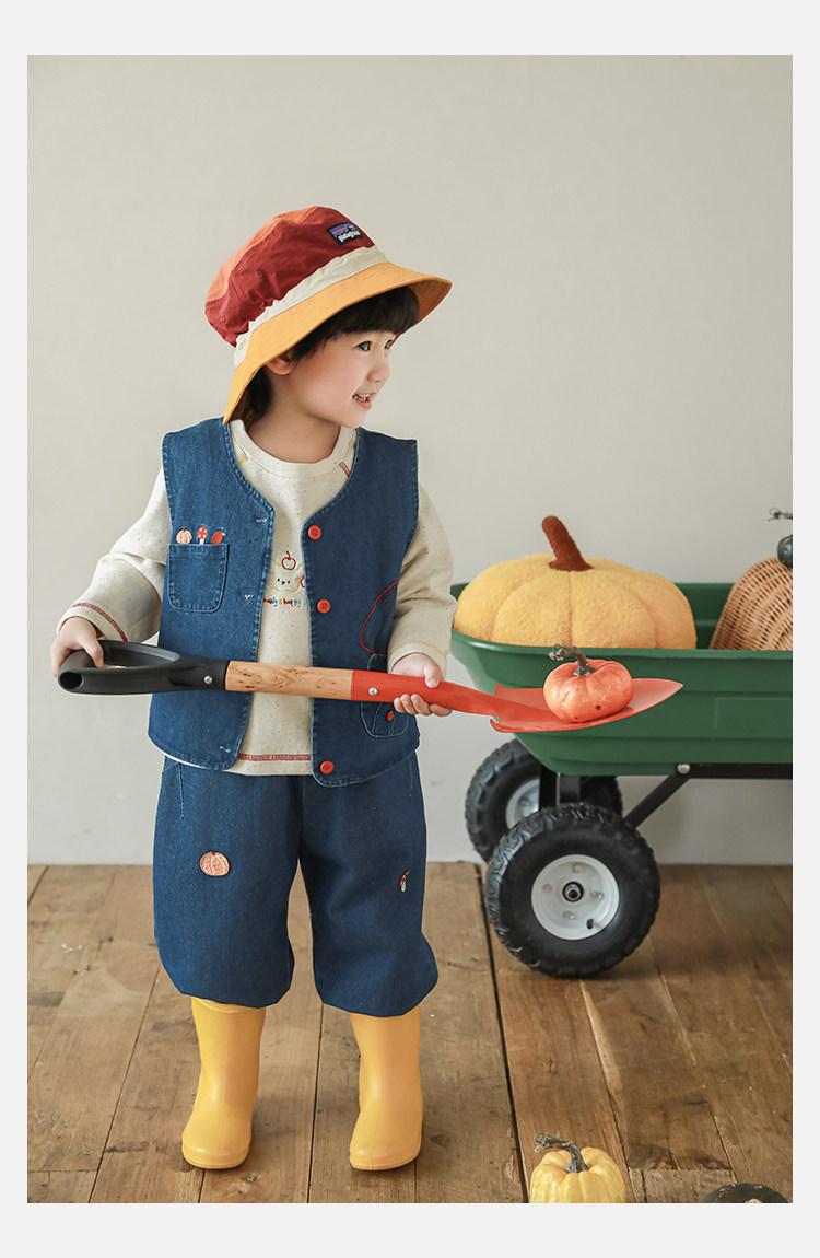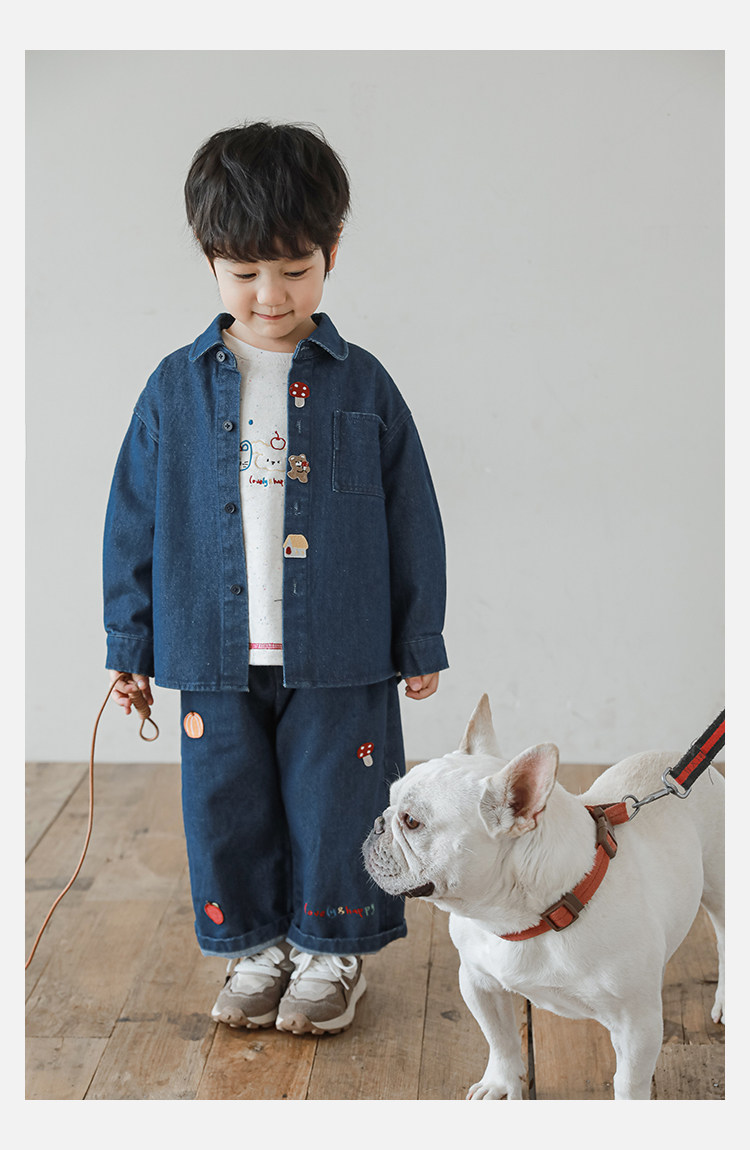 Wurib 소년 스웨터 2025 년 봄과 가을 새로운 어린이 민소매 데님 조끼 청바지 곰 세트스토어 가기
