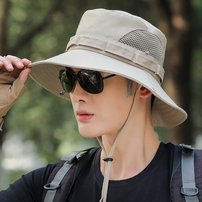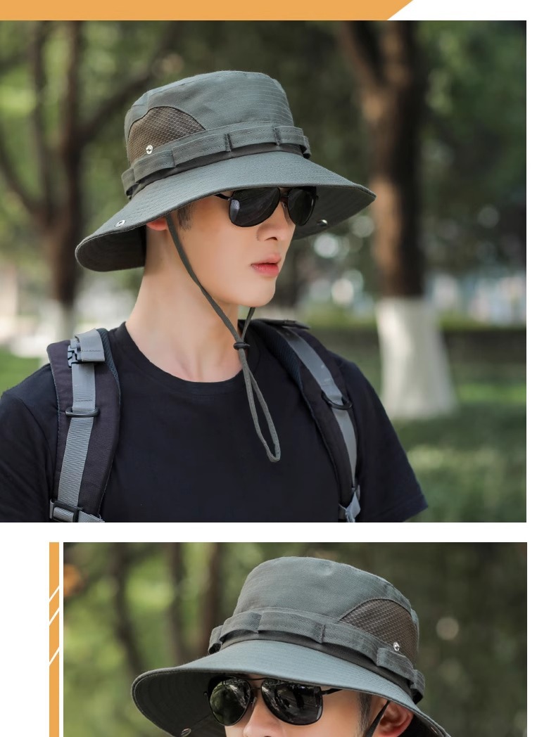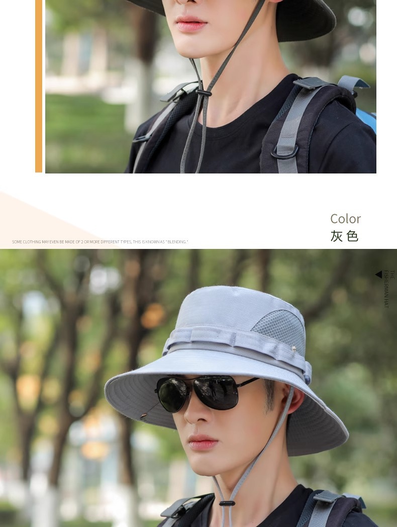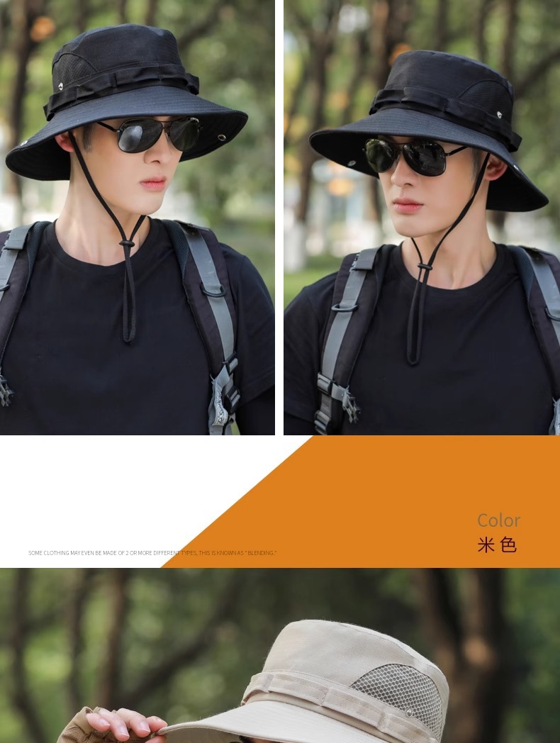 야외 등산 어부 모자 남자의 선 스크린 통기성 패션 메쉬 벨트 태양 모자 남자 낚시 모자 UV 보호 모자