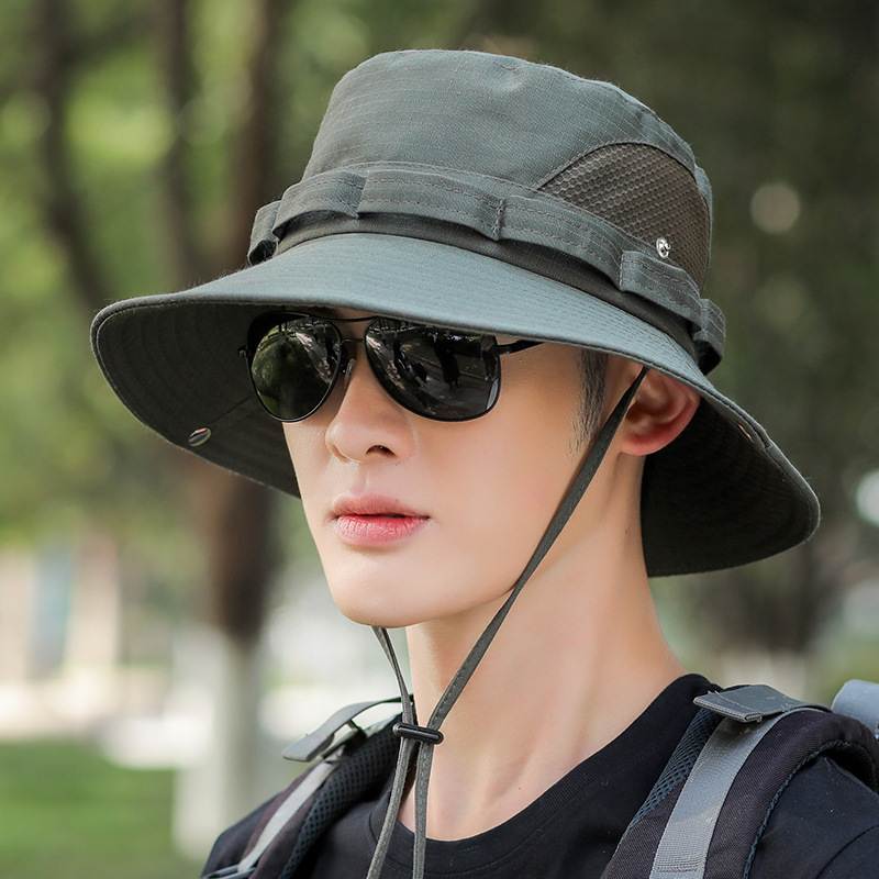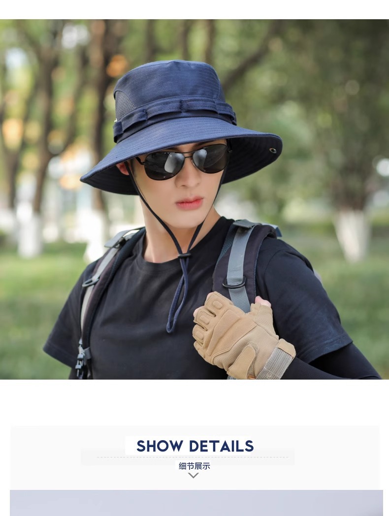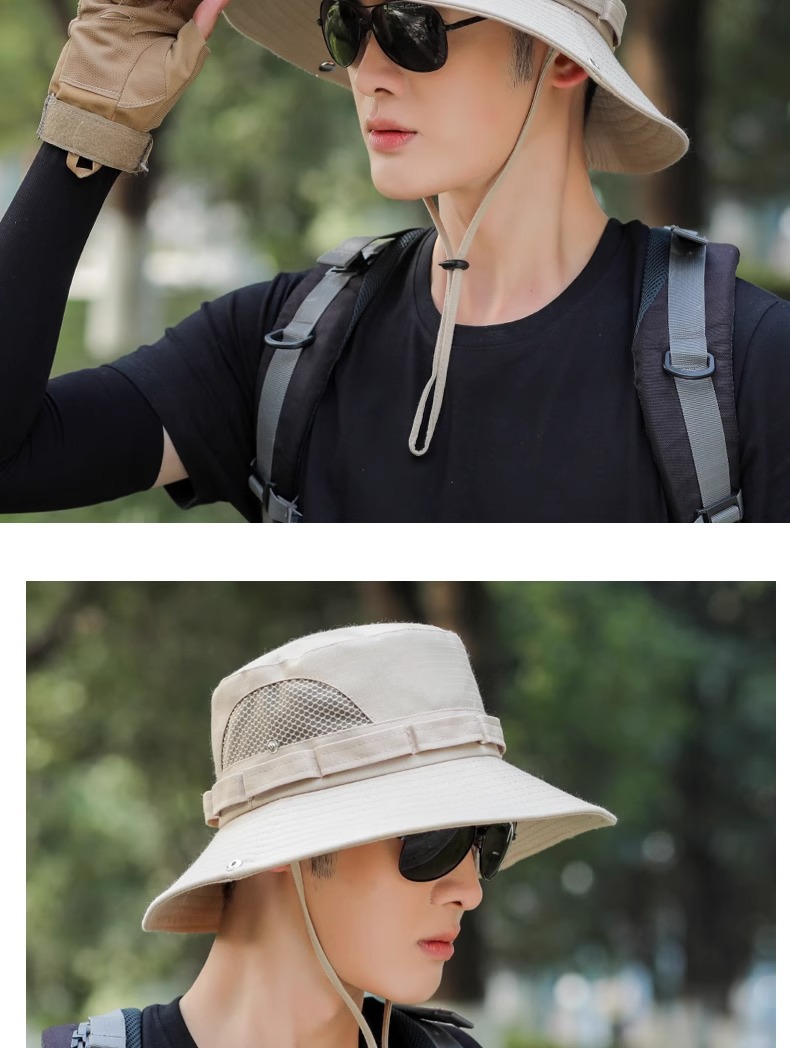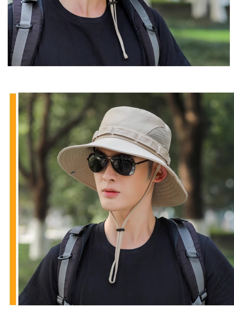 야외 등산 어부 모자 남자의 선 스크린 통기성 패션 메쉬 벨트 태양 모자 남자 낚시 모자 UV 보호 모자