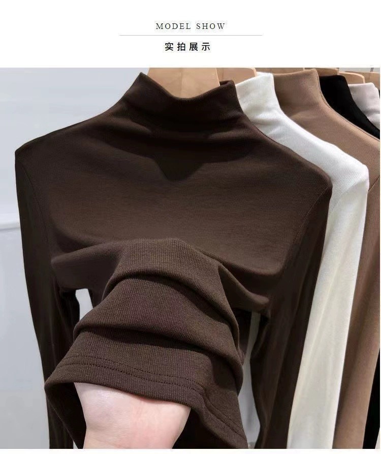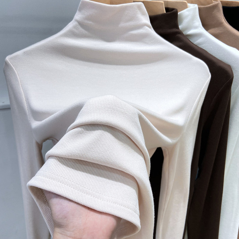여성 한국식 따뜻한 슬림핏 슬림핏 슬림베이스 셔츠 가을과 겨울 여성용 패션 화이트 하프 하이 칼라 긴팔 티셔츠스토어 가기