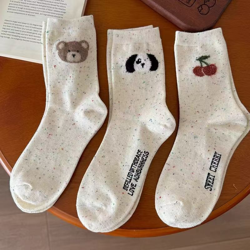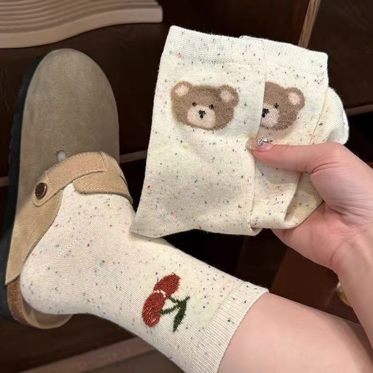 가을 새로운 도착 포인트 원사 솔리드 컬러 Ins 귀여운 곰 도파민 대학 여성의 중간 길이 스타킹 2024 새로운 도착 사랑스토어 가기