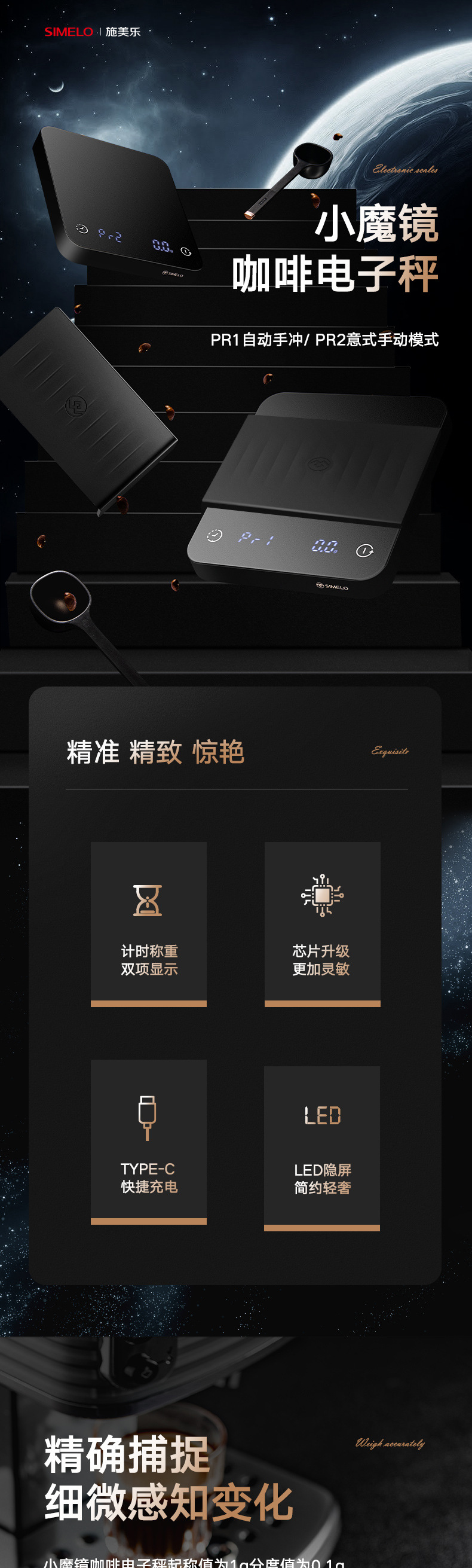 SIMEL0 북유럽 여행 작은 매직 미러 커피 스케일 이탈리아 베이킹 주방 전자 규모 높은 정밀 계량스토어 가기
