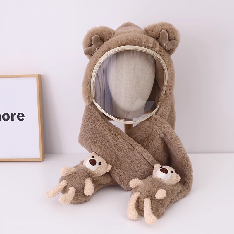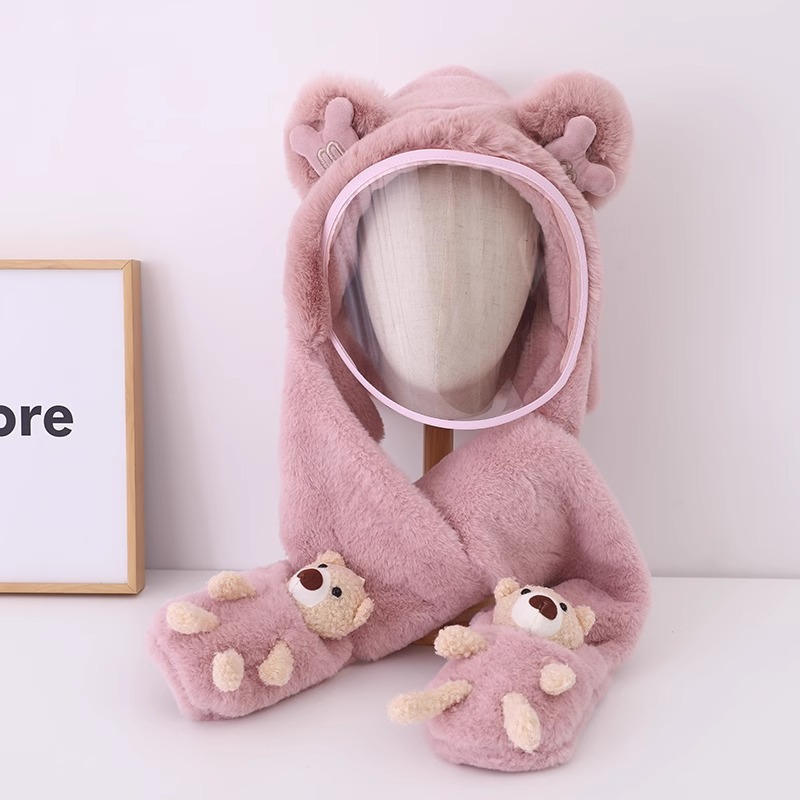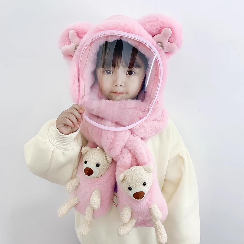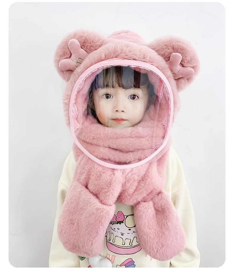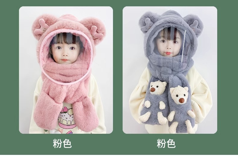 겨울 어린이 봉제 모자 보호 마스크 아기 야외 따뜻한 소년과 소녀 귀 보호 캡 통합 바람 모자
