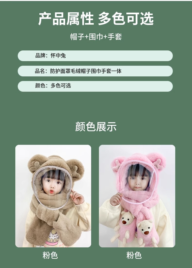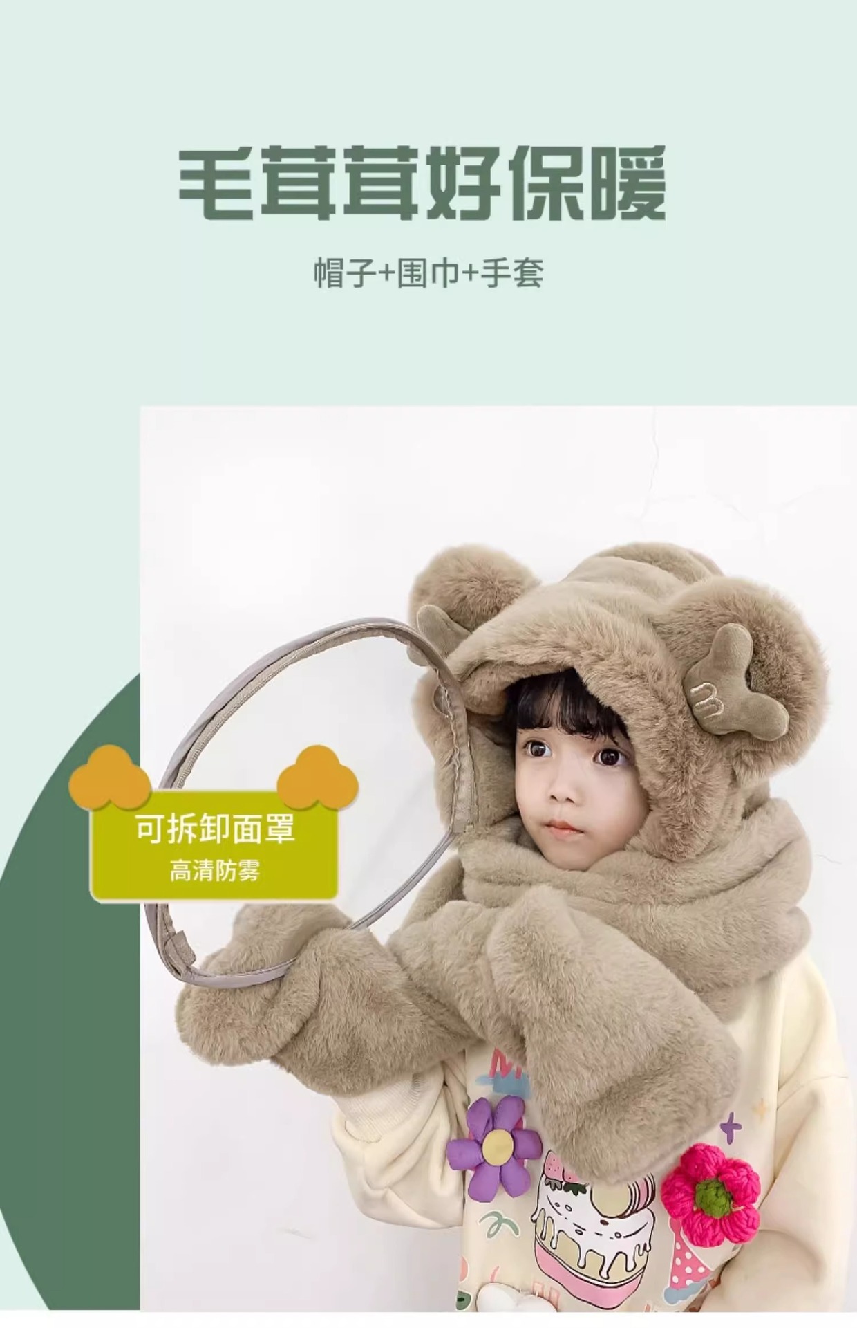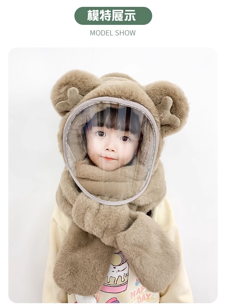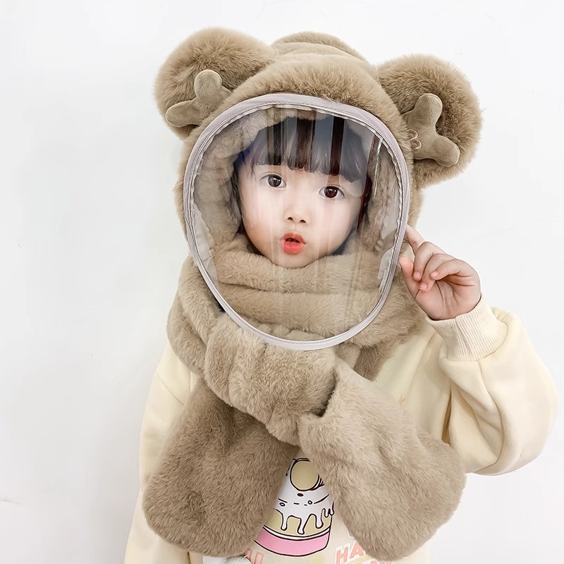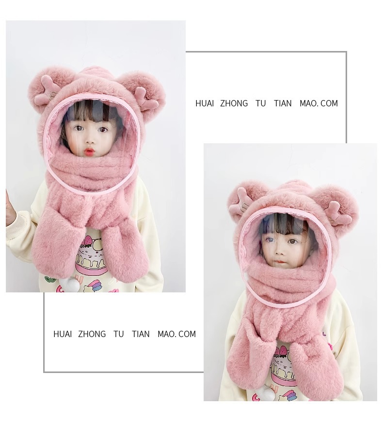 겨울 어린이 봉제 모자 보호 마스크 아기 야외 따뜻한 소년과 소녀 귀 보호 캡 통합 바람 모자스토어 가기