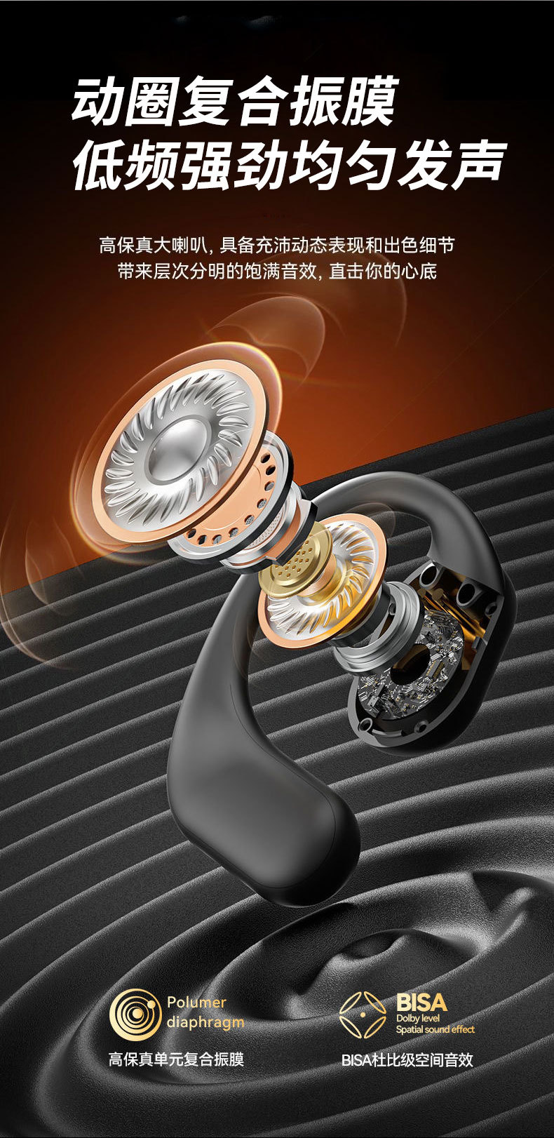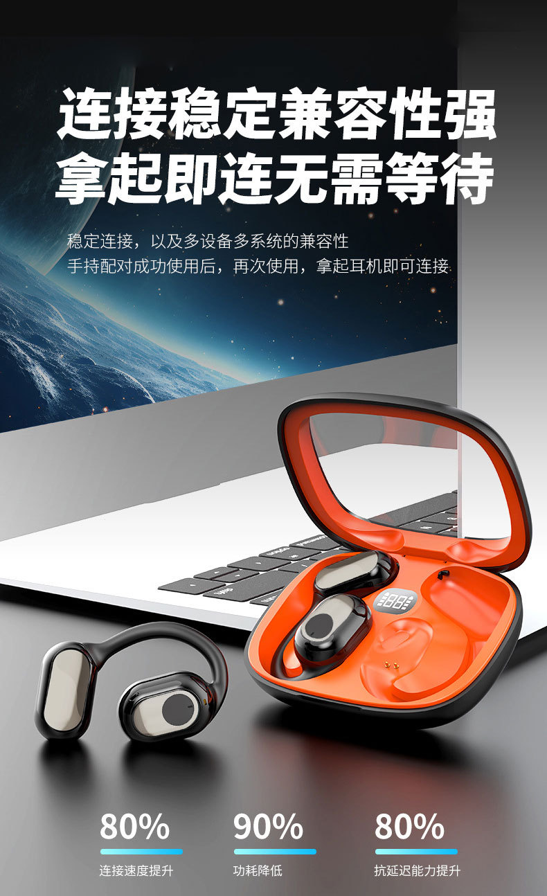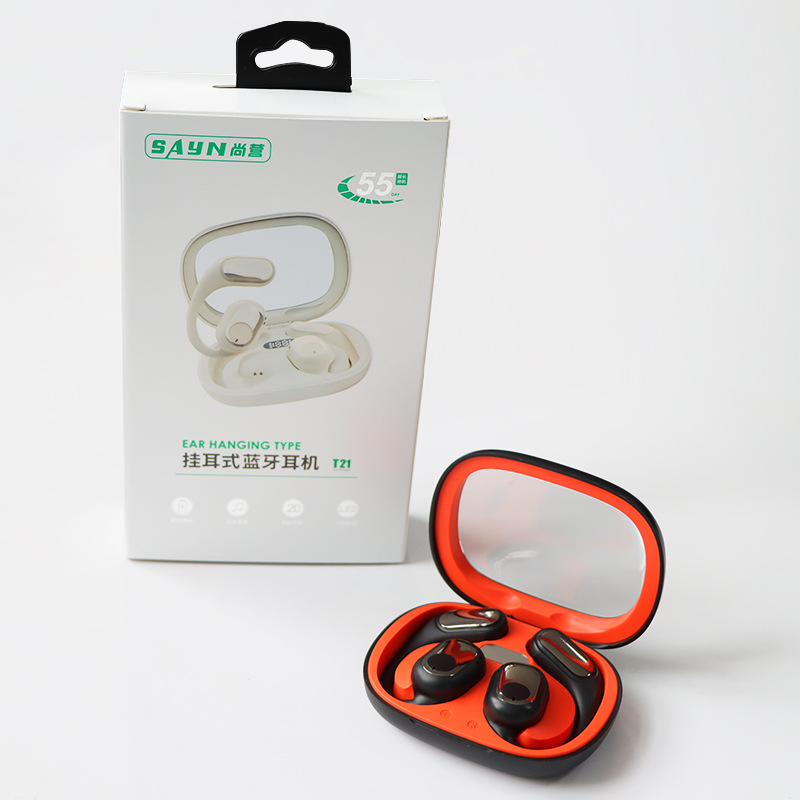 3 차원 투명한 공간 캡슐을 실행하는 새로운 귀 매달려 소음 감소 무선 블루투스 헤드셋 긴 내구성 스포츠