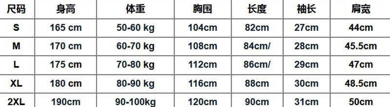 重量:S-170g,M-175g,L-180g,XL-185g,2XL-190g