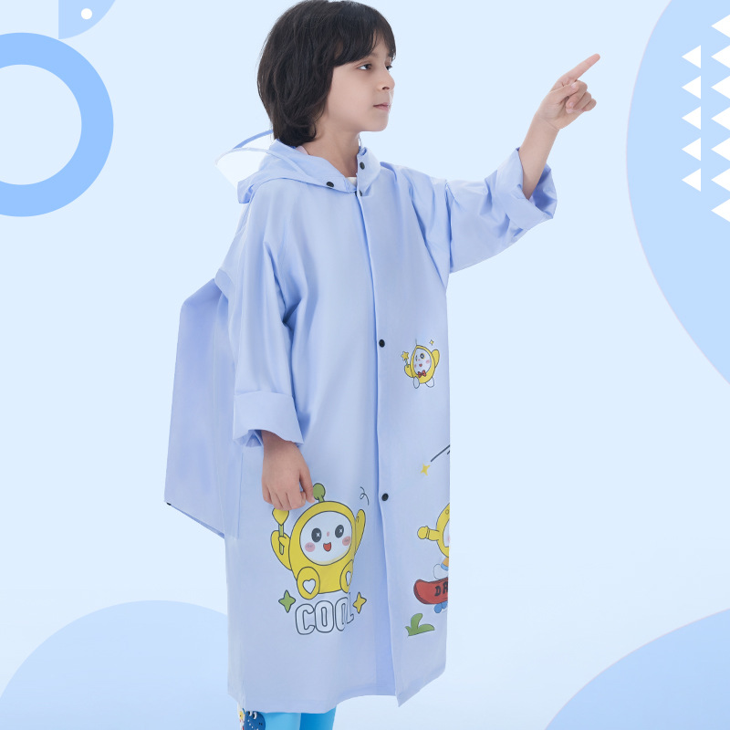 特点:透明大帽檐,立体书包位,带夜间安全条。扣子款无拉链。