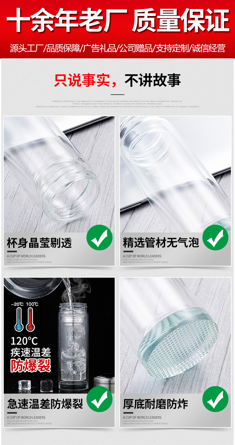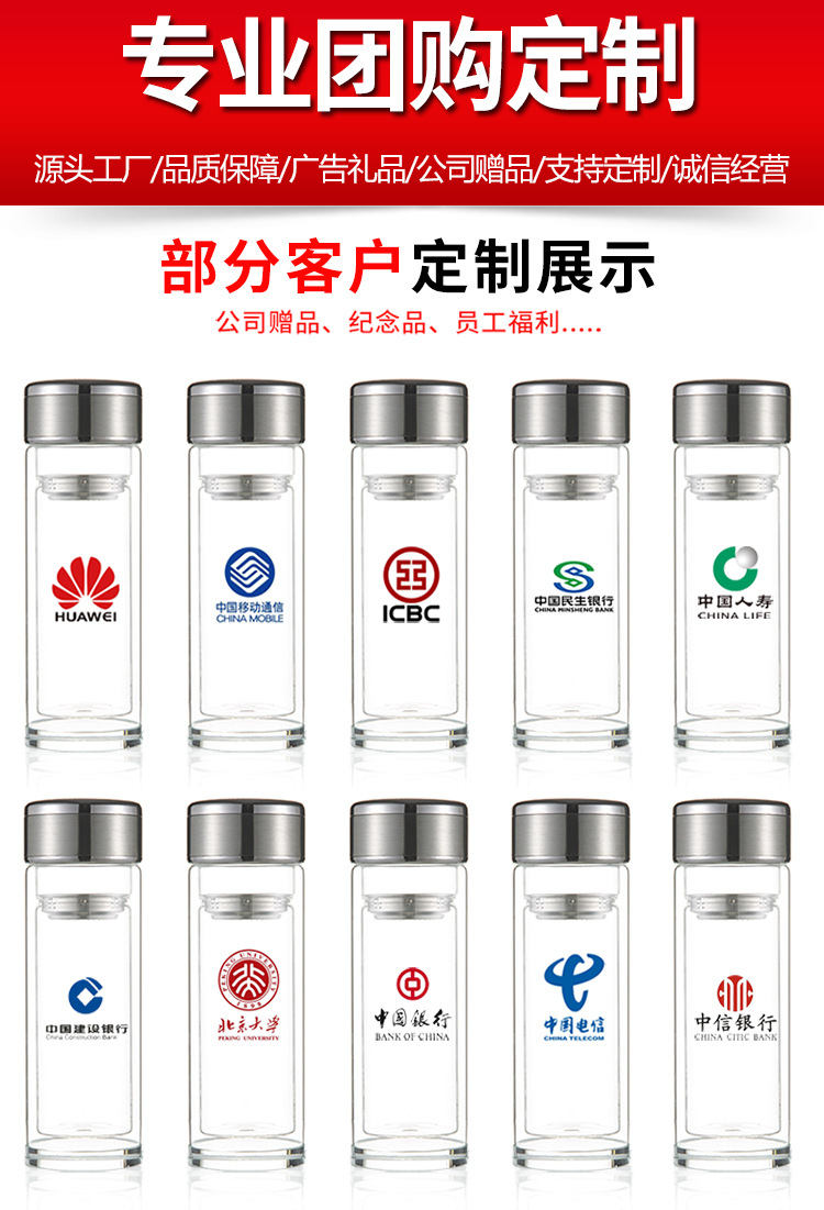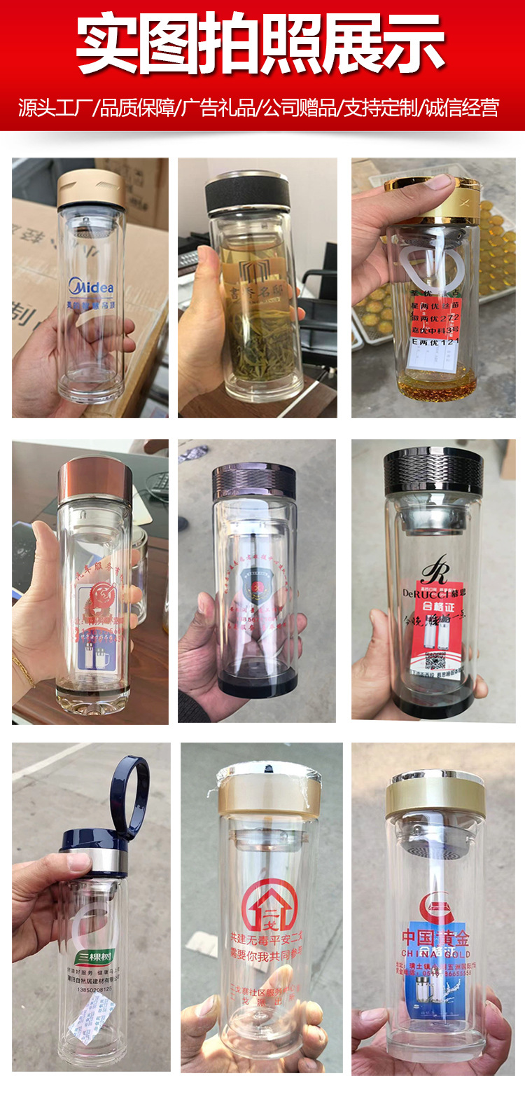 더블 레이어 유리 맞춤형 로고 레터링 인쇄 공장 도매 컵 인쇄 광고 컵 오프닝 활동 선물 컵