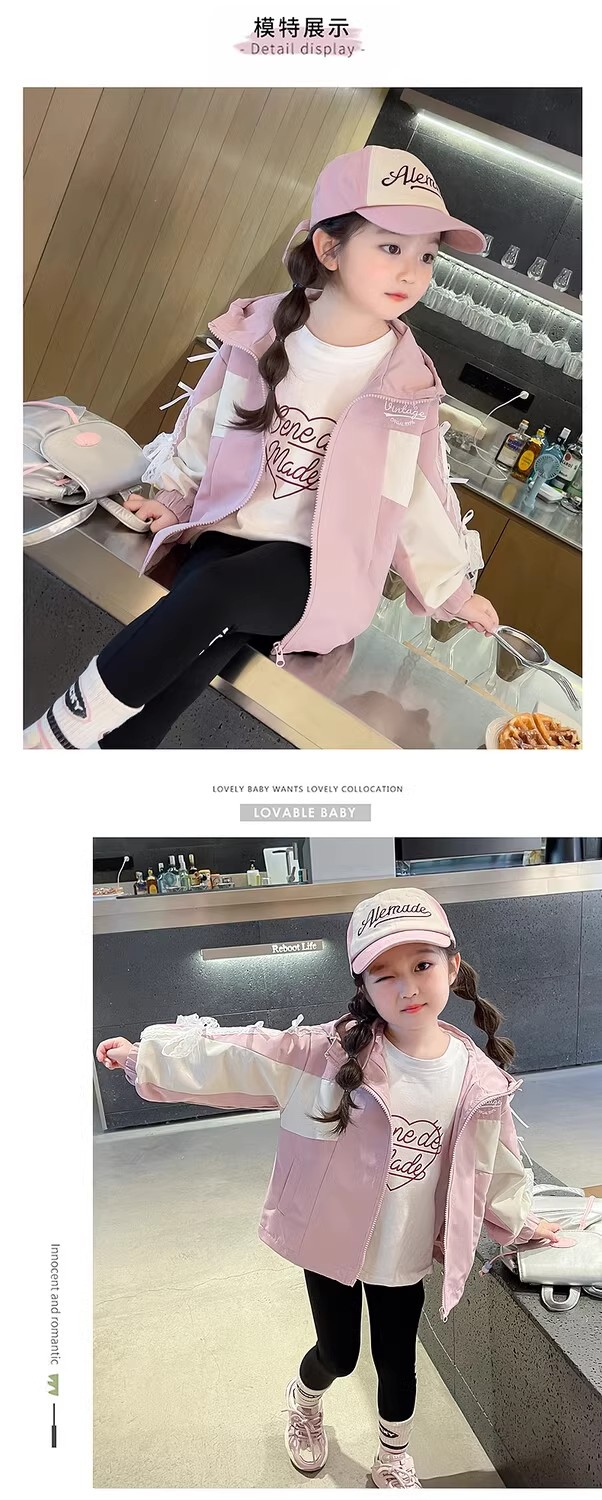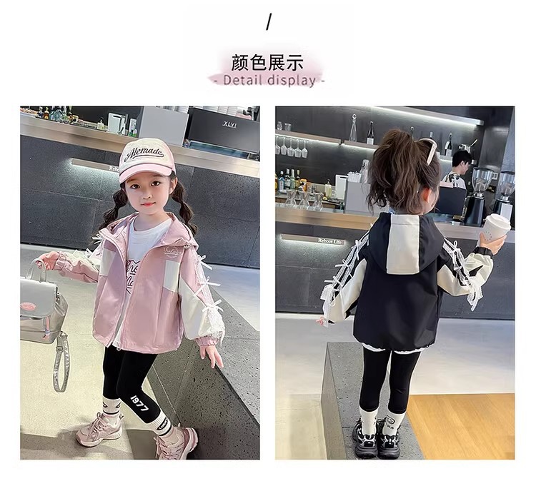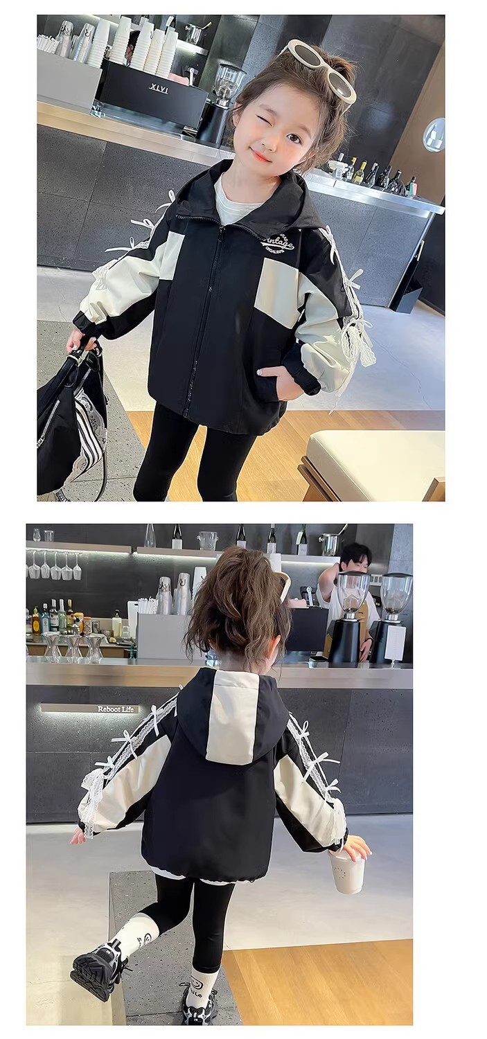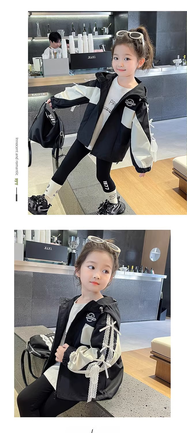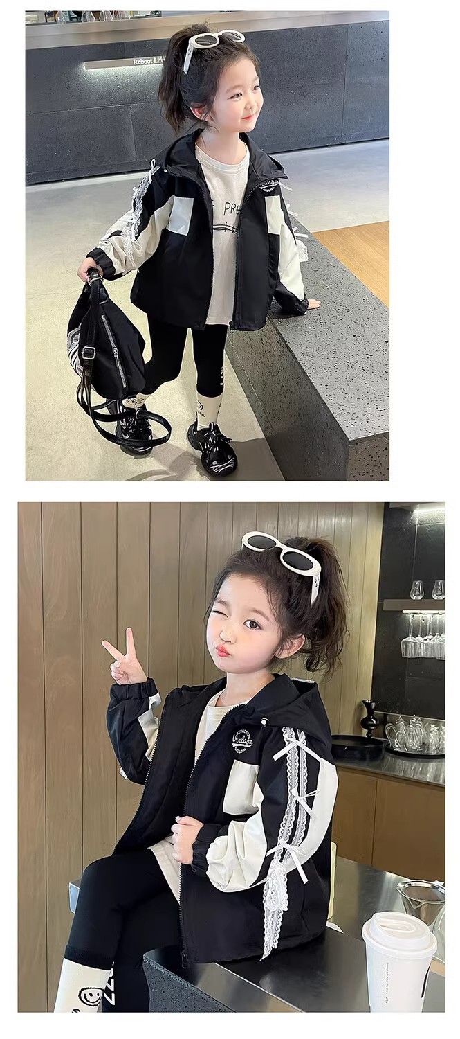 아기 레이스 소매 재킷, 중대형 어린이용 2024 컬러블록 여아 가을옷, 여아 의류, 캐주얼하고 다재다능함스토어 가기