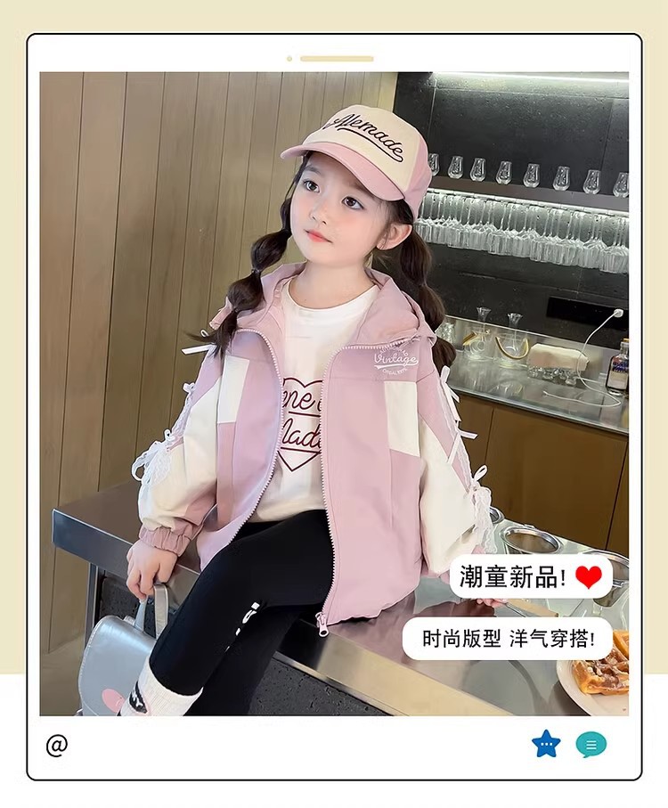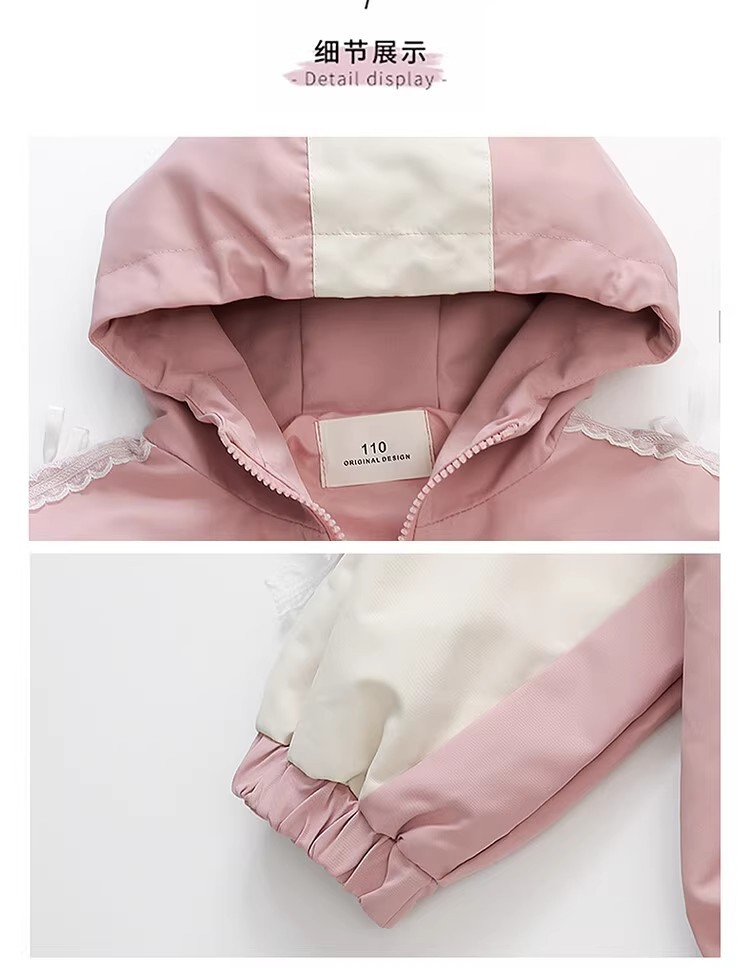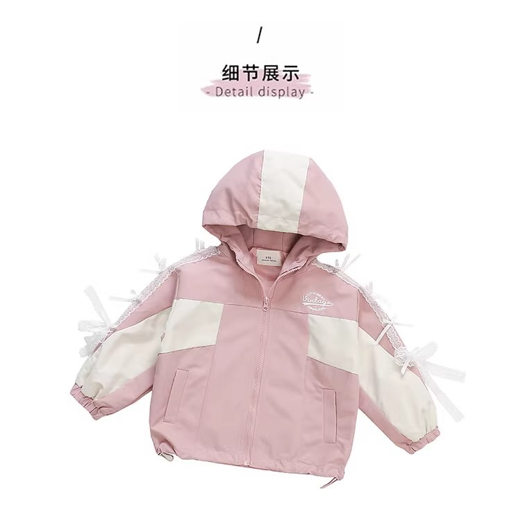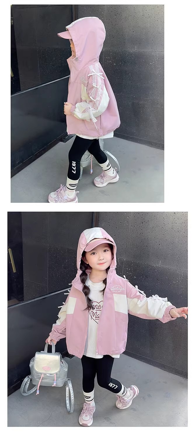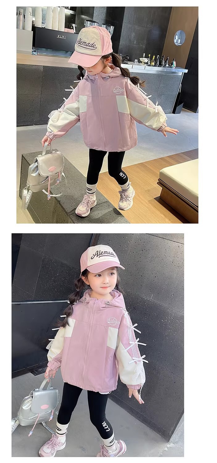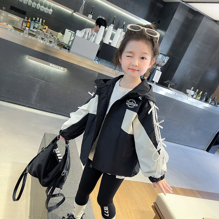 아기 레이스 소매 재킷, 중대형 어린이용 2024 컬러블록 여아 가을옷, 여아 의류, 캐주얼하고 다재다능함스토어 가기