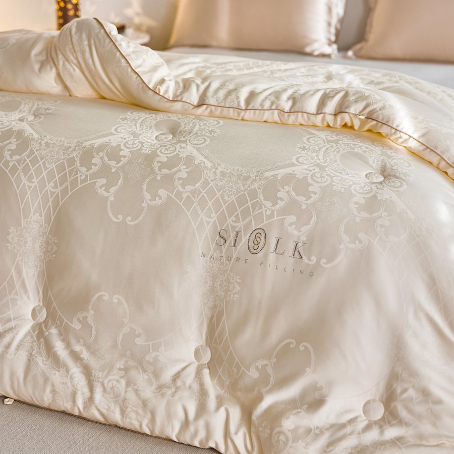 높은 럭셔리 뽕나무 실크 콩 섬유 퀼트 코어 가구 두 사람 봄과 가을 이불 유럽 스타일 자카드 두꺼운 겨울 이불 코어스토어 가기