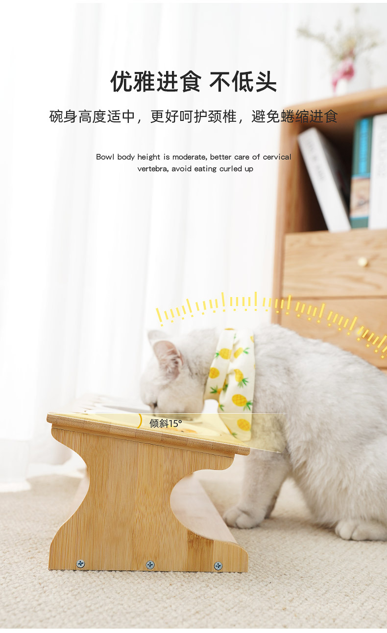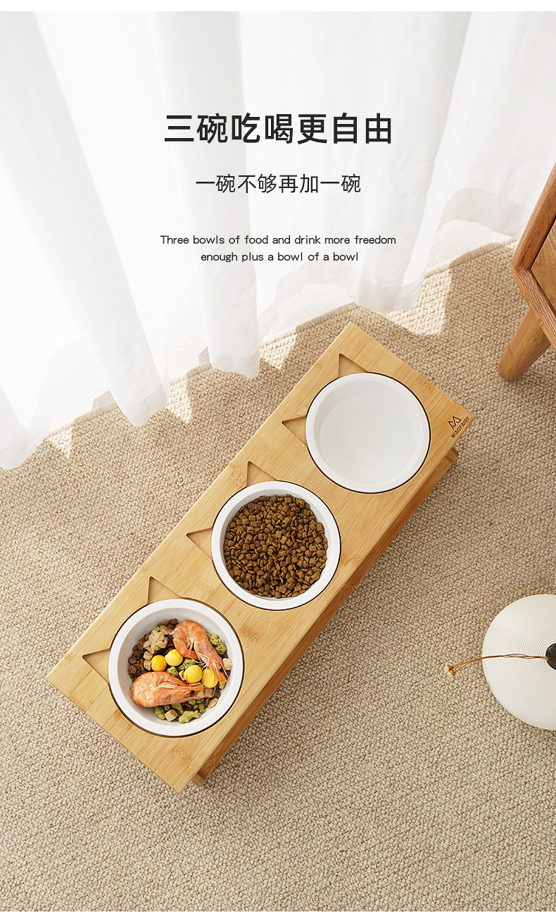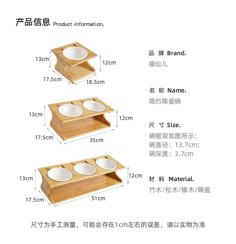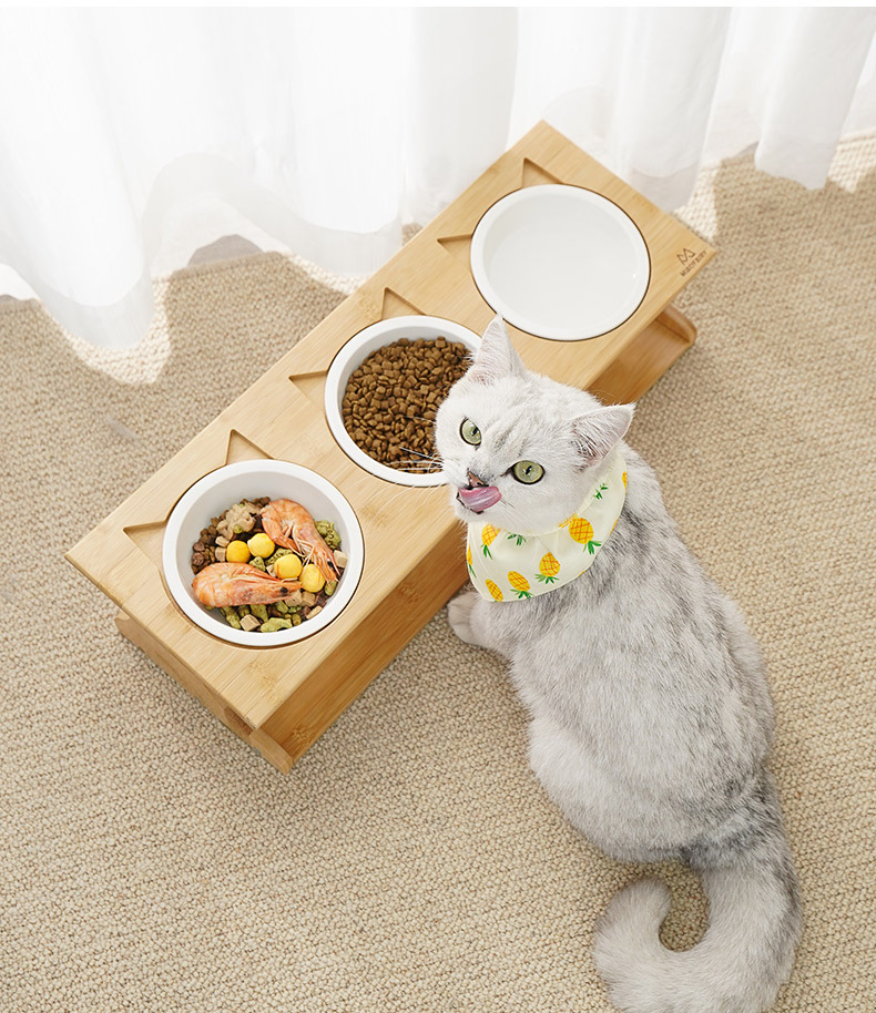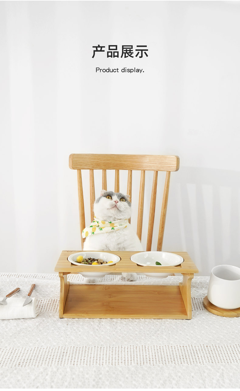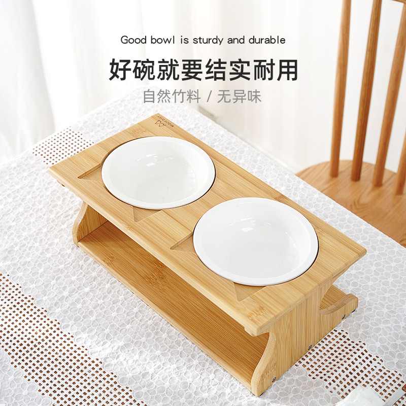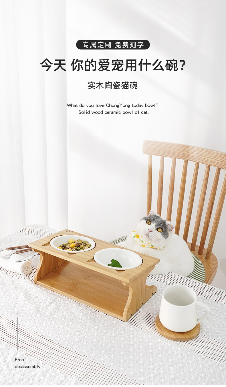 야옹 요정 고양이 그릇 더블 볼 솔리드 우드 세라믹 보호 자궁 경부 베르 테브라 입 쌀 분지 반대로 뒤집는 그릇 랙 애완 동물 식사 테이블 개 그릇스토어 가기
