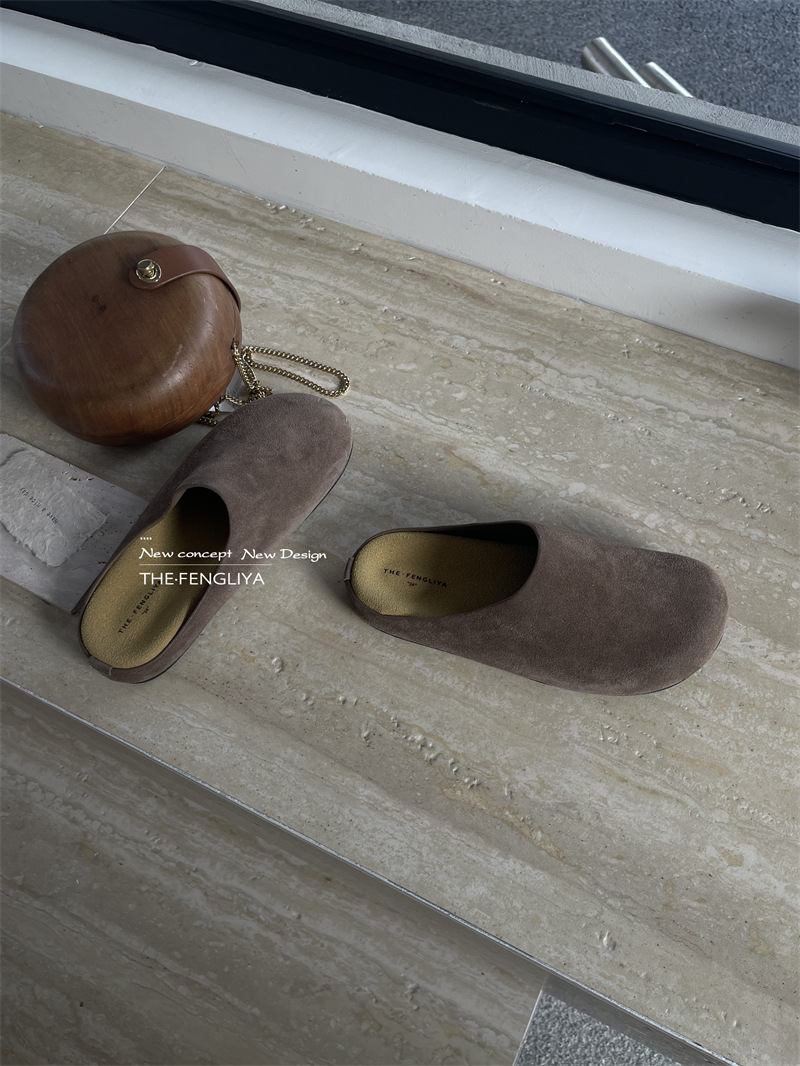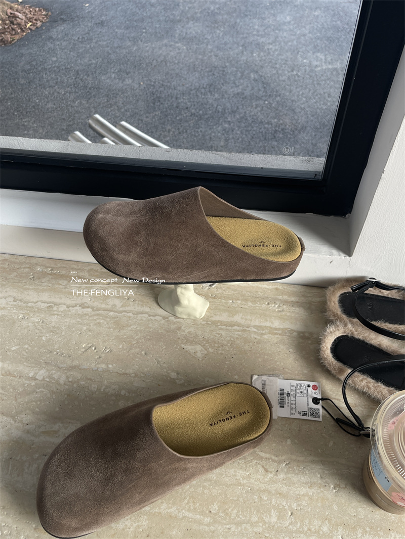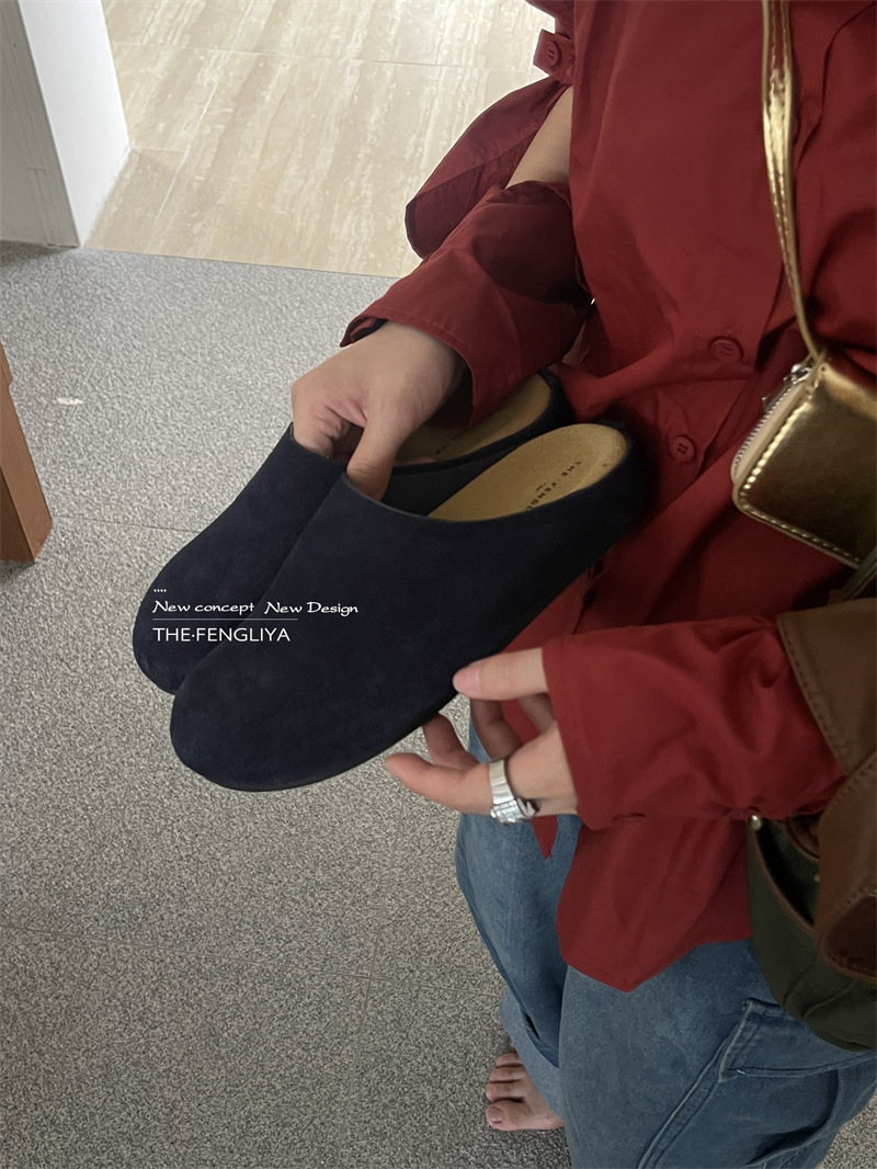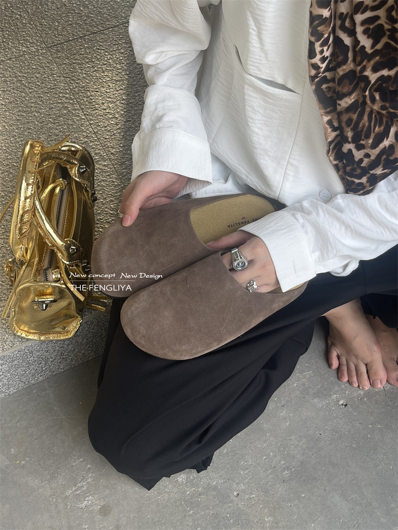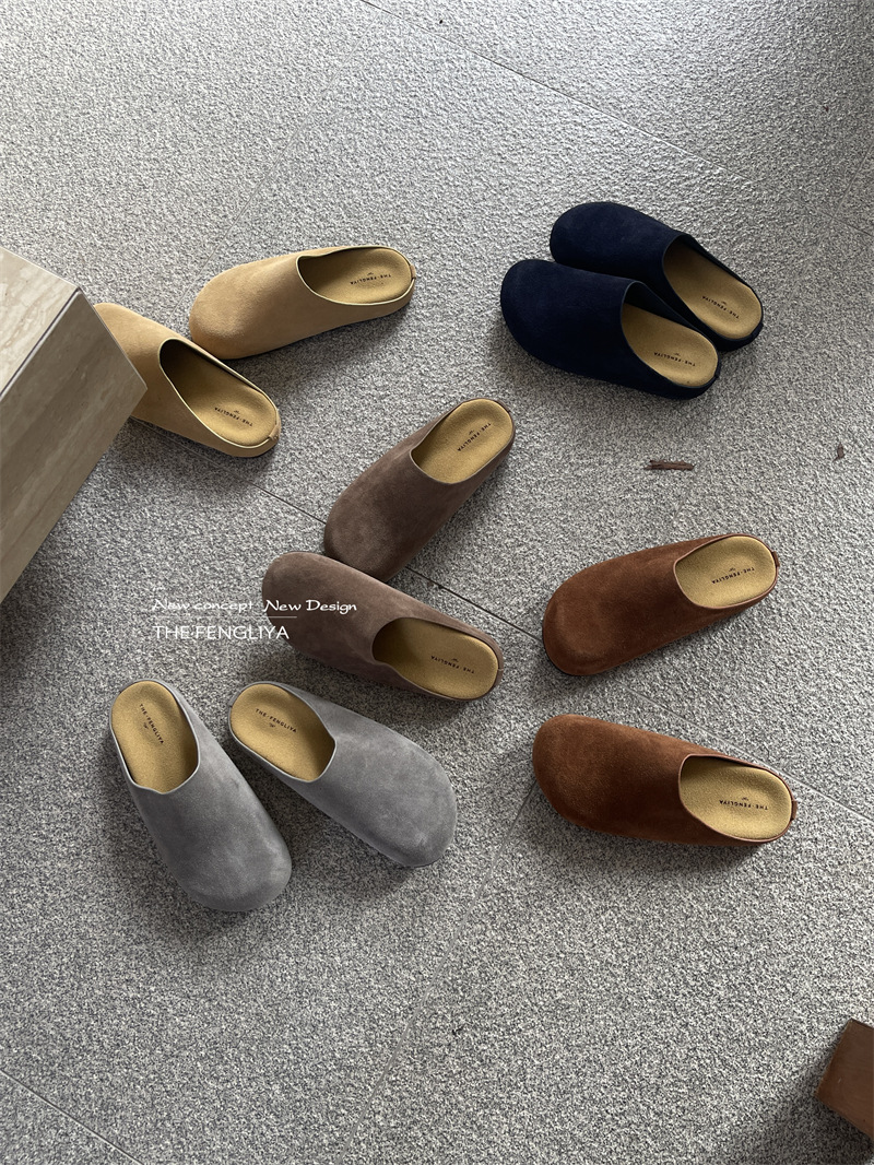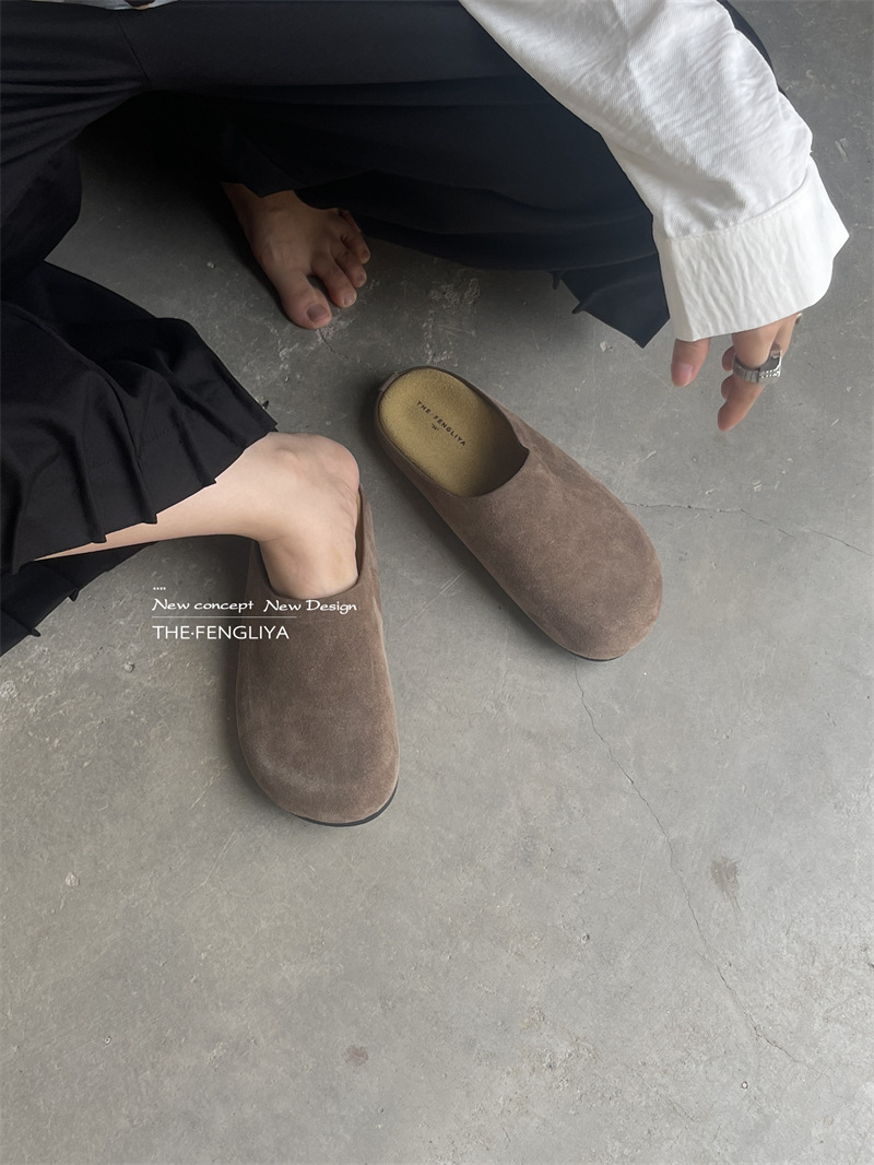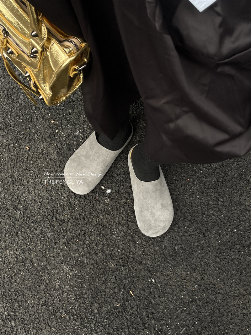 2024 년 가을 새로운 정품 가죽 Cowhide 외장을위한 두꺼운 밑창 편안한 반 슬리퍼 여성용 올 매치 슬립 인 버켄 네스 신발스토어 가기