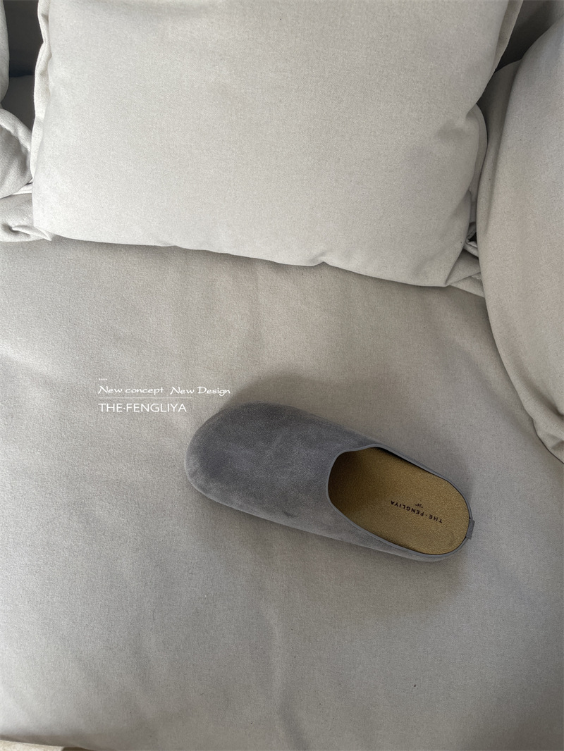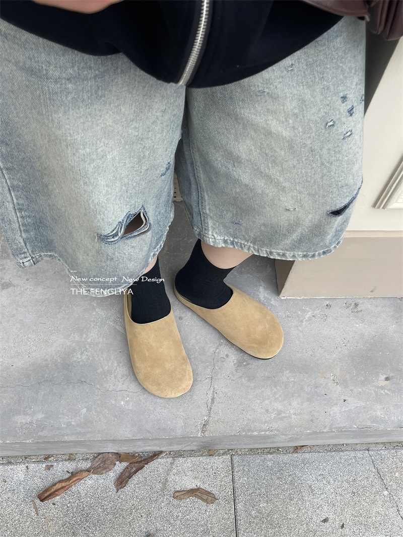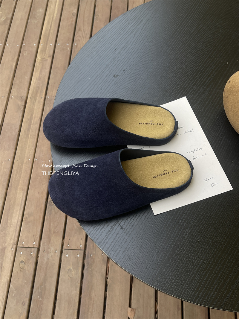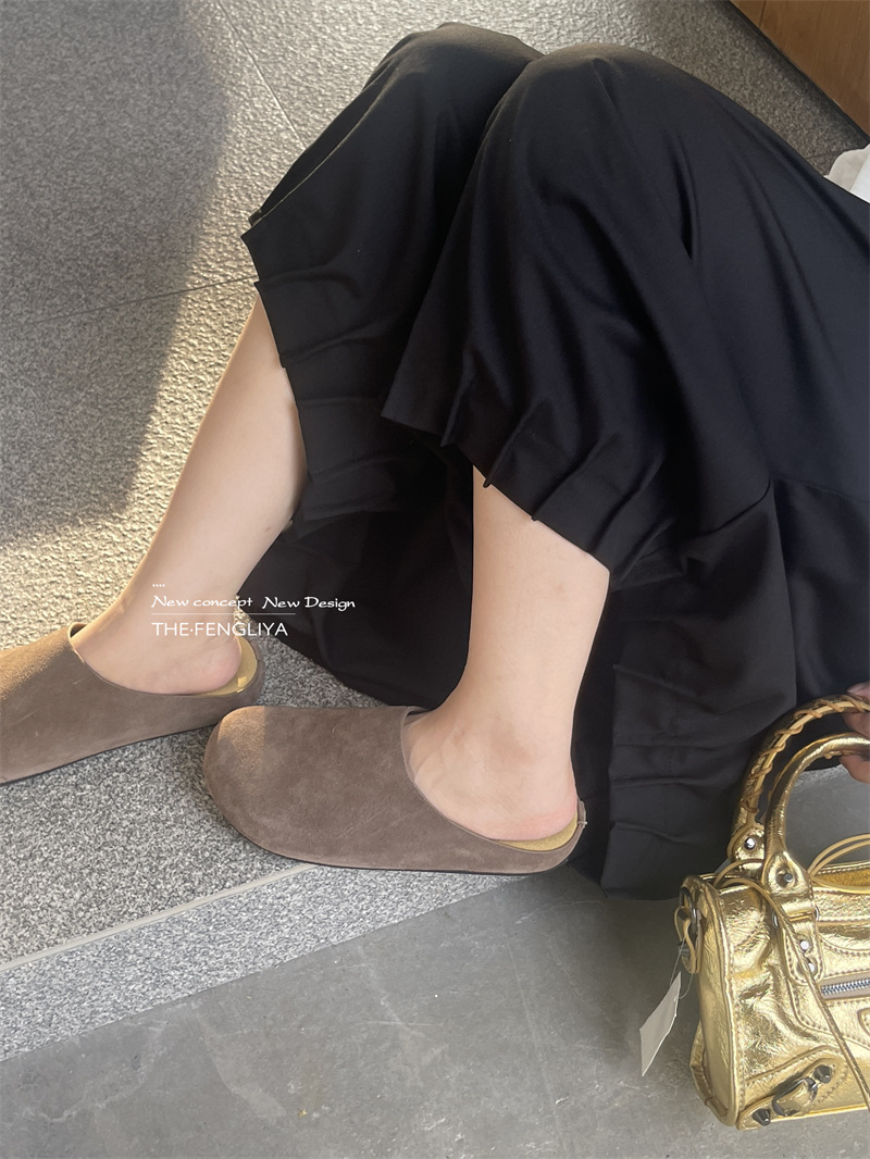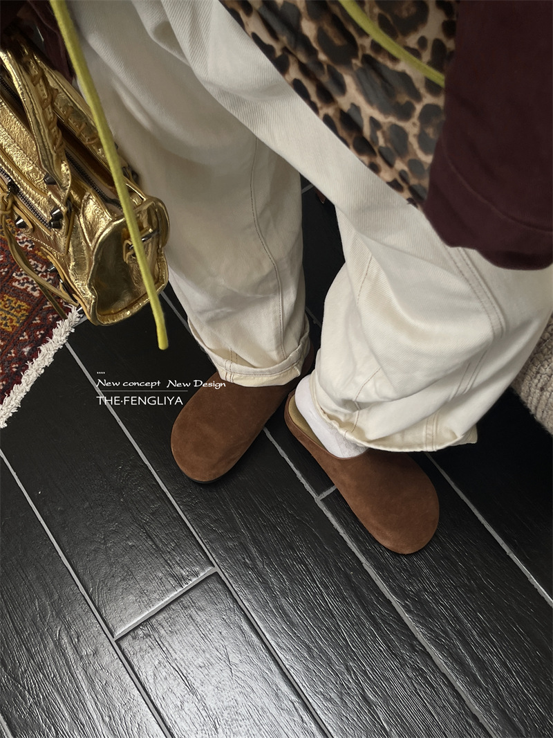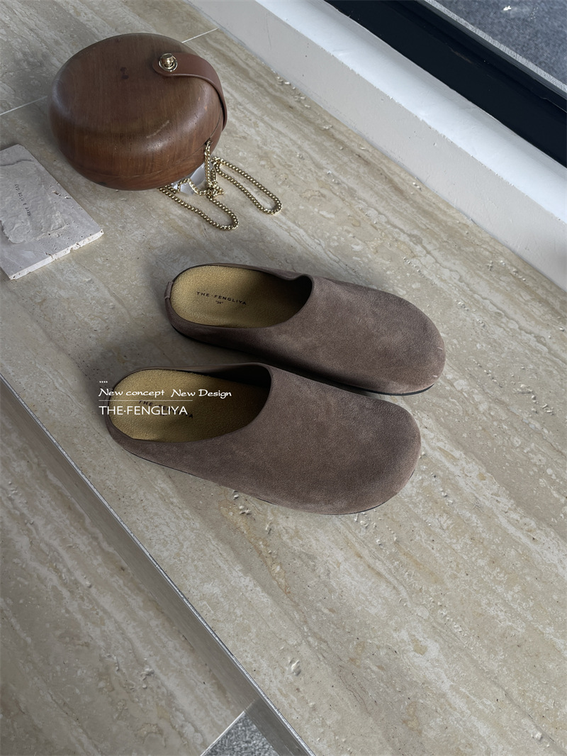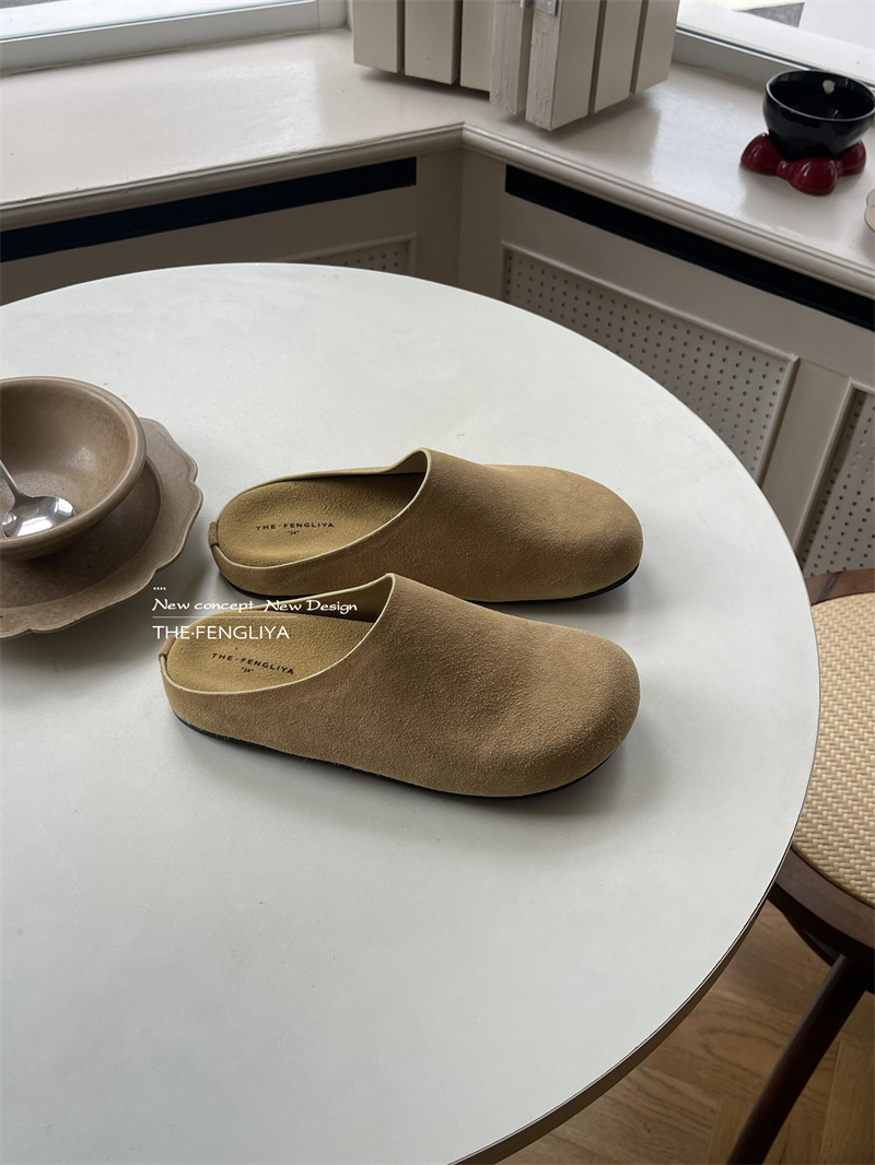 2024 년 가을 새로운 정품 가죽 Cowhide 외장을위한 두꺼운 밑창 편안한 반 슬리퍼 여성용 올 매치 슬립 인 버켄 네스 신발스토어 가기