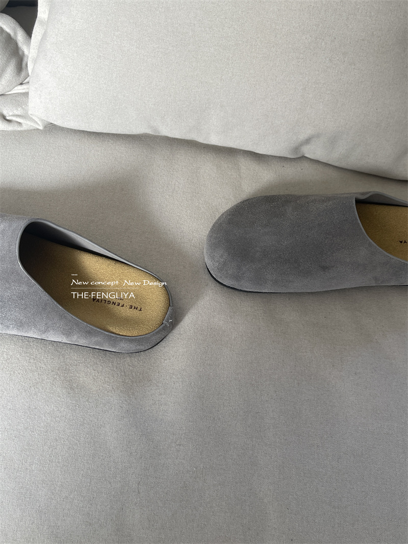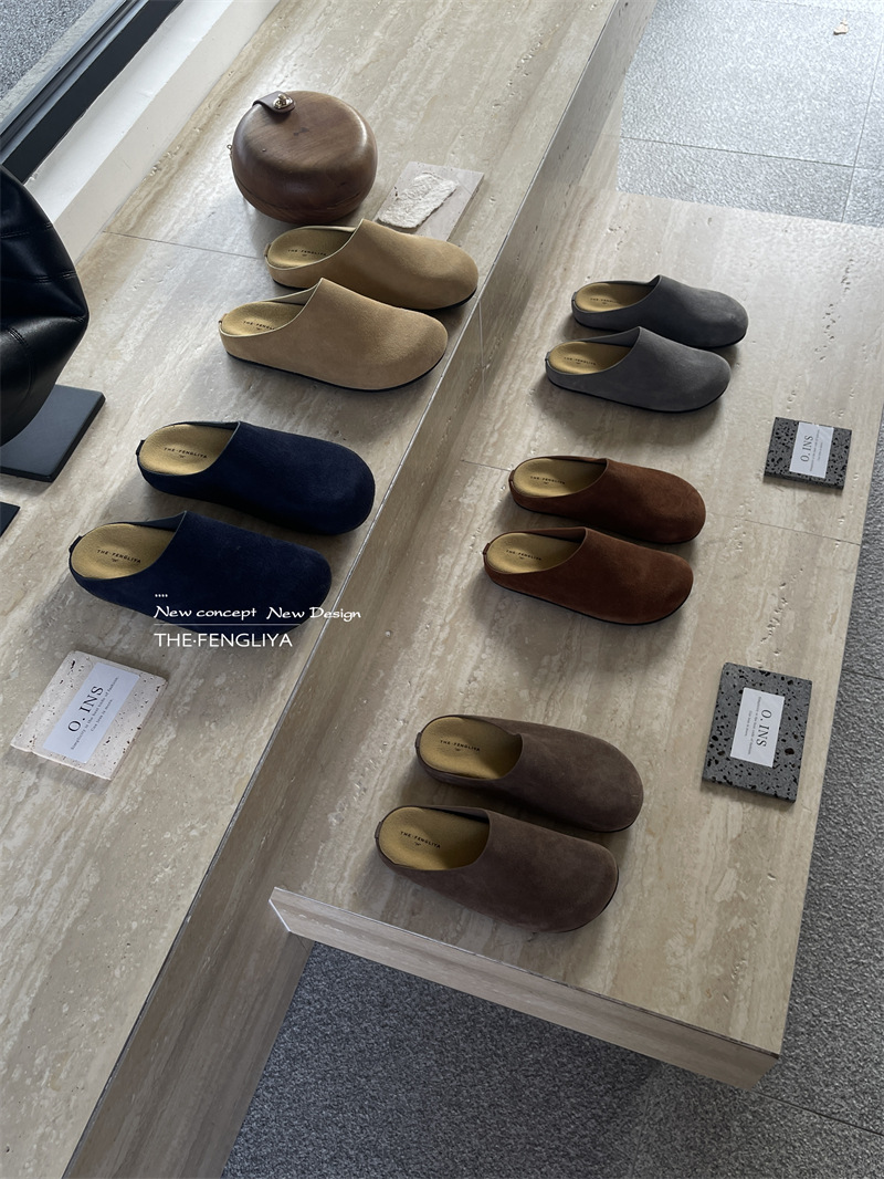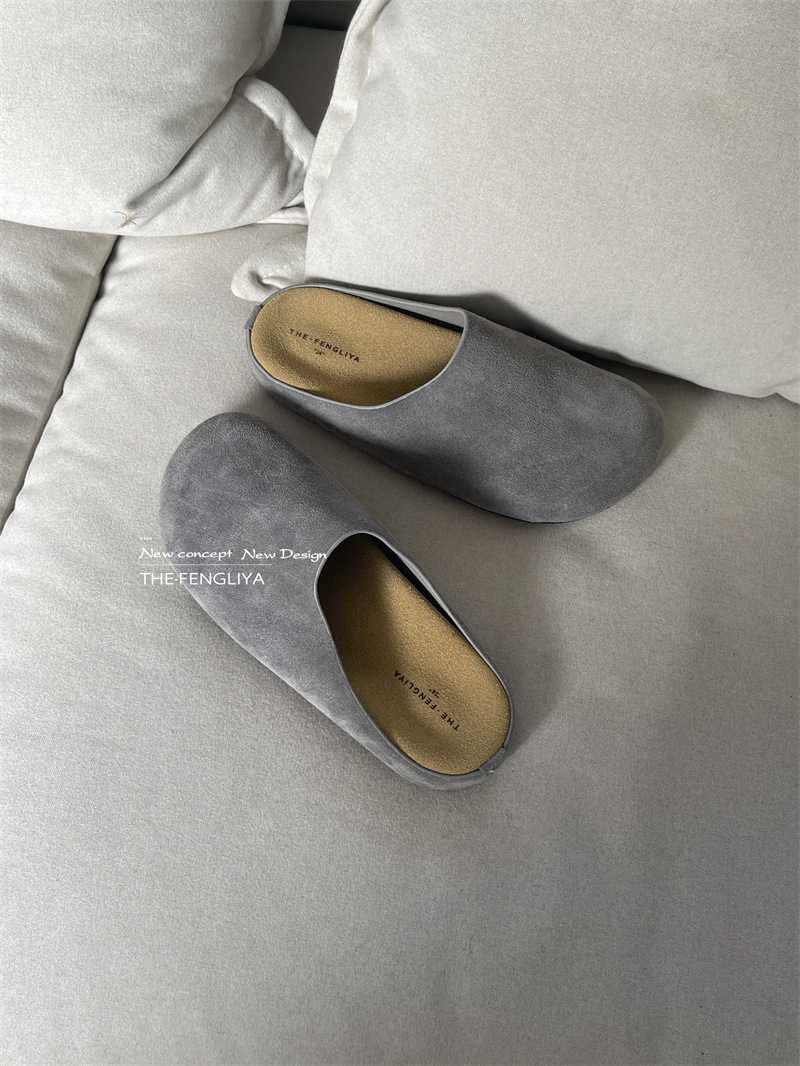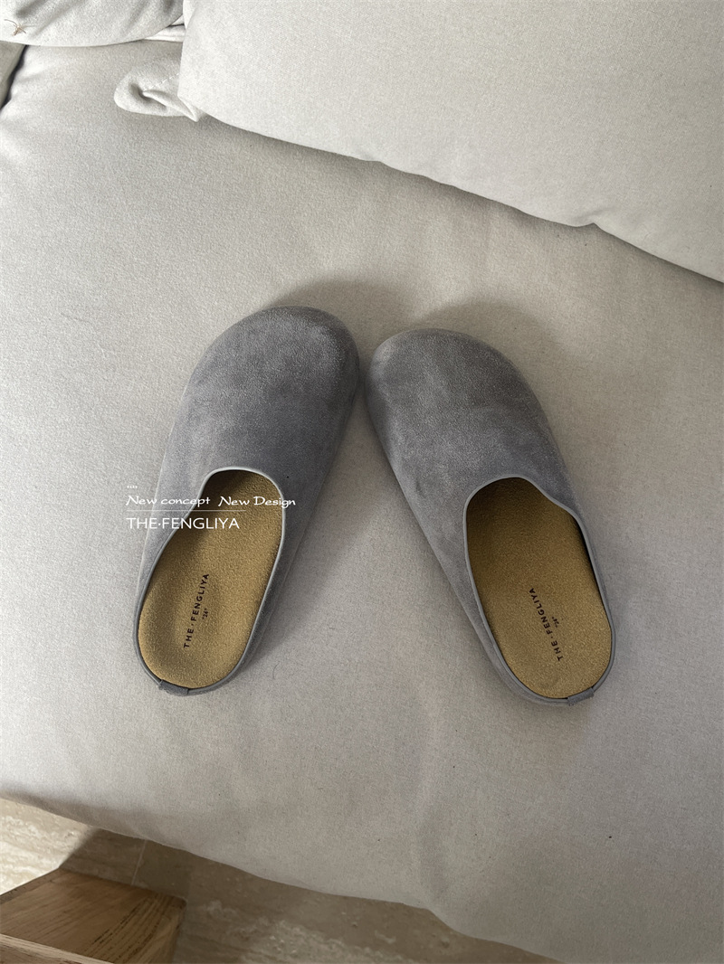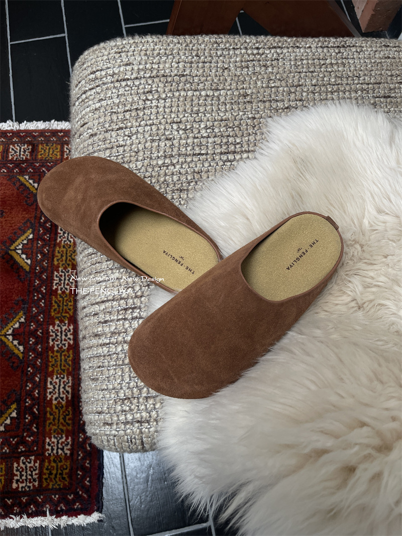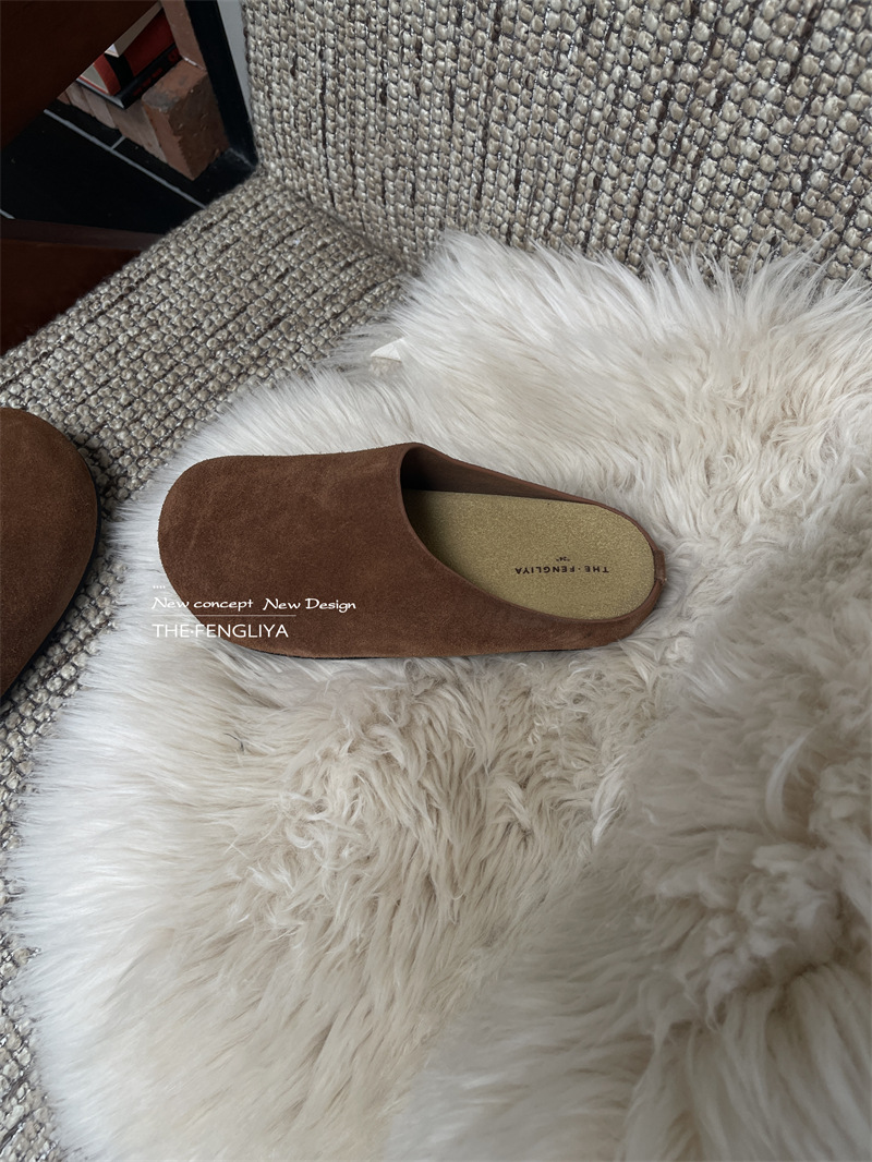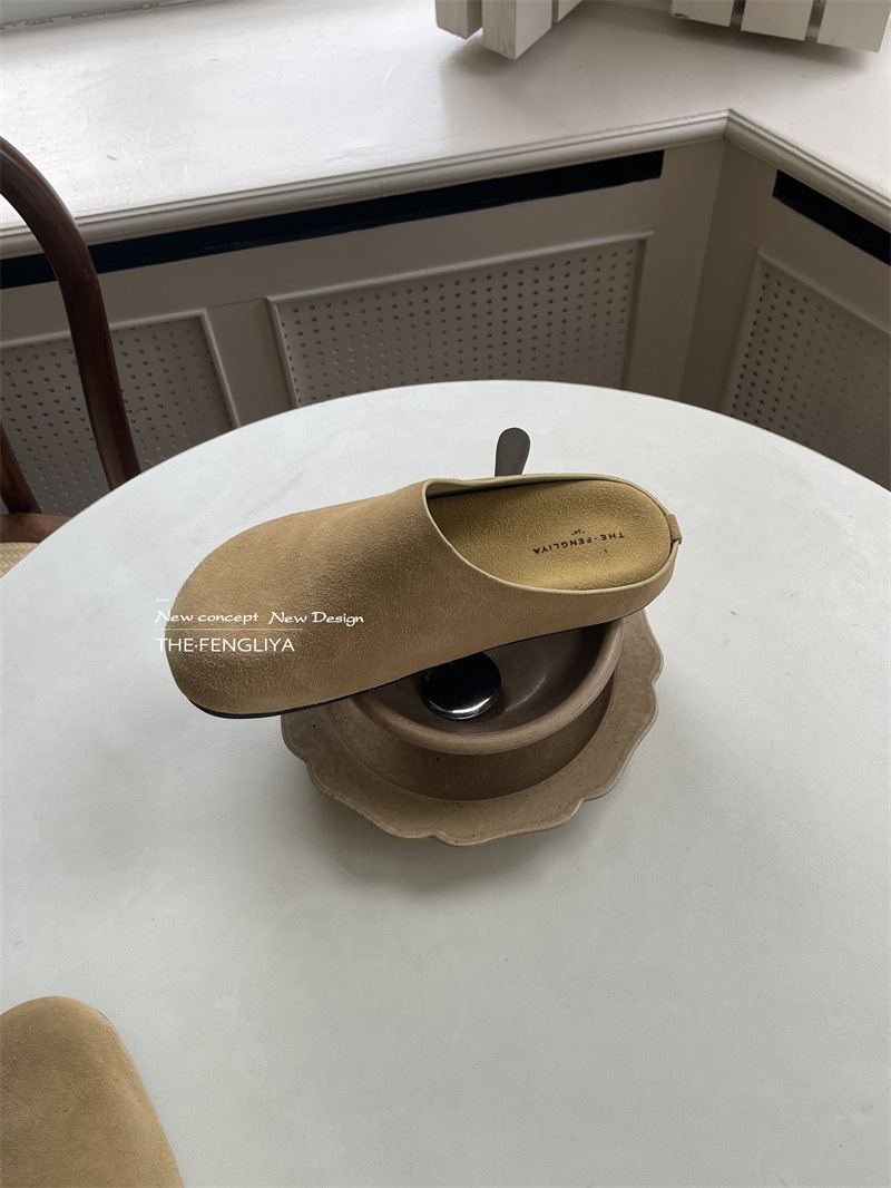 2024 년 가을 새로운 정품 가죽 Cowhide 외장을위한 두꺼운 밑창 편안한 반 슬리퍼 여성용 올 매치 슬립 인 버켄 네스 신발스토어 가기