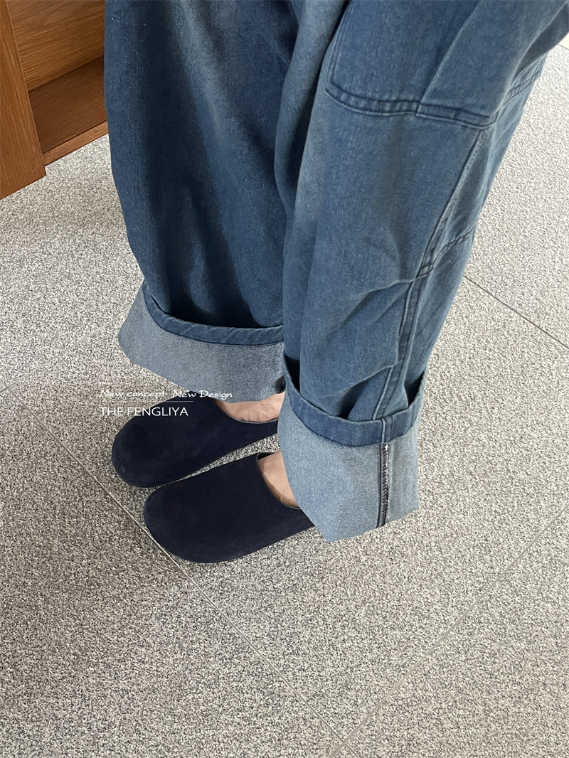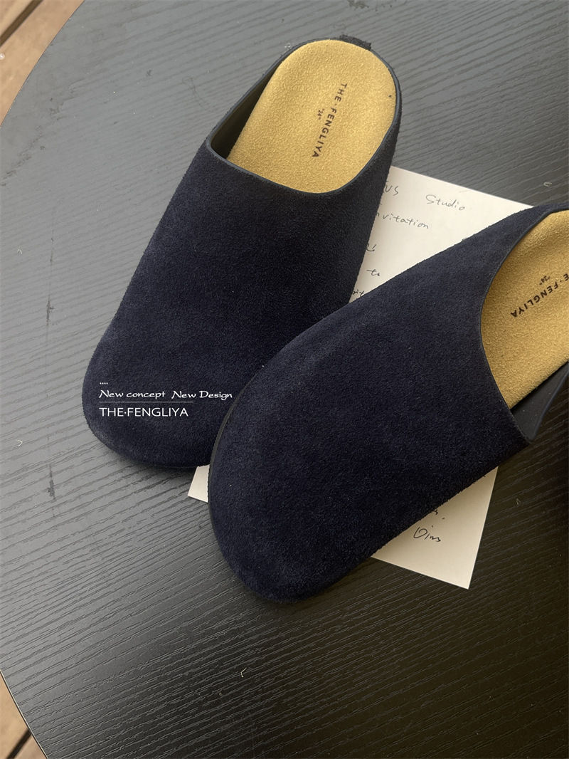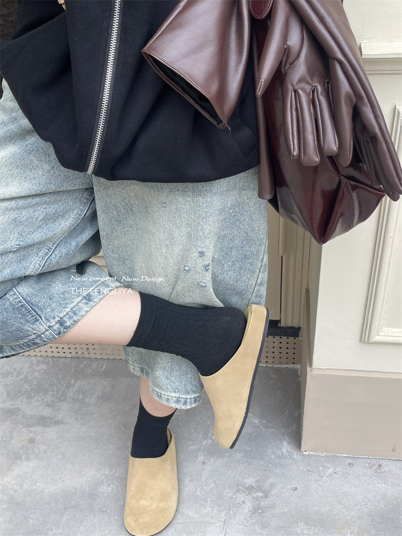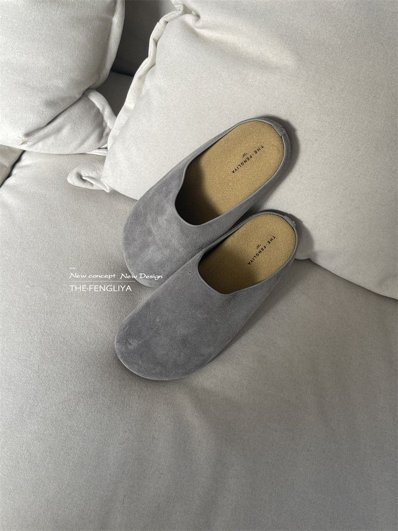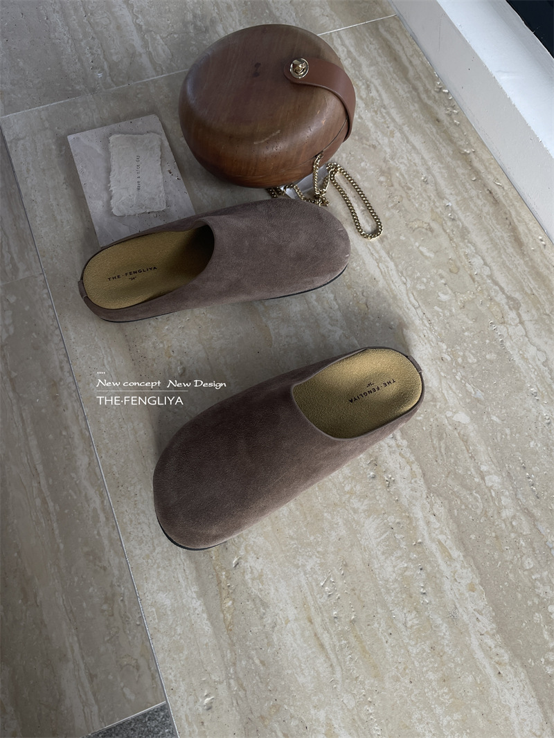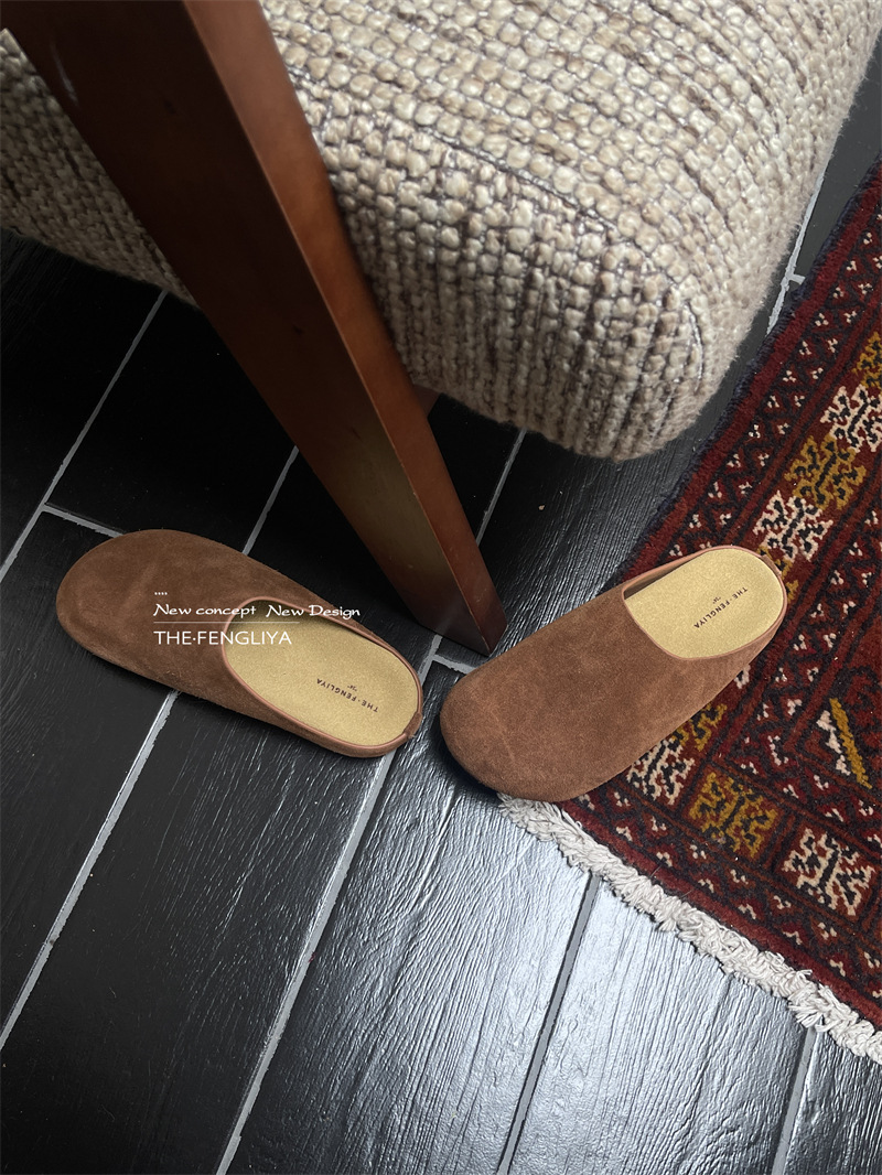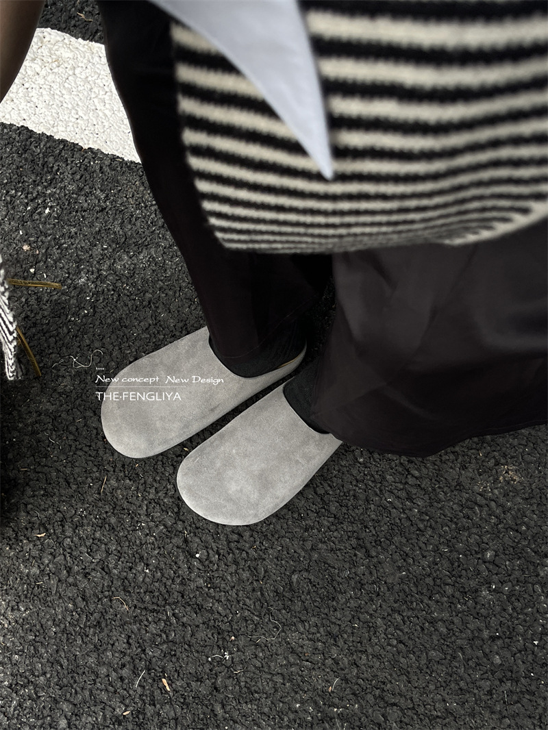 2024 년 가을 새로운 정품 가죽 Cowhide 외장을위한 두꺼운 밑창 편안한 반 슬리퍼 여성용 올 매치 슬립 인 버켄 네스 신발스토어 가기