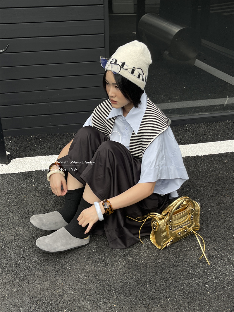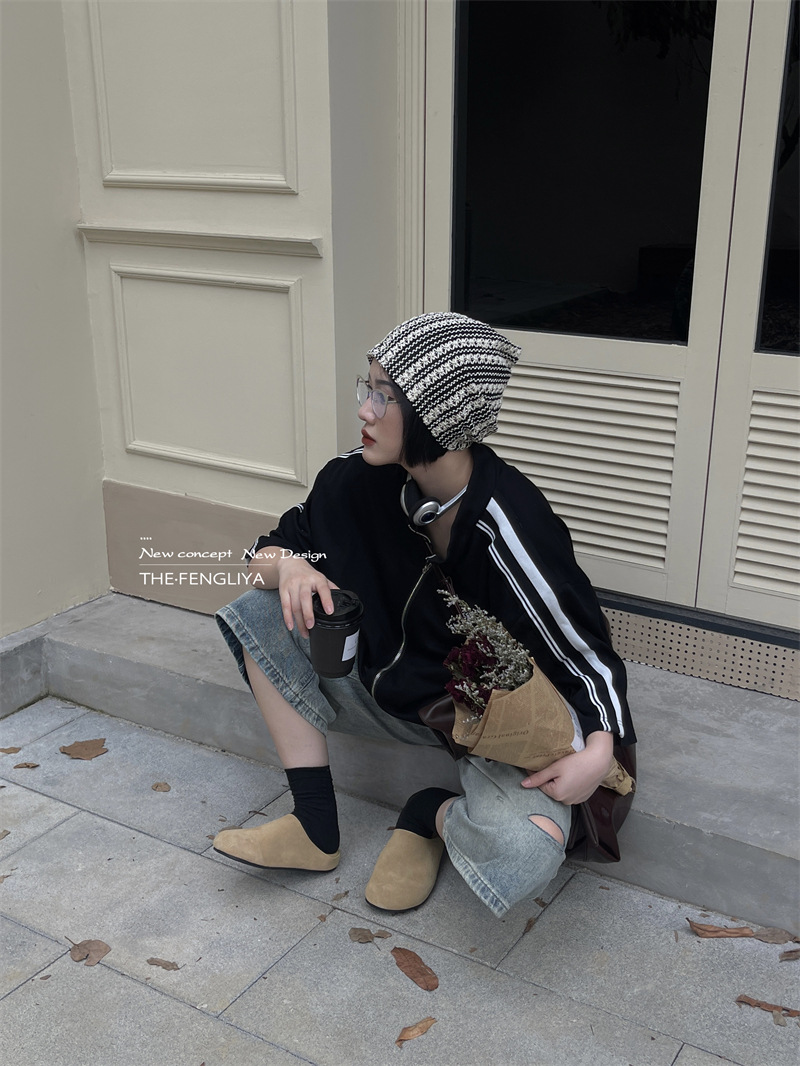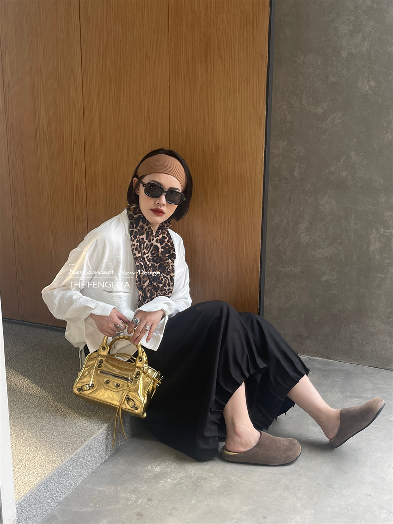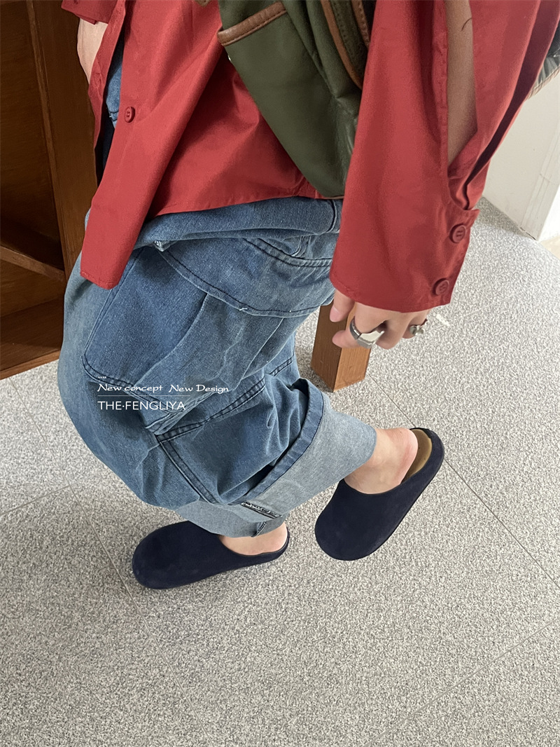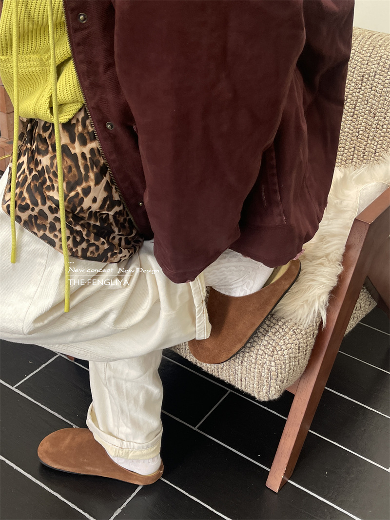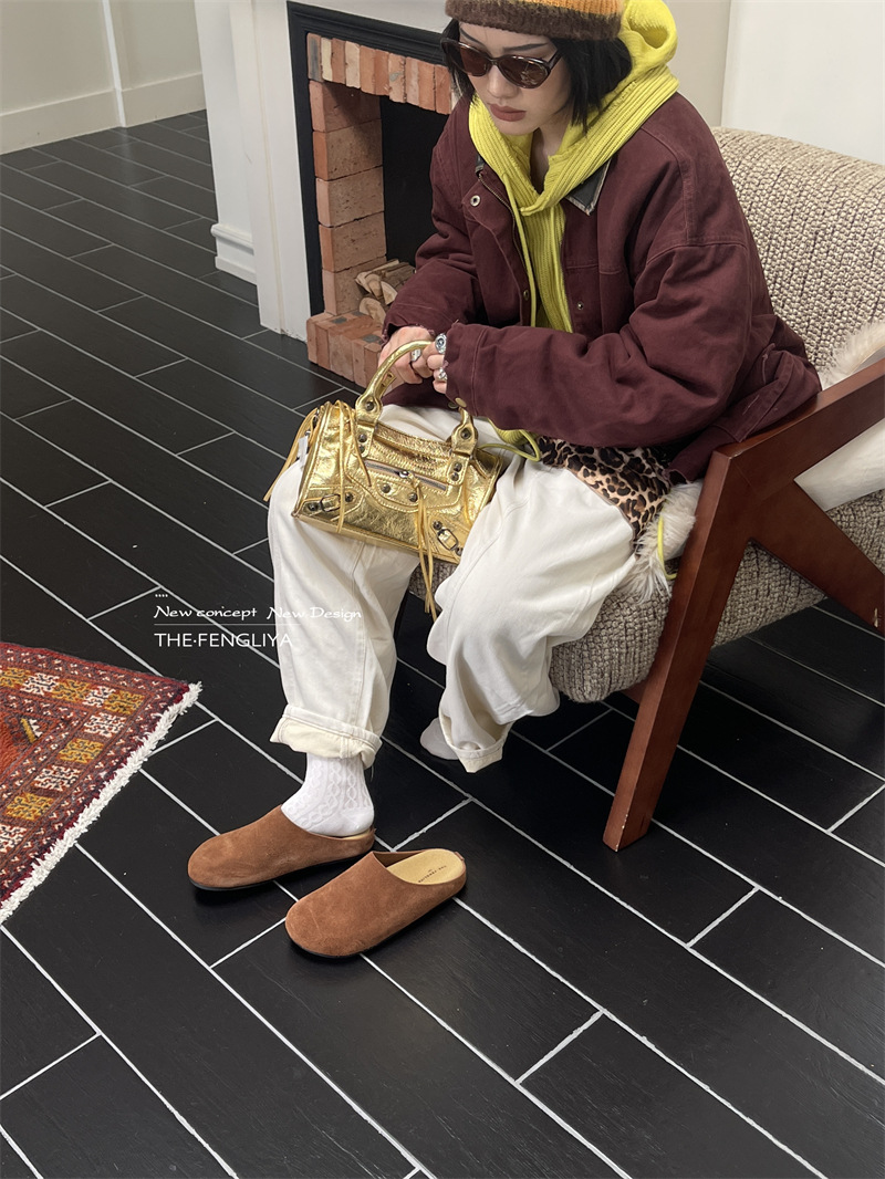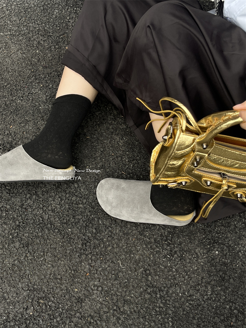 2024 년 가을 새로운 정품 가죽 Cowhide 외장을위한 두꺼운 밑창 편안한 반 슬리퍼 여성용 올 매치 슬립 인 버켄 네스 신발스토어 가기