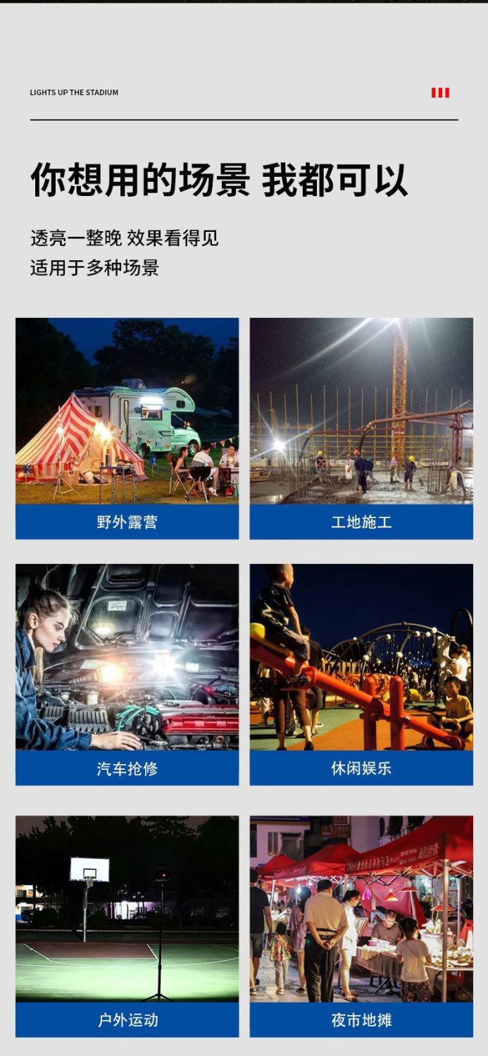 2024 새로운 무선 사이트 조명 충전 야외 비상 투광 조명 프로젝트 건설 야외 강한 빛 슈퍼 밝은 손스토어 가기