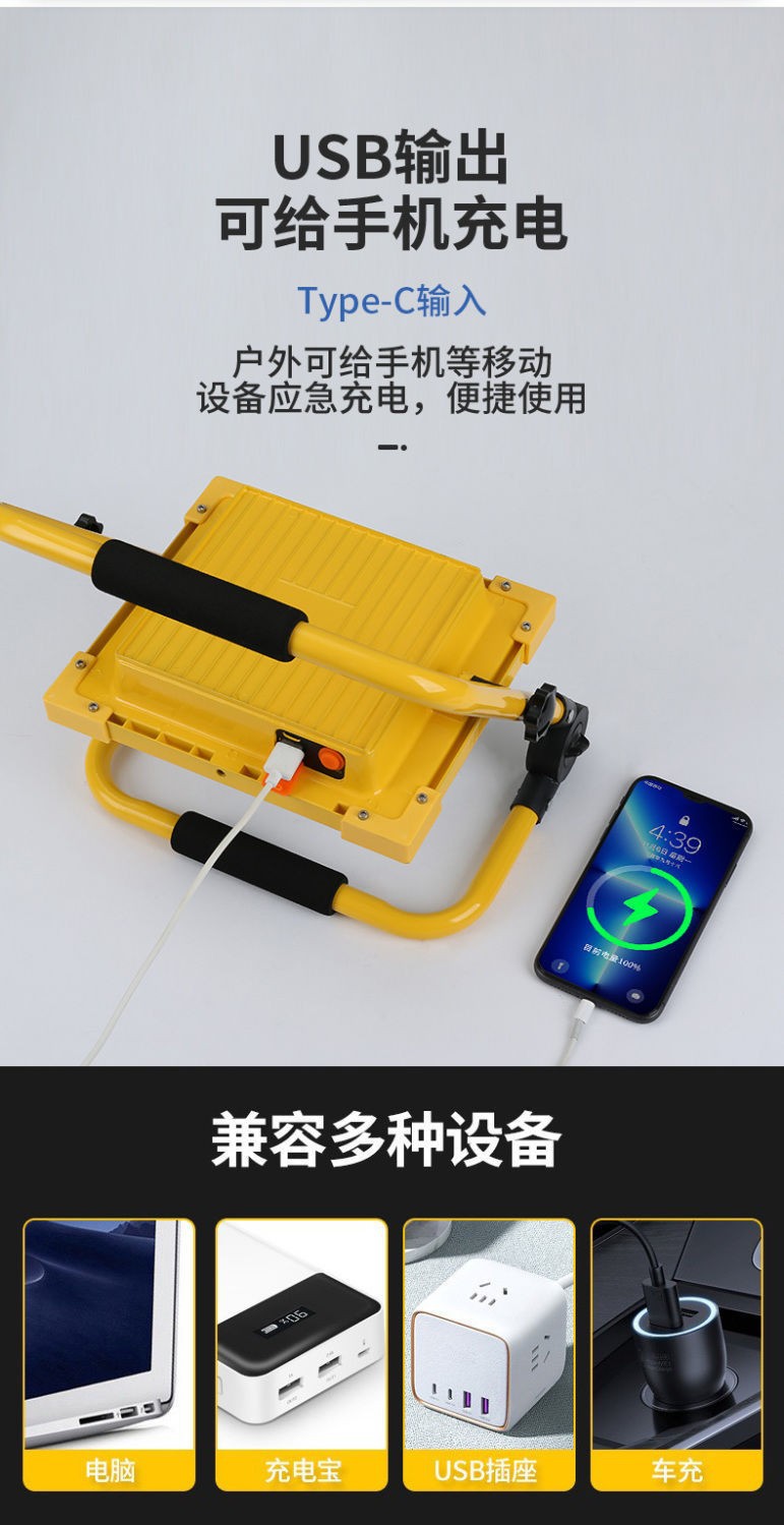 2024 새로운 무선 사이트 조명 충전 야외 비상 투광 조명 프로젝트 건설 야외 강한 빛 슈퍼 밝은 손