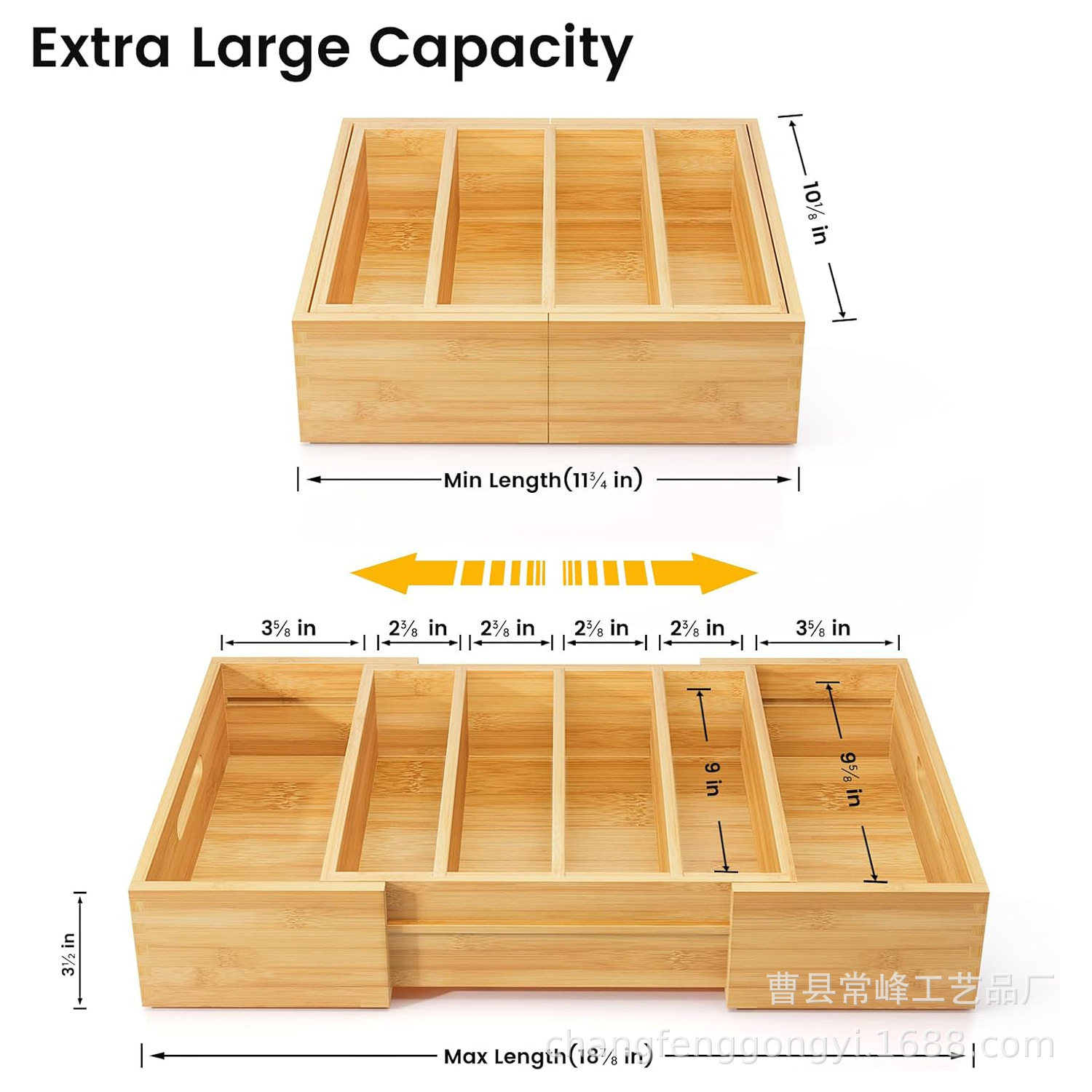 확장 가능한 대나무 뚜껑 보관 상자 주방 캐비닛 식품 용기 플라스틱 뚜껑 3 개의 조절 가능한 파티션 저장 랙스토어 가기
