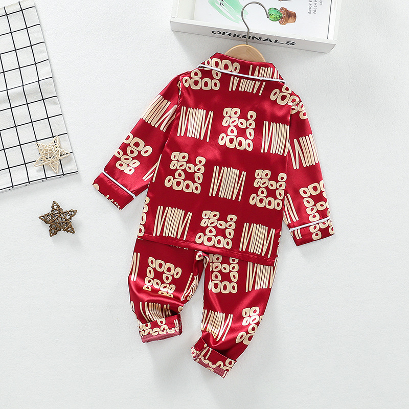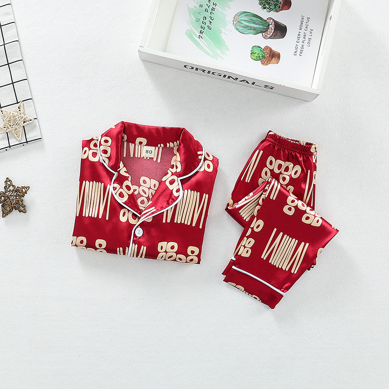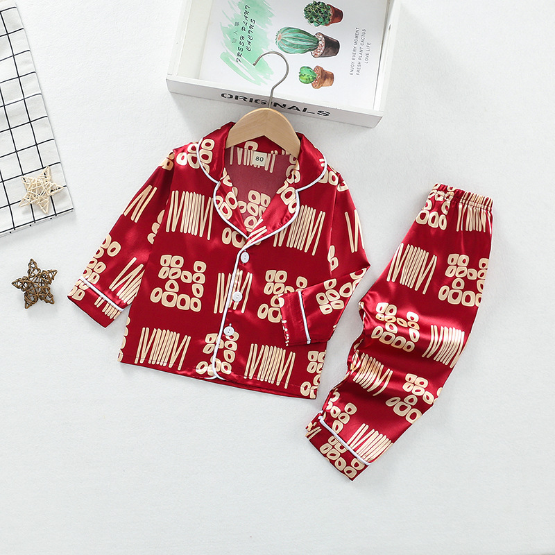봄과 가을 여름 어린이 긴팔 바지 아이스 실크 파자마 대형, 중형 및 소형 소년 소녀 캐주얼 홈 웨어 얇은 세트