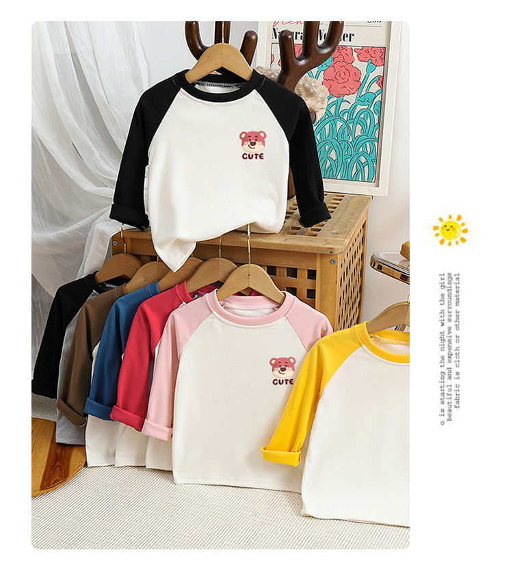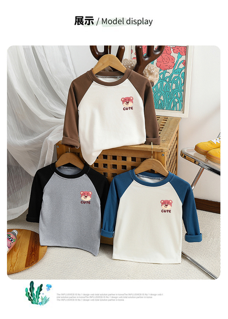 어린이 긴팔 티셔츠 만화 곰 넝마 둥근 목 소년 소녀 아기 한국 가을 꼭대기 셔츠 아동복스토어 가기