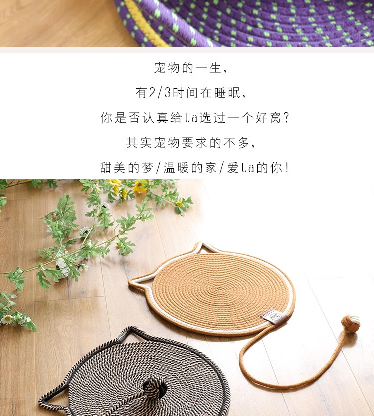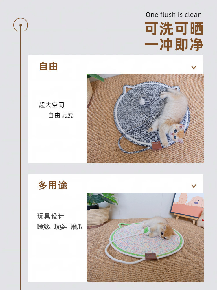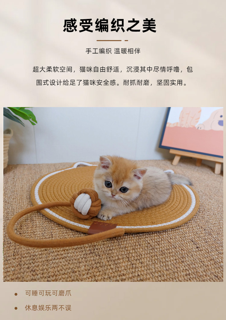 애완 고양이 스크래쳐, 고양이 둥지, 일체형 수면 매트, 사이잘 고양이 발톱갈이, 흘러내림 없는 땋은 고양이 발톱 매트, 고양이 전용스토어 가기