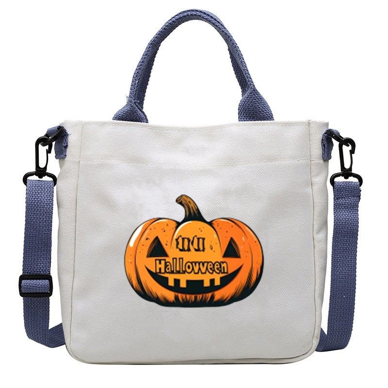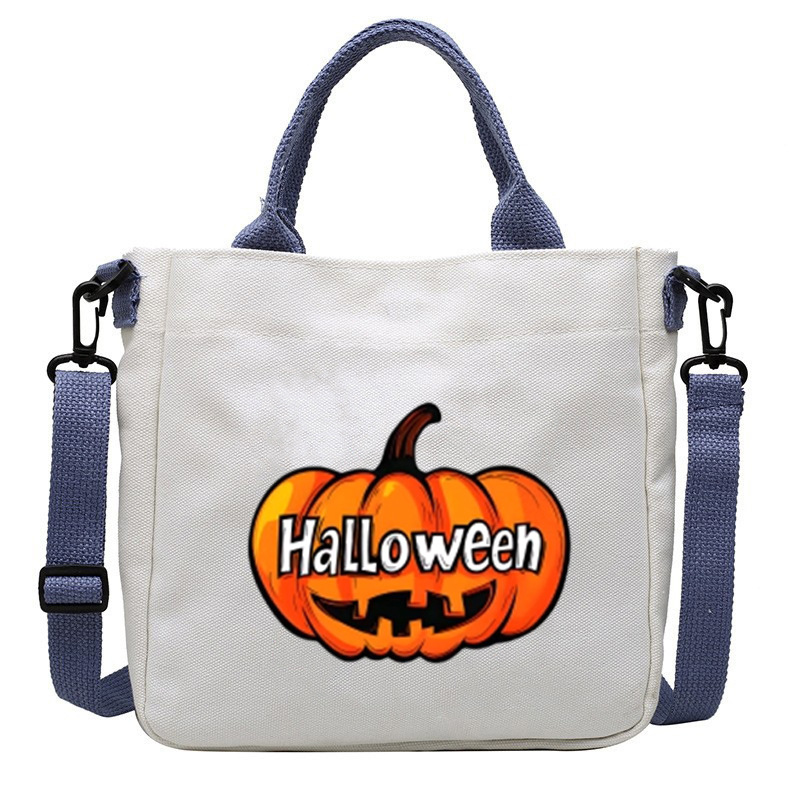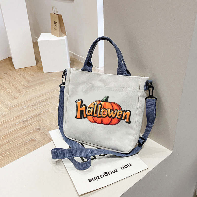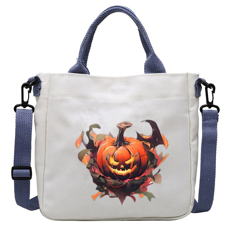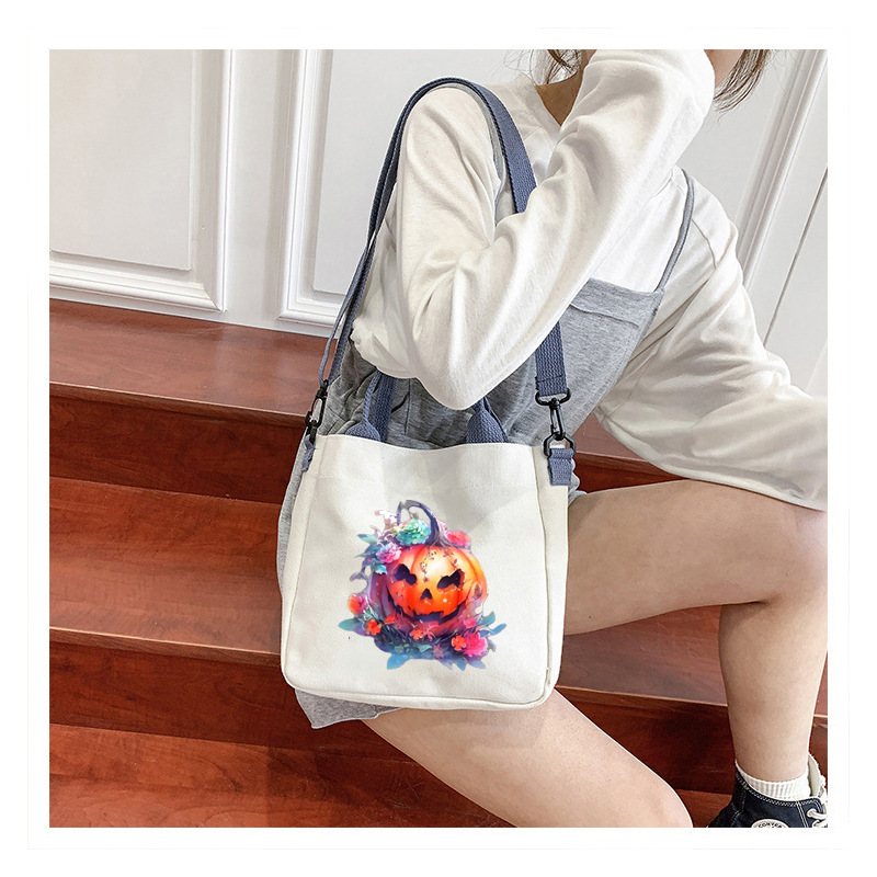 새로운 할로윈 인쇄 캔버스 가방 학생 어깨 가방 크로스 백 분리 가능한 어깨 스트랩 핸드백