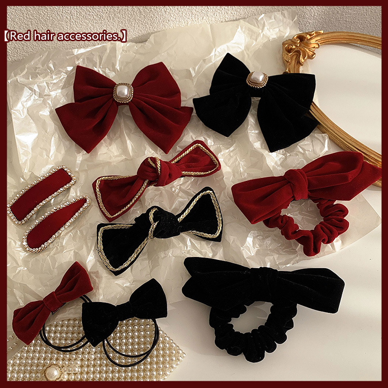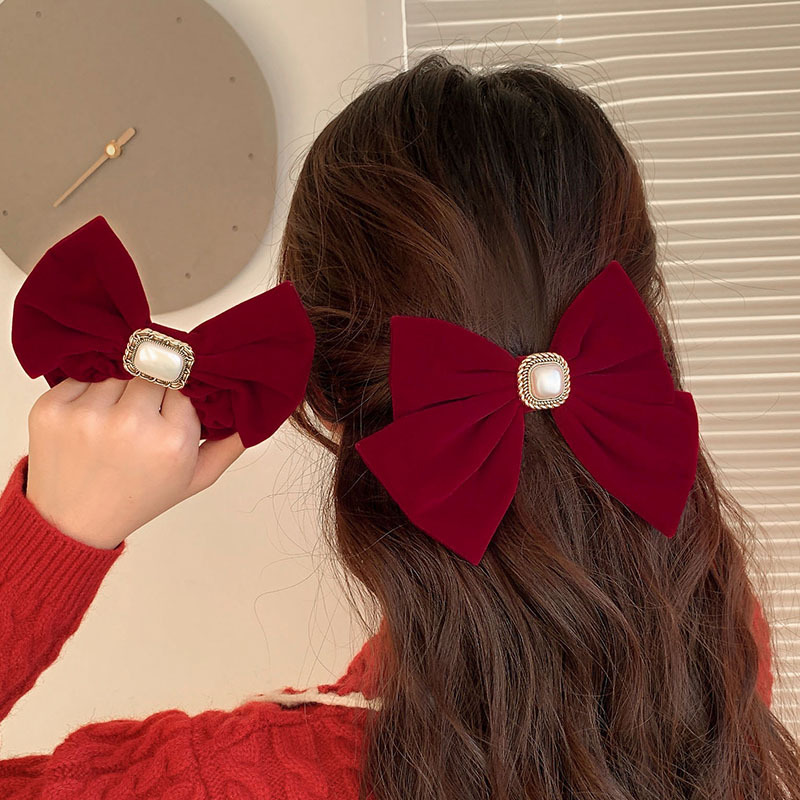 빈티지 레드 벨벳 활 헤어 루프 하이 엔드 백 더 헤드 헤어 액세서리 간단한 대기 토스트 원피스 헤드 라인 헤드 웨어스토어 가기