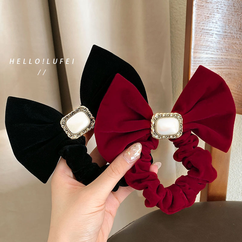 빈티지 레드 벨벳 활 헤어 루프 하이 엔드 백 더 헤드 헤어 액세서리 간단한 대기 토스트 원피스 헤드 라인 헤드 웨어