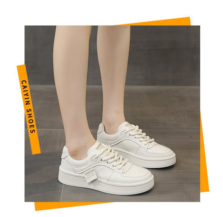 가죽 흰색 신발 여성의 2024 가을 새로운 올 매치 캐주얼 통기성 운동화 플랫 신발