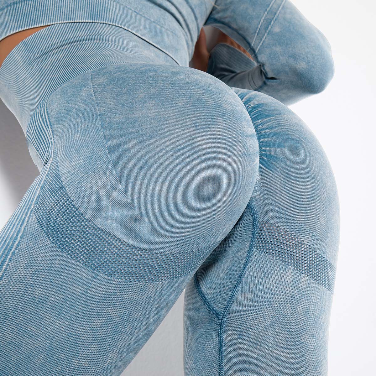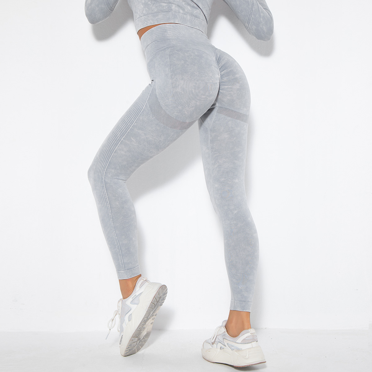 유럽 및 미국 스타일의 무봉제 타이트 워싱 니트 흡습성 복숭아색 땀 흡수 요가 하이웨이스트 복부 조절 스포츠 피트니스 롱 팬츠스토어 가기