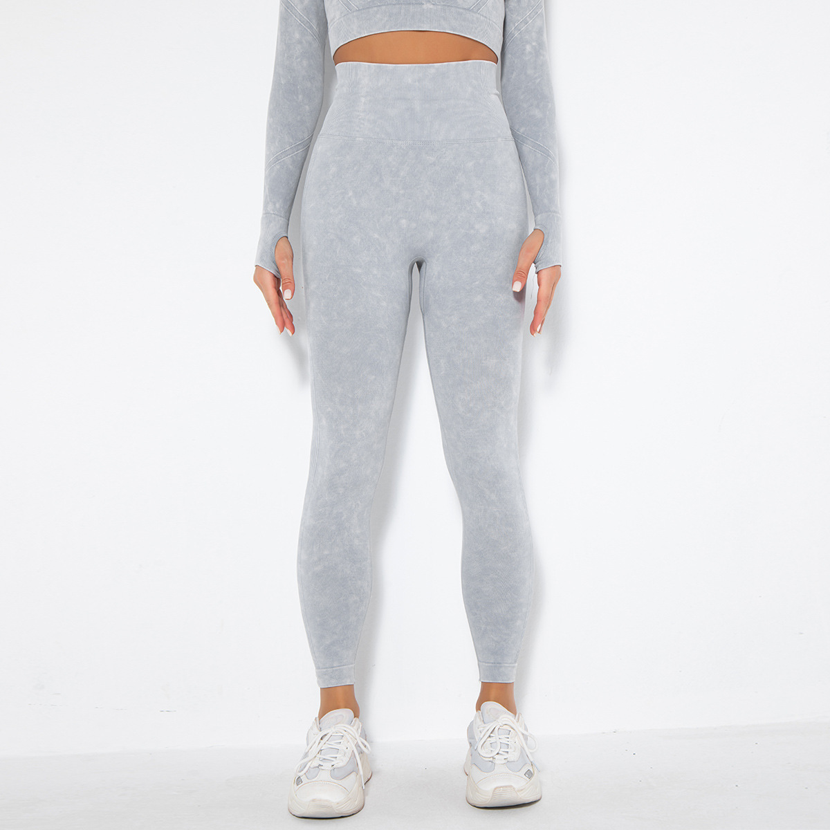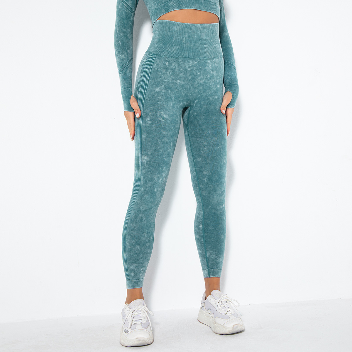 유럽 및 미국 스타일의 무봉제 타이트 워싱 니트 흡습성 복숭아색 땀 흡수 요가 하이웨이스트 복부 조절 스포츠 피트니스 롱 팬츠