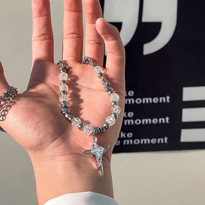아이스 크랙 비즈 스티칭 크로스 티타늄 스틸 목걸이 남성 힙합 니치 하이 레벨 라이트 럭셔리 더피 세련된 모직 체인스토어 가기